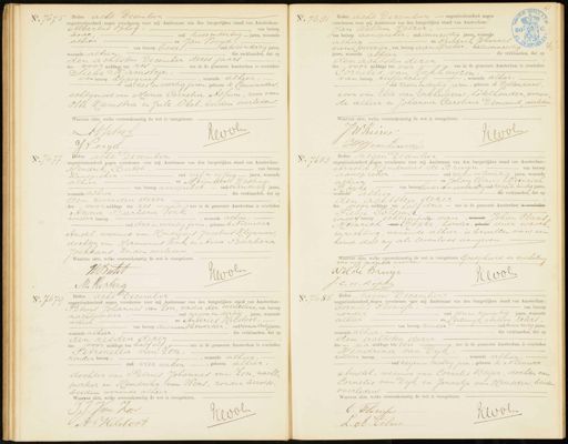 No. 7675 Heden acht December negentienhonderd negen verschenen, voor mij Ambtenaar van den burgerlijken stand van Amsterdam; van beroep Albertus Ophof, oud twee en dertig jaren, wonende bode,— alhier en Jan Voogd van beroep bode oud twee en dertig jaren wonende alhier, die verklaarden, dat op den achtsten December dezes jaars des voormiddags ten zes ure in de gemeente Amsterdam is overleden Siebe Kamstra, van beroep ypograaf, wonende alhier oud zes en veertig jaren, geboren te Leeuwarden, echtgenoot van Maria Cornelia Assum, zoon van Otte Kamstra en Juli Okel, beiden overleden. Waarvan akte, welke overeenkomstig de wet is voorgelezen. Kevbli AVSchof 6 No. 7681 Heden acht December negentienhonderd negen verschenen voor mij Ambtenaar van den burgerlijken stand van Amsterdam: Jan Willem Keizer van beroep aanspreker, oud een en zestig jaren, wonende alhier en Hendrik Johannes van Loevezijn, van beroep aanspreker, oud zeven en zestig jaren, wonende alhier die verklaarden, dat op den achtsten dezer des voor middags ten vierg ure in de gemeente Amsterdam is overleden Cornelis van Inkhuijzen, van beroep buffetchef, wonende alhier oud zeven endertig jaren, geboren te Rotterdam, zoon van Elie van Enkhuijzen, hötelhouder, wonen de alhier en Johanna Carolina Demand overleden Waarvan akte, welke overeenkomstig de wet is voorgelezen. JW Heerer Wole No. 7677 Heden acht December negentienhonderd negen verschenen voor mij Ambtenaar van den burgerlijken stand van Amsterdam: Hendrik Butot, van beroep aanspieker, oud vijf en vijftig jaren, wonende alhier en Meijndert Kesting, van beroep aanspreker, oud drie en dertig jaren wonende alhier, die verklaarden, dat op den zevenden dezer des voormiddags ten zes ure in de gemeente Amsterdam is overleden Anna Barbera Jonk.— zonder beroep,, wonende alhier — oud drie en zeventig jaren, geboren te Nieuwer Amstel, weduwe van Hendricus Jacobus Klijnman dochter van Hermanus Ionk en Anna Barbera Jonkkans, beiden overleden. Waarvan akte, welke overeenkomstig de wet is voorgelezen. in H Brstal O JW0 M. Kesting No. 7683 Heden negen December negentienhonderd negen verschenen voor mij Ambtenaar van den burgerlijken stand van Amsterdam: Arnold Hendricus de Bruijn van beroep aanspreker, oud zeven en twintig jaren, wonende alhier en Johan Claus Heenrich Ropke van beroep honder eener waschinrichting oud negenentwintig jaren wonende alhier, die verklaarden, dat op den achtsten dezer des voor middags, ten half drie ure in de gemeente Amsterdam is overleden Pietje Polsma zonder beroep, echtgenoote van, wonende Johan Claus Heinrich oud Ropke, houder, geboren eener wasch inrichting, wonende alhier, is bevallen van een kind dat zij als levenloos aangeven. Waarvan akte, welke overeenkomstig de wet is voorgelezen. Goedgekeurd de doorhaling van vijf gedrukte woorden. AH de Bruyn Keoo J. C. H.K opde No. 7679 Heden acht December negentienhonderd negen verschenen voor mij Ambtenaar van den burgerlijken stand van Amsterdam: Petrus Johannes van zon, vader der overledene, van beroep nachtportier oud negen en dertig jaren, wonende en Andries Helsloot aan van beroep diamantbewerker, oud zevenendertig jaren die verklaarden, dat op wonende alhier, den zesden dezer des voor middags ten half elf ure in de gemeente Amsterdam is overleden Petronella van Zon, zonder beroep,, wonende alhier oud vier weken, geboren alhier, dochter van Petrus Johannes van Zon, nacht„ portier en Hendrika van Wens, zonder beroep, beiden wonende alhier Waarvan akte, welke overeenkomstig de wet is voorgelezen. J:J: Van Zou li heod A Helsloot No. 7685 Heden negen December negentienhonderd negen verschenen voor mij Ambtenaar van den burgerlijken stand van Amsterdam: Cornelis Florissé, van beroep oud een en zeventig jaren, wonende zonder en Lodewyk Antoon Eilers, alhter van beroep zonder oud tweeen zestig jaren wonende alhier, die verklaarden, dat op den achtsten dezer. des — na middags ten een ure in de gemeente Amsterdam is overleden Hendrina van Dijk,— zonder beroep,, wonende alhier — oud negenen tachtig jaren, geboren te Nieuwer Amstel, weduwe van Cornelis Beijer, dochter van Cornelis van Dijk en Jannetje van Heusden, beiden overleden. Waarvan akte, welke overeenkomstig de wet is voorgelezen. C. Floriste Keold L. A. Uilers