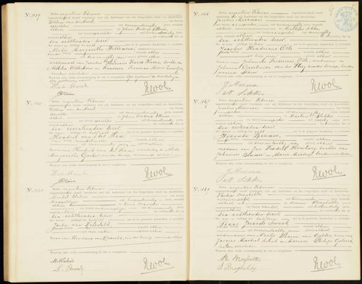 No. 115.9 Heden negentien Februari negentienhonderd twaalf verschenen voor mij Ambtenaar van den burgerlijken stand van Amsterdam: van beroep Willem van der Marel, opzichter, oud zevenentwintig Jaren, wonende alhier, en Johan Frederik Heine van beroep opzichter oud tweeentwintig jaren, den achttienden dezer de verdander, det of wonende alhier des voor — middags ten acht. ure in de gemeente Amsterdam is overleden Alida Margaretha Willemsen, zonder beroep, wonende alhier, oud drie en vijftig jaren geboren alhier echtgenoote van Jacobus Henricus Pierre Hoorn, dochter van Albertus Willemsen en Francisca Francina Maria Zwartjes, beiden overleden. Waarvan akte, welke overeenkomstig de wet is voorgelezen. Goedgekeurd de doorhaling van een geschreven woord. W od Marel Keool JJ Sleine No. 1165 Heden negentien Februari negentienhonderd twaalf verschenen voor mij Ambtenaar van den burgerlijken stand van Amsterdam: Jacobus Meerman, van beroep aanspreker, oud zevenenvijftig jaren, wonende alhier, en Nicolaas Sikkes, van beroep aanspreker, oud zesenvyftig jaren, wonende alhier, de verklaarden, dat op den achttienden dezer, des voor middags ten tien ure in de gemeente Amsterdam is overleden Jacobus Hendricus Otte , wonende alhier zonder beroep oud twee jaren geboren alhier zoon van Johannes Fredericus Otte, werkman en Johanna Geertruida van der Ploeg, zonder beroep, beiden wonende alhier, Waarvan akte, welke overeenkomstig de wet is voorgelezen. J. Murman HWol N. Sikkes No. 1161 Heden negentien Februari negentienhonderd twaalf verschenen voor mij Ambtenaar van den burgerlijken stand van Amsterdam: Willem van der Marel, van beroep opzichter oud zevenentwintig Jaren, wonende alhier, en Johan Frederik Heine, van beroep opzichter oud tweeentwintig jaren, wonende alhier die verklaarden, dat op =den zeventienden dezer, des voor middags ten half acht ure in de gemeente Amsterdam is overleden Hendrik van der Kam, van beroep meubetmaker,, wonende alhier, oud zesenveertig jaren geboren alhier, zoon van Hendrik van der Ham, overleden en Alida Margaretha Gerber, zonder beroep, wonende alhier, Waarvan akte, welke overeenkomstig de wet is voorgelezen. H vd Marel Kevol JF Heme No. 1167 Heden negentien Februari negentienhonderd twaalf verschenen voor mij Ambtenaar van den burgerlijken stand van Amsterdam Jacobus Meerman, van beroep aanspieker, oud zevenenvijftig Jaren, wonende alhier, en Nicolaas Sikkes. — van beroep aanspieter. oud veertig Jaren wonende alhier, der zestienden dezer de versaarden, det op des voor — middags ten acht ure in de gemeente Amsterdam is overleden Wijnanda Beumer,, wonende alhier zonderderoep