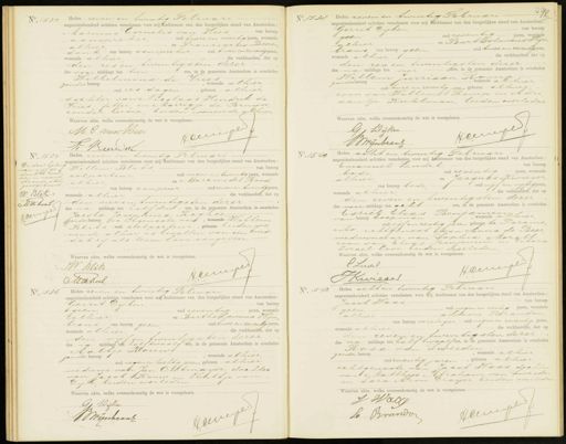 No. 1532 Heden zeven en twintig Februari— negentienhonderd achttien verschenen voor mij Ambtenaar van den burgerlijken stand van Amsterdam Marinus Cornelis van Hees, van beroep aanspreker, oud twee en veertig Jaren, wonende alhier en Franciscus Beeren donk van beroep aanspreker oud twee en zeventig jaren wonende alhier die verklaarden, dat op den zes en twintigsten dezer des voor middags ten tien ure, in de gemeente Amsterdam is overleden Wilhelmina de Vries zonder deroep, wonende alhier oud zes dagen, geboren alhier dochter van Nicolaas Hendrik de Vries fitter en Marrigje de Bruin zonder beroep, beiden wonende alhier Waarvan akte, welke overeenkomstig de wet is voorgelezen. fecrue M C van Hees C o. 1538 Heden zeven en twintig Februari negentienhonderd achttien verschenen voor mij Ambtenaar van den burgerlijken stand van Amsterdam: van beroep Gerrit Dijken, oud zeventig jaren, wonende geen, alhier, en Bartholomius stin brans van beroep geen, oud twee en zeventig Jaren wonende alhier de verklaarden, dat op den zes en twintigsten dezer des na middags ten vier Jre, in de gemeente Amsterdam is overleden Willem Jurriaan Rom zonder beroep, wonende alhier oud twee en zeventig jaren geboren alhier, zoon van Willem Komp en Adri aantje Kuhlman, beiden overleden Waarvan akte, welke overeenkomstig de wet is voorgelezen. Feemml GJ Dijken No. 1534 De doorhaling van vyjf ge. drukte woor„ den in nevens staande akte goedgekeurd. W. Blik Sid koos feveer Biee V Heden zeven en twintig Februari— negentienhonderd achttien verschenen voor mij Ambtenaar van den burgerlijken stand van Amsterdam an Willem Blits, van beroep . colporteur oud negenentwintig jaren, wonende alhier en Marius de Rood, van beroep coupeur oud zeven en twintig Jaren wonende alhier, de verklaarden, dat op den vier en twintigsten dezer des na middags ten half drie ure, in de gemeente Amsterdam is overleden Jacoba Josephina Koghee zonder beroep, echtgenoote van, wonende Willem Blits, oud solporteur, geboren beiden wo„ nende alhier, is bevallen van een kind dat zi als leven loos aangeven Waarvan akte, welke overeenkomstig de wet is voorgelezen. W. Blits Fecnple M. de Roos. No. 1540 Heden acht en twintig Februari negentienhonderd achttien verschenen voor mij Ambtenaar van den burgerlijken stand van Amsterdam: van beroep Emanuel zoudel, bode oud zeventig Jaren, wonende alhier, en Jacquas Kwieser van beroep bode, oud vijf en vijftig Jaren wonende alhier die verklaarden, dat op den zeven en twintigsten dezer des voor middags ten acht ure, in de gemeente Amsterdam is overleden Esriel Elias Benjamin van beroep koopman, wonende alhier oud vijf en zestig jaren, geboren te Parama ribo echtgenoot van Anna de Beer, weduwnaar van Saphia Mort zoon van Elias Benjamin en Debora Isroel Levi beiden overleden Waarvan akte, welke overeenkomstig de wet is voorgelezen E Zndel Hoeneper P Kureder No. 1536 Heden zeven en twintig Februari negentienhonderd achttien verschenen voor mij Ambtenaar van den burgerlijken stand van Amsterdam: van beroep Gerrit Dijken, geen, oud zeventig jaren, wonende alhier, en Bartholomeus Wijn„ brans, van beroep geen oud twee en zeventig jaren wonende alhier de verklaarden, dat op den vyf en twintigsten dezer des ny middags ten half twaalf ure, in de gemeente Amsterdam is overleden Haltje Rouw zonder beroep, wonende alhier - oud negen en tachtig jaren, geboren alhier weduwe van Jan Ontmaijer, dochter van Jacob Kouw en Heiltje van Dijk, beiden overleden Waarvan akte, welke overeenkomstig de wet is voorgelezen. GJ Wyken Aew WWrijnbraar No. 1542 Heden acht en twintig Februari negentienhonderd achttien verschenen voor mij Ambtenaar van den burgerlijken stand van Amsterdam van beroep Jacob Waas. oud negen en zestig jaren, wonende van bonen verpleger, ou negenen zeventig Jaan alhier en Levie Brandon wonende alhier die verklaarden, dat op den zeven en twintigsten dezer des na middags ten half twaalf ure, in de gemeente Amsterdam is overleden Rosa van Tweeden zonder beroep, wonende alhier oud zeventig jaren, geboren alhier echtgenoote van Jacob Waas dochter van Matthijs Abraham van Sweeden en Sara Aron Draijer, beiden overleden Waarvan akte, welke overeenkomstig de wet is voorgelezen. J Waa Heemese Le Brandve