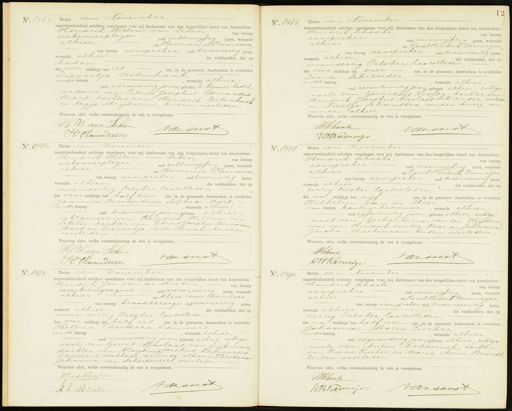 No. 8480 Heden een November. negentienhonderd achttien verschenen voor mij Ambtenaar van den burgerlijken stand van Ams Hendrik Willem van Seben van beroep ziekenverpleger oud achtenvijftig jaren, wonende alhier en Hermanus Vlaanderin van beroep aanspreker oud drieënzestig jaren heden— wonende alhier; die verklaarden, dat op des voor middags ten zes, ure, in de gemeente Amsterdam is overleden Dievertje Uitenhaak zonder beroep, wonende alhier oud vierenzestig jaren geboren te Nieuwer Amstel, weduwe van Petrus Josephus Bernardus Mars; dochter van Hendrik Uitenhaak en Aagje strijdveen, beiden overleden. Waarvan akte, welke overeenkomstig de wet is voorgelezen. H W. van Seken Vansoest H Vlaandecen No. 8486 Heden een November negentienhonderd achttien verschenen voor mij Ambtenaar van den burgerlijken stand van Amsterdam Hendrik Schaake, van beroep aanspreker oud eenenvijftig jaren, wonende alhier en Karel Heidrik Kammeyer van beroep aanspreker oud drieënzeventig jaren wonende alhier, die verklaarden, dat op eenendertig October laatstleden des voor middags ten vier ure, in de gemeente Amsterdam is overleden Dina schreuder,, wonende alhier zonder beroep oud zesentwintig jaren geboren alhier. echtge noote van Gerardus Visser, dochter van Hendrik Jacobus Nicolaas Schreuder, overleden en Neeltje Schanstra, zonder beroep, wo nende alhier Waarvan akte, welke overeenkomstig de wet is voorgelezen. WShrabe Vansoest HHlkanmpr No. 8482 Heden een November negentienhonderd achttien verschenen voor mij Ambtenaar van den burgerlijken stand van Amsterdam: Hendrik Willem van Seben, van beroep ziekenverpleger oud achtenvijftig jaren, wonende alhier en Hermanus Vlaanderen van beroep aanspreker oud drieenzestig jaren, wonende alhier, die verklaarden, dat op eenendertig October laatstleden, des voor middags ten half tien ure, in de gemeente Amsterdam is overleden Joanna Bernardina Sophia Mars zonder beroep, wonende alhier; oud drieënveertig jaren, geboren alhier. echtgmoote van Hendrik Willem van seben. dochter van Petrus Josephus Bernardus Mars en Dievertje Uiterhaak, beiden overleden. Waarvan akte, welke overeenkomstig de wet is voorgelezen. HW van Sebeer vansoest W Hlaanderen. No. 8788 Heden een november negentienhonderd achttien verschenen voor mij Ambtenaar van den burgerlijken stand van Amsterdam Hendrik Schaake, van beroep aanspreker oud eenenvijftig jaren, wonende alhier en Karel Hendrik Kommeijer van beroep aanspreker oud drieenzeventig jaren wonende alhier die verklaarden, dat op dertig October laatstleden. des na middags ten vijf ure, in de gemeente Amsterdam is overleden Wilhelm van der Meer van beroep kantoorbediende, wonende alhier, oud vijfentwintig jaren, geboren alhier; echtge noot van Gerhardina van der Weijden zoon van Hendrik van der Meer en Johanna Jacoba Martincau, beiden overleden. Waarvan akte, welke overeenkomstig de wet is voorgelezen. WStrakn Jan soest HH Kamman No. 8487 Heden een november negentienhonderd achttien verschenen voor mij Ambtenaar van den burgerlijken stand van Amsterdam; Hendrik Jan van der straten; van beroep verzekeringsagent oud zevenenveertig jaren, wonende alhier en Albert Louis Meintser van beroep broodbezorger oud zesenzestig jaren wonende alhier die verklaarden, dat op eenendertig October laatstleden des voor middags ten half zes ure, in de gemeente Amsterdam is overleden Helena Theodora Lauwer zonder beroep, wonende alhier, oud vierendertig jaren geboren alhier, echtge- noot van Gerrit Nicolaas van Dijkman dachter van Aoysius Jacobus Bernardus Lauwers, stalbaar wonende alhier en Theodaru Johanna van Scherpenzeel, overleden Waarvan akte, welke overeenkomstig de wet is voorgelezen. MC ad Strat Vansoest A L Meintje No. 8490 Heden een November negentienhonderd achttien verschenen voor mij Ambtenaar van den burgerlijken stand van Amsterdam Hendrik Schaake, van beroep aanspreker oud eenenvijftig jaren, wonende alhier en Karel Hendrik Kannneijer, van beroep aanspreker oud drieenzeventig jaren wonende alhier. die verklaarden, dat op dertig October laatstleden, des na middags ten half zeven ure, in de gemeente Amsterdam is overleden Johanna Maria Tischer zonder beroep, wonende alhier oud negenendertig jaren geboren alhier; echtge noote van Anton Madvornik, dochter van Franz Fischer en Maria Anna Brands beiden overleden. Waarvan akte, welke overeenkomstig de wet is voorgelezen. Wheeken Vansoest RHKammerr