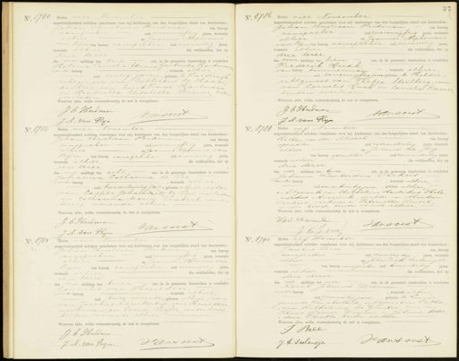 No. 8780 Heden vier November negentienhonderd achttien verschenen voor mij Ambtenaar van den burgerlijken stand van Amsterdam Johan Christiaan Heidman van beroep aanspreker oud zevenenvijftig jaren, wonende alhier en Joannes Alphonsus van Rijn van beroep aanspreker oud eenenzestig jaren wonende alhier. die verklaarden, dat op drie dezer des na middags ten drie ure, in de gemeente Amsterdam is overleden Helena Cornelia Adriana Geertruida Hartman, zonder beroep, wonende alhier oud zestig jaren, geboren te Harderwijk echtgenoots van Lubbertus de Haan, dochter van Evert Franz Hartmann en Hendrietta Elisabetha Vermeer, beiden overleden. Waarvan akte, welke overeenkomstig de wet is voorgelezen. J C Heidma Vansoest J A. van Ryn No. 8786 Heden vier November negentienhonderd achttien gerschenen voor mij Ambtenaar van den burgerlijken stand van Amst Johan Christiaan Heidman van beroep aanspreker oud zevenenvijftig jaren, wonende alhier en Joannes Alphonsus van Rijn van beroep aanspreker oud eenenzestig jaren, wonende alhier. drie dezer de verlenden daet op des voor middags ten tien ure, in de gemeente Amsterdam is overleden Frederik Luak, van beroep timmerman, wonende alhier -oud eenenvijftig jaren geboren te Helder echtgenoot van Peetje Steilberg; zoon van Cornelis Quak en Cornelia Kamer beiden overleden Waarvan akte, welke overeenkomstig de wet is voorgelezen. J C Heidman tansoest No. 8782 Heden vier November negentienhonderd achttien verschenen voor mij Ambtenaar van den burgerlijken stand van Amsterdam Johan Christiaan Heidman van beroep aanspreker oud zevenenvijftig jaren, wonende alhier, en Joannes Alpaonsus van pijn van beroep aanspreke oud eenenzertig jaren wonende alhier, die verklaarden, dat op een dezer des na middags ten acht ure, in de gemeente Amsterdam is overleden Johanna Catharina de Vos zonder beroep, wonende alhier oud tweeëntwintig Jaren geboren alhier; dochter van Casper Johannes de Vos, overleden en Catharina Maria Trakzel, zonder beroep, wonende alhier Waarvan akte, welke overeenkomstig de wet is voorgelezen. J E Heidman Varsoest J A. van Ryn No. 8780 Heden vijf November negentienhonderd achttien verschenen voor mij Ambtenaar van den burgerlijken stand van Amsterdam Willem van der Marel van beroep opzichter oud vierendertig jaren, wonende alhier en Johannes de Jong van beroep opzichter oud zevenendertig jaren die verklaarden, dat op wonende alhier drie dezer des voor middags ten twee ure, in de gemeente Amsterdam is overleden Johanna Lamberdina Plekers zonder beroep, wonende alhier oud een entwintig jaren, geboren alhier echtgenoote van Wilhelmus Hendrikus Hele „nardus Averink, dochter van Abraham lekers, werkman en Peternella Winsel zonder beroep, beiden wenende alhier Waarvan akte, welke overeenkomstig de wet is voorgelezen W0 Mans Jansoest J de J ono Heden vier November negentienhonderd achttien gerschenen voor mij Ambtenaar van den burgerlijken stand van Amsterdam Johan Christiaan Heidman van beroep aanspreker oud zevenenvijftig jaren, wonende alhier en Joannes Alshonsus van Rijn van beroep aanspreker oud eenenzestig jaren wonende alhier, die verklaarden, dat op een dezer — des na middags ten twee ure, in de gemeente Amsterdam is overleden Cornelis van Heusden zonder beroep, wonende alhier, oud twee maanden, geboren alhier; zoon van Jacobus Lambertus van Heussen werkman en Lena Visser, zonder beroep, beiden wonende alhier Waarvan akte, welke overeenkomstig de wet is voorgelezen. J b Heedman Jansoest J A. van Ryn No. 8790 Heden vijf November negentienhonderd achttien verschenen voor mij Ambtenaar van den burgerlijken stand van Amsterd van beroep Jacobus Bree aanspreker oud zesenzestig jaren, wonende en Johan Dirk Seclemeijer alhier wonende alhier van beroep aanspreker oud tweeendertig jaren.