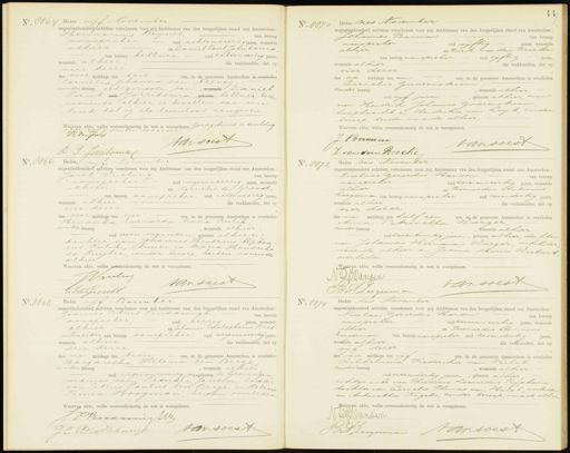 No. 8869 1Heden vijf November negentienhonderd achttien verschenen voor mij Ambtenaar van den burgerlijken stand van Amsterdam Herinanus zeijnes, van beroep aanspreker oud achtenveertig jaren, wonende alhier en Daniel Paul Johritsma oud achtendertig jaren van beroep kellner wonende alhier; die verklaarden, dat op vier dezer des voor middags ten drie ure, in de gemeente Amsterdam is overleden Cornelia Johanna van Accooi zonder beroep, echtgenoot van, wonende Daniël Paul aud Jorritsma, geboren kelener, beiden wonende alhier, is bevallen van een kind, dat zij als levenloos aangeven Waarvan akte, welke overeenkomstig de wet is voorgelezen Goedgekeurd de doorhaling redrukke woorden H drveres Aansoest D. P tsma No. 8875 Heden zes November negentienhonderd achttien verschenen voor mij Ambtenaar van den burgerlijken s van An Johannes Bouman van beroep aanspreker oud vijftig jaren, wonende alhier en Dirk van den Broeke van beroep aanspreker oud vyftig jaren, wonende alhier die verklaarden, dat op vier dezer des na middags ten een ure, in de gemeente Amsterdam is overleden Cornelis Gaarenstraam zonder beroep, wonende alhier oud vijf jaren, geboren alhier, zoon van Hendrik Johannes Gaarenstraam loopknecht en Hendrika van Luijk, zonder beroep, beiden wonende alhier Waarvan akte, welke overeenkomstig de wet is voorgelezen. J. Bounman van soest D. van Ten Broeke No. 8866 Heden vijf November negentienhonderd achttien verschenen voor mij Ambtenaar van den burgerlijken stand van Amsterdam Jacob Vrieling van beroep aanspreker oud negenendertig jaren, wonende alhier en Cornelis de Groodt, van beroep aanspreker oud achtendertig jaren wonende alhier die verklaarden, dat o- vier dezer des voor middags ten vier ure, in de gemeente Amsterdam is overleden Hendrika Everarda Maria Kulik zonder beroep, wonende alhier oud zeven maanden, geboren alhier dochter van Johannes Hendricus Alphon- sus Kulik, kruier en Maria Hendrika de Ruiter, zonder beroep, beiden, wonende alhier Waarvan akte, welke overeenkomstig de wet is voorgelezen. WVrieling Jan seest Pite Groott No. 8872. Heden zes November negentienhonderd achttien verschenen voor mij Ambtenaar van den burgerlijken stand van Amsterdam Nicolaas Gerardus Hansen van beroep aanspreker oud zevenenveertig jaren, wonende alhier en Bernardus Antonius Leegerman van beroep aanspreker oud zesendertig jaren wonende alhier die verklaarden, dat op vier dezer des na middags ten half een ure, in de gemeente Amsterdam is overleden Anna Petronella Warger zonder beroep, wonende alhier oud zesentwintig jaren, geboren alhier, dochter van Johannes Hermanus Warger, schilder wonende alhier en Joanna Maria Wielart overleden. Waarvan akte, welke overeenkomstig de wet is voorgelezen. GOlansen Vansoest B.A. Leegerman No. 8868 Heden vijf November negentienhonderd achttien verschenen voor mij Ambtenaar van den burgerlijken stand van Amsterdam Joannes Petrus Pendavingh, van beroep aanspreker oud dertig jaren, wonende alhier en Johannes Crstophorus Bred- schneider van beroep aanspreker oud negenenveertig jaren wonende alhier die verklaarden, dat op