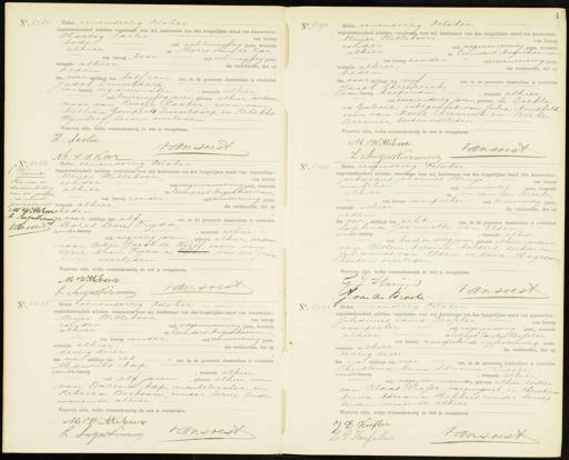 No. 8384 Heden eenendertig October negentienhonderd achttien verschenen voor mij Ambtenaar van den burgerlijken stand van Amsterdam, Hartog Sarlee, van beroep bode oud achtenvijftig jaren, wonende alhier en Mores van de Kar, van beroep bode oud achtenvijftig jaren. wonende alhier, heden die verklaarden, dat op des voor middags ten half een ure, in de gemeente Amsterdam is overleden Jacob Dusseldorp, van beroep sigarenmaker, wonende alhier oud tweeenvijftig jaren, geboren alhier; weduw naar van Rootje loster; zoon van Nathan Gomperts Dusseldorp en Rebekka Wijnberg, beiden overleden Waarvan akte, welke overeenkomstig de wet is voorgelezen. H. Parlee Van soest No. 8390 Heden eenendertig October negentienhonderd achttien verschenen voor mij Ambtenaar van den burgerlijken stand van Amsterdam Meijer Wittezoon, van beroep zonder oud negenenzeventig jaren, wonende alhier en Leendert Angurkienman van beroep zonder oud zesenzeventig jaren — wonende alhier; die verklaarden, dat op heden des voor middags ten vijf ure, in de gemeente Amsterdam is overleden Jacob Ehrenreich, van beroep koopman, wonende alhier oud zevenendertig jaren, geboren te Doekla in lalicie; echtgemoot van Inlia Anisteld zoon van Mozes Chrenreuk en Beele Brenner, beiden overleden. Waarvan akte, welke overeenkomstig de wet is voorgelezen A W Aeboor Jansoest Z Augus No. 8386 No Fennie Renvooi en de doortaling van een geschre„ven woord goedgekeurd. MM i Heten L Augusuerwag Van voert M V d Kor Heden eenendertig October negentienhonderd achttien verschenen voor mij Ambtenaar van den burgerlijken stand van Amsterdam, Meijer Witteboon, van beroep zonder oud negenenzeventig jaren, wonende alhier en Leendert Auguakiesman van beroep zonder oud zezenzeventig jaren wonende alhier. die verklaarden, dat op sheden des voor middags ten elf ure, in de gemeente Amsterdam is overleden Mozes Levees Vrijda,, wonende alhier zonder beroep oud negentig jaren, geboren alhier; weduw naar Betje Jacob de Wolff; zoon van 1 Levie Aron Tryda en tinie van der Groen beiden overleden. Waarvan akte, welke overeenkomstig de wet is voorgelezen. M Wittelson Jan soest L Augurtieman No. 8392 Heden eenendertig October negentienhonderd achttien verschenen voor mij Ambtenaar van den burgerlijken stand van Amsterdam Gerhardus Johannes Struijs, van beroep winkelier oud zesenzestig jaren, wonende alhier en Jan van den Broeke van beroep aanspreker oud drieenveertig jaren wonende alhier; die verklaarden, dat op heden des voor middags ten acht ure, in de gemeente Amsterdam is overleden Sophia Jeannette van Elden zonder beroep, wonende alhier oud twee en zestig jaren geboren alhier; weduwe van Willem Antoine Aalders; dochter van Johannes van Elden en Maria Hagedoor beiden overleden Waarvan akte, welke overeenkomstig de wet is voorgelezen. J J. Striugs Jan soest J. van de Broeke. No. 8388 Heden eenendertig October negentienhonderd achttien verschenen voor mij Ambtenaar van den burgerlijken stand van Amsterdam Meijer Witteboon, van beroep zonder oud negenenzeventig jaren, wonende alhier en Leendert Augurtiesman oud zesenzeventig jaren van beroep zonder wonende alhier, — die verklaarden, dat op — dertig dezer des na middags ten zes ure, in de gemeente Amsterdam is overleden Maurits Aap vond alhier zonder beroep oud elf jaren, geboren alhier; zoon van Barend Aap, meubelmaker en Rebecca Bosboom; zonder beroep, beiden wonende alhier Waarvan akte, welke overeenkomstig de wet is voorgelezen. A Willebeer Jansoest L Augarcemiag No. 8394 4Heden enendertig October negentienhonderd achttien verschenen voor mij Ambtenaar van den burgerlijken stand van Amsterdam Johannes David Kesseler, van beroep aanstreker oud negenenzertig jaren, wonende alhier, en Lodewijk Paubus Kesseler, van beroep aanspreker oud vijfentwintig jaren, wonende alhier; die verklaarden, dat op dertig dezer des na middags ten vier ure, in de gemeente Amsterdam is overleden Christina Anna Adriana Visser zonderberoep, wonende alhier oud negentien maanden geboren alhier; dochter van Klaas Visser, varensgezel, en christina Anna Adriana Hekkers, zonder beroep beiden wonende alhier Waarvan akte, welke overeenkomstig de wet is voorgelezen. / D Herfler Jan soest L P Kesselie