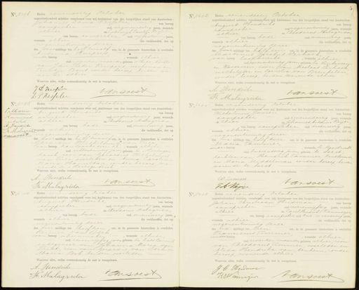 No. 8396 Heden eenendertig October negentienhonderd achttien verschenen voor mij Ambtenaar van den burgerlijken stand van Amsterdam Johannes David Kesseler, van beroep aanspreker oud negenenzestig jaren, wonende alhier en Lodewijk Paulis Kesselie van beroep aanspreker oud vijfentwintig jaren wonende alhier, die verklaarden, dat op negenentwintig dezer des voormiddags ten half twaalf ure, in de gemeente Amsterdam is overleden Antonia Kuipers zonder beroep, wonende alhier oud negentien maanden geboren alhier. dochter van Jan Pieter Kuipers, werkman en Teuntje Bout, zonder beroep, beiden wo- nende alhier. Waarvan akte, welke overeenkomstig de wet is voorgelezen. J L Kerselen van Boest L P Kesselir No. 5402 Heden eenenderti October negentienhonderd achttien verschenen voor mij Ambtenaar van den burgerlijken stand van August Hendriks van beroep aanspreker oud negenentwintig jaren, wonende alhier en Theodorus Malagrda van beroep bode wonende alhier, oud eenenveertig jaren negenentwintig dezer de verkaarden, det of des voormiddags ten half een ure, in de gemeente Amsterdam is overleden Martinus Jacobus Verhoek van beroep loopknecht, wonende alhier oud zevenentwintig Jaren geboren te Vinkeneer en Waverveen; zoon van Nicolaas Verhoek melkslijter en Cornelia van Breukelen, zonder beroep, beiden wonende alhier Waarvan akte, welke overeenkomstig de wet is voorgelezen. A- Hendriks tansoest Tt Malagrula No. 8398 1„Maria Renvooi goed. „gekeurd A: Hendriks. 14 Malagrich vansoest Heden eenendertig October negentienhonderd achttien verschenen voor mij Ambtenaar van den burgerlijken stand van Amsterdam August Hendriks, van beroep e aanspreker oud negenenwintig jaren, wonende en Theodorus Malagrida alhier van beroep bade oud eenenveertig jaren wonende alhier, negenentwintig dezer de verdaarden dat or des voormiddags ten half twaalf ure, in de gemeente Amsterdam is overleden Gerardus Wilhelmus van Prier van beroep kantoorbediende, wonende alhier, oud achtentwintig jaren geboren te 1Hertogen bosch zoon van Gerardus Wilhelmus van Trier overleden en Anna Carolina Maria Hawiltan, zonder beroep, wo- nende te s Herlogmbosch Waarvan akte, welke overeenkomstig de wet is voorgelezen. A. Hendrik Jansoest Th Mulagrica No. 8404 Heden eenendertig October negentienhonderd achttien verschenen voor mij Ambtenaar van den burgerlijken stand van Amsterdam: Wilhelmus Jansen, van beroep aanspreker oud zevenendertig jaren, wonende alhier en Johannes Antonius Keijer van beroep aanspreker oud drieenzestig jaren wonende alhier; negenentwintig dezer de verdhelden, det or des na middags ten half twee ure, in de gemeente Amsterdam is overleden Maria Tammer, wonende te Maastricht zonder beroep oud tweeëndertig jaren, geboren te soest dochter van Hendrik Jammer, landbouwe en Maria Middelman, zonder beroep, beiden wonende te soest. Waarvan akte, welke overeenkomstig de wet is voorgelezen. W. Jansen Jansoest TA Vyer No. 8400 Heden eenendertig October negentienhonderd achttien verschenen voor mij Ambtenaar van den burgerlijken stand van Amsterdam August Hendriks, van beroep aanspreker oud negenentwintig jaren, wonende alhier en Theodorus Malagrida van beroep bode oud eenenveertig jaren, wonende alhier; negenentwintig dezer de verkaarden, dat op des voor middags ten halftien ure, in de gemeente Amsterdam is overleden Reinier van Osch,, wonende alhier, van beroep schoenmaker oud zesenvijftig jaren geboren te Zalt Bommel, echtgenoot van Johanna Maria van Vrist; zoon van Gerardus van Osch en Maria Bok, beiden overleden. Waarvan akte, welke overeenkomstig de wet is voorgelezen. A. Hendriks Ansoest Th Malagriola No 8406 Heden eenendertig October negentienhonderd achttien verschenen voor mij Ambtenaar van den burgerlijken stand van Amsterdam; Johan Christiaan Heidman van beroep aanspreker oud zevenenvijftig jaren, wonende alhier en Carel Hendrik Kanmeyer van beroep aanspreker oud drie en zeventig jaren wonende alhier; negenentwintig dezer de versaurden det of des na middags ten tien ure, in de gemeente Amsterdam is overleden Franciscus Timmer, ,wonende alhier zonder beroep oud zeventien mmaanden geboren alhier; zoon van Theodorus Timmer, overleden en Alida Hendrika van Arnhem, zonder beroep, wonende alhier Waarvan akte, welke overeenkomstig de wet is voorgelezen J C Heidmor Jan soest KWWenman