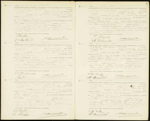 No. 8408 Heden eenendertig Oclober negentienhonderd achttien verschenen voor mij Ambtenaar van den burgerlijken stand van Amsterdam iet Albert Bakker, van beroep aanspreker oud zevenendertig jaren, wonende alhier en Gerrit van der Velden van beroep aanspreker oud negenenveertig jaren wonende alhier; dertig dezer de verslaardee, dat of des voor middags ten half drie ure, in de gemeente Amsterdam is overleden Jan Hendrik Bohne van beroep veemarbeider, wonende alhier. oud achtentwintig jaren geboren alhier; zoon van Johannes Hermanus Bohne magazijnnecht, wonende alhier en Catha- rina Rave, overleden Waarvan akte, welke overeenkomstig de wet is voorgelezen. PBakker van soest G. v der Veden No. 8414 Heden een November negentienhonderd achttien verschenen voor mij Ambtenaar van den burgerlijken stand van Amsterdam Johan Spangenberg van beroep koster oud vijfenveertig jaren, wonende alhier en Arie Klaasen Bos van beroep steerzetter oud zesentwintig jaren wonende alhier die verklaarden, dat op dertig October laatstleden des na kiddags ten vif ure, in de gemeente Amsterdam is overleden Margaretha Dorothea Carolina Graht van beroep pensinhandster, wonende alhier oud vijfenzestig jaren, geboren alhier echtgenoote van Johannes Hendricus Schouten dochter van Margaretha Dorothea Karolina Grahl, overleden Waarvan akte, welke overeenkomstig de wet is voorgelezen. Spempenherg Jansoert et Kla No. 8410 Heden eenendertig October negentienhonderd achttien verschenen door mij Ambtenaar van den burgerlijken stand van Amsterdam: Johan Gerrit llward, van beroep zonder oud zesenzestig jaren, wonende alhier en Lodewijk Alexander de Boer van beroep aanstreker oud vierendertig jaren — wonende alhier; die verklaarden, dat op dertig dezer des voor middags ten vier ure, in de gemeente Amsterdam is overleden, Anton Duller van beroep kantoorbediende, wonende alhier, oud zevenentwintig jaren geboren alhier; zoon van Aartje Alida Duller, zonder beroep wonende alhier Waarvan akte, welke overeenkomstig de wet is voorgelezen. L.G. Uwoor Aan soest JDa Brr No. 8416 Heden een November negentienhonderd achttien verschenen voor mij Ambtenaar van den burgerlijken stand van Amsterdam Frederik Christiaan Koek van beroep aanspreker oud zevenendertig jaren, wonende alhier en Franciscus Beerendank van beroep aanspreker oud drieenzeventig jaren, wonende alhier die verklaarden, dat op negen entwintig October laatstleden des voor middags ten tien ure, in de gemeente Amsterdam is overleden Marinus Antonius van Herwaarden zonder beroep, wonende alhier oud twee jaren, geboren alhier, zoon van Piet van Herwaarden, opperman en Petronella Kortie, zonder beroep, beiden wonende alhier. Waarvan akte, welke overeenkomstig de wet is voorgelezen. J ch Kock Jansoet A: Beeenda No. 1412 2 Heden een November negentienhonderd achttien verschenen voor mij Ambtenaar van den burgerlijken stand van Amsterdam: Lambertus Marinus Schuite van beroep aans preker oud zesenzestig jaren, wonende alhier en Izaak PPrivé van beroep aanspreker oud negenenvijftig jaren, wonende alhier die verklaarden, dat op negenentwintig October laatstleden des na middags ten elf ure, in de gemeente Amsterdam is overleden Jan van Eijk zonder beroep, wonende alhier oud negentig jaren, geboren te Maarssereen, weduwnaar van Adriaantje Vis zeon van Jan van Eijk en Gerritje Stekelenburg, beiden overleden. Waarvan akte, welke overeenkomstig de wet is voorgelezen. LM. Schuite Vansoest I. Sive No. 8418 Heden een November negentienhonderd achttien verschenen voor mij Ambtenaar van den burgerlijken stand van Amsterdam: FFrederik Christiaan Roek van beroep aanspreker oud zevenendertig jaren, wonende alhier en Franciscus Beerendonk wonende alhir van beroep aansoreker oud drieenzeventig jaren