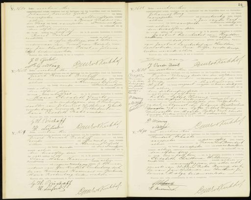 Heden veertien Mei negentienhonderd twintig verschenen voor mij Ambtenaar van den burgerlijken stand van Amsterdam Pieter Eiering broeder van den overledene van beroep botenmaker oud zevenendertig jaren, wonende te Ezinge, en Martinus van Wijck van beroep sergeant- majoor oud twee en dertig jaren wonende alhier die verklaarden, dat op den dertienden, dezer les voormiddags ten half tien- ure, in de gemeente Amsterdam is overleden Libbe Sijtzes Wiering— van beroep sergeant bootsman, wonende alhier - oud twee en veertig jaren, geboren Sietjerkste„ radeel, echtgenoot van Johanna Maria Carolina Gooijla, zoon van Sijtze Libbes Wiering,- Huiswachter en Maarke Pieters Krol, zonder beroep, beiden wonende te Oosterwolde Waarvan akte, welke overeenkomstig de wet is voorgelezen. Cuuros Kekhss D. Wiering AKWijn N. 3684 H. Heden veertien Mei negentienhonderd twintig verschenen voor mij Ambtenaar van den burgerlijken stand van Amsterdam: Gerard Heinrich Bischoff van beroep zonder oud vijfen zeventig jaren, wonende alhier en Hermanus Liefveld van beroep zonder oud drie en zeventig Jaren die verklaarden, dat op wonende alhier den twaalfden dezer des voor middags ten elf ure, in de gemeente Amsterdam is overleden Clara Maria Haarmans zonder beroep, wonende alhier -oud negen en zeventig jaren geboren te Alkmaar, weduwe van Jan Hendrik Vinkenburg, doch, ter van Hermanus Haarmans en Geertruida Maria Roodenborg, beiden overleden. Waarvan akte, welke overeenkomstig de wet is voorgelezen: GH. Bischaff Glesot H. Liefveld N 3690 0 Heden veertien Mei negentienhonderd twintig verschenen voor mij Ambtenaar van den burgerlijken stand van Amsterdam van beroep Hendrik Schaake aanspreker oud drie en vijftig jaren, wonende alhier en Franciscus Beerendonk van beroep aanspreker oud vier en zeventig jaren wonende alhier die verklaarden, dat op den elfden dezer des na mddags ten half tien ure, in de gemeente Amsterdam is overleden Elisabeth Christina Wildeman zonder beroep, wonende alhier oud eenenvyftig jaren, geboren alhier, echt- genoote van Willem Pieter Koning, doch ter van Jan Wildeman en Christina Jo„ hanna Malgo, beiden overleden. Waarvan akte, welke overeenkomstig de wet is voorgelezen. Wstrack Gedroserkh F: Buerem ak.