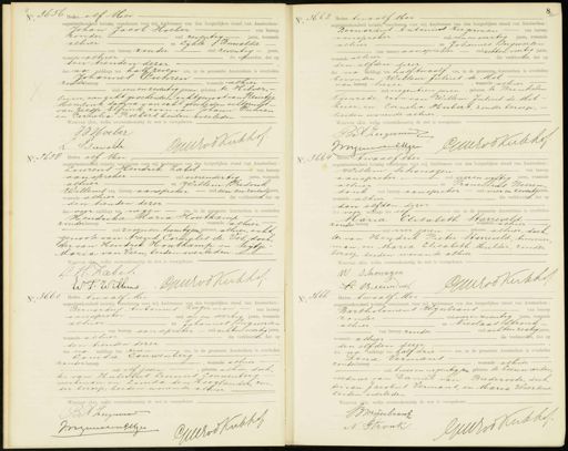 N 3656 56 Heden elf Mei- negentienhonderd twintig verschenen voor mij Ambtenaar van den burgerlijken stand van Amsterdam, Johan Jacob Hoeber van beroep zonder oud zeventig jaren, wonende alhier en Lijkle Buwalda van beroep zonder oud zeventig Jaren wonende alhier de verklaarden, dat op den tienden dezer des no mddags ten half zeven ure, in de gemeente Amsterdam is overleden, Johannes Pihren zonder beroep, wonende alhier oud een en zeventig jaren, geboren te Hilver„ sum, van echt gescheiden echtgenoot van Remtje Mensink daarna van echt gescheiden echtgenoot van Geesje Elfrink zoon van Johann Fuhren en Cornelia Roebers, beiden overleden Waarvan akte, welke overeenkomstig de wet is voorgelezen. JJ Hoeber MrobKukhss IJuaalda No. 3662 2 Heden twaalf Mei negentienhonderd twintig verschenen voor mij Ambtenaar van den burgerlijken stand van Amsterdam Bernardus Antonius Zeegerman van beroep aanspreker oud een en veertig jaren, wonende alhier en Johannes Ingwversen van beroep aanspreker oud achten veertig jaren wonende alhier die verklaarden, dat op den elfden dezer— des na uiddags ten half twaalf ure, in de gemeente Amsterdam is overleden bevonden. Willem Julius de Mol van beroep heier, wonende alhier oud negentien jaren, geboren te Breukelen Vijenrode zoon van Willem Julius de Mol heier, en Cornelia Hubert, zonder beroep,- leiden wonende alhier, Waarvan akte, welke overeenkomstig de wet is voorgelezen. BAt Zeegerman GMerod Kukhef Nngenewveelkigen N 3658 0 Heden elf Mei negentienhonderd twintig verschenen voor mij Ambtenaar van den burgerlijken stand van Amsterdam Dourens Hendrik Zabel van beroep aanspreker oud vierendertig jaren, wonende alhier en Willem Frederik Willems van beroep aanspreker oud een en zeventig Jaren wonende alhier die verklaarden, dat op den tienden dezer des voor middags ten negen ure, in de gemeente Amsterdam is overleden Hendrika Maria Houtkamp zonder deroep, wonende alhier oud zeven en twintig jaren geboren alhier, echt„ genoote van Arend Cornelis de Vos, doch„ ter van Hendrik Houtkamp en Seijtje. Maria van Veen, beiden overleden.- Vaarvan akte welke overeenkomstig de wet is voorgelezen. 4 H: Label Guilod Kerkhof. WF: Willems No. 3664 4 Heden Twaalf Mei negentienhonderd twintig verschenen voor mij Ambtenaar van den burgerlijken stand van Amsterdam: Willem Schonagen van beroep aanspreker oud vieren vijftig jaren, wonende alhier en Francisius Beeren, dank van beroep aanspreker oud vier en zeventig Jaren, wonende alhier die verklaarden, dat op den elfden dezer des voor middags ten elf ure, in de gemeente Amsterdam is overleden Maria Elisabeth Starreveld zonder beroep wonende alhier — oud vier jaren geboren alhier, doch, ter van Hendrik Pieter Starreveld, timmer man, en Maria Elisabeth Mulder, zonder beroep, beiden wonende alhier. Waarvan akte, welke overeenkomstig de wet is voorgelezen W. Dihonagen Guerod Kerkass. P Beeuwelk N 3660 50 Heden twaalf Mei negentienhonderd twintig verschenen voor mij Ambtenaar van den burgerlijken stand van Amsterdam Bernardus Antonius Zeegerman van beroep aanspreker oud een en veertig jaren, wonende alhier en Johannes Ingwversen van beroep aanspreker oud achtenveertig jaren wonende alhier die verklaarden, dat op den tienden dezer des na middags ten deven ure, in de gemeente Amsterdam is overleden Louisa Couwenberg- zonder beroep, wonende alhier oud elf jaren, geboren alhier, doch ter van Hubertus Levinus Couwenberg, werkman en Louisa den Hooglander zon„ der beroep, beiden wonende alhier Waarvan akte, welke overeenkomstig de wet is voorgelezen. B.A. Kiegerman Gelet Koths J: Nquurten Eltjes No 3666 Heden twaalf Mei negentienhonderd twintig verschenen voor mij Ambtenaar van den burgerlijken stand van Amsterdam Bartholomeus Wynbrans van beroep zonder oud vier en zeventig Jaren, wonende alhier en Nicolaas Stronk van beroep zonder oud achten zestig jaren, wonende alhier die verklaarden, dat op den elfden dezer des na middags ten half drie ure, in de gemeente Amsterdam is overleden Dina Vermans— zonder beroep, wonende alhier - oud twee en negentig jaren geboren te Leeuwarden, weduwe van Daniel van Brederoode, doch„ ter van Jacobus Vermans, en Maria Wiersma beiden overleden. Waarvan akte, welke overeenkomstig de wet is voorgelezen. BMijnbrung Gurns Kukkes N Stronk