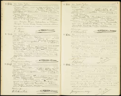 No. 3644 Heden zeven Juli negentienhonderd zes en twintig verschenen voor mij Ambtenaar van den burgerlijken stand van Amsterdam Meijer Degen, vader van den overledene van beroep bootwerker oud acht en dertig jaren, wonende alhier en Isidooi- Degen, oom van de overleden van beroep kleermaker oud twee en twintig jaren wonende alhier die verklaarden dat of zeven dezer des voor middags ten negen ure, in de gemeente Amsterdam is overleden Dierz zonder veroep C Legen, wonende alhier oud vijf jaren, geboren alhier, dochter van Meijer Degen, bootwerker en Roosje stempel, zonder beroep, beiden wonende alhier Waarvan akte, welke overeenkomstig de wet is voorgelezen. Ab Degen Ereuwer Degen No. 3650 Heden zeven Juli negentienhonderd zes en twintig verschenen voor mij Ambtenaar van den burgerlijken stand van Amsterdam; Willem Schonagen van beroep aanspreker oud acht en dertig jaren, wonende en Willem Polman Tuin alhier van beroep aanspreker oud zes en twintig jaren wonende alhier. die verklaarden, dat op vyf dezer des voor middags ten Atien ure, in de gemeente Amsterdam is overleden Jan Jacob Le Maitre wonende alhier — zoyder oeet oud negen en tachtig jaren, geboren te Utrecht weduwnaar van Josina Johanna Hartwich zoon van Nicolaas Willem Le Maitre en Elisabeth Kastrop, beiden overleden. Waarvan akte, welke overeenkomstig de'wet is voorgelezen HShonoge Grouwer W. Polman Tuin No. 3646 Heden zeven Juli negentienhonderd zes en twintig verschenen voor mij Ambtenaar van den burgerlijken stand van Amsterdam: Cornelis Petrus van Opstal- van beroep aanspreker oud zestig jaren, wonende alhier en Johannes Ingwversen- van beroep aanspreker oud vier en vyftig jaren, wonende alhier. die verklaarden, dat op E zes dezer des na middags ten vijf ure, in de gemeente Amsterdam is overleden Hermina Maria Douwes zonder beroep, echtgenoote van Abertus voornde Antonius Willemsen on werkman, beiden zehor wonende alhier is bevallen van een kind, dat zij als levenloos aangeven. Goedgekeurd de doorhaling van vijf gedrukte woorden Waarvan akte, welke overeenkomstig de wet is voorgelezen. E. P. v. Ofstal Niewer J: Mqueersen Elige No. 3652 Heden acht Juli negentienhonderd zes en twintig verschenen voor mij Ambtenaar van den burgerlijken stand van Amsterdam: Fredrik Anthonij de Zwaan van beroep aanpreker oud zevenen vijftig jaren, wonende alhier on Fredrik Anthony de Zu aan van beroep aampreker oud twee en dertig jaren wonende alhier
