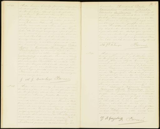 N.o 22. Heden, twee en twintig Januari ne honderd vijftien is voor mij Ambtenaar van den Burgerlijken Stand van Amsterdam verschenen: Gertruda Maria Gerarda Buitenkamp, zonder beroep, oud zeven en twintig jaren, wonende alhier, gehuwd met Johannes Petrus Meijer, rijwielher steller, wonende mede alhier, die aan mij ter inschrijving in de registers van den Burger lijken stand heeft overgelegd afschrift van een bij verstek gewezen vonnis der Arrondis sements Rechtbank te Amsterdam, van twintig November negentienhonderd veer tien, waarbij is verklaard geworden, dat het huwelijk tusschen: Johannes Petrus Meijer en Gertruda Maria Gerarda Buitenkamp, op twaalf september ne- gentienhonderd zes alhier voltrokken, door echtscheiding is ontbonden. Tevens is hierbij overgelegd eene verklaring van den griffier der voormelde Rechtbank, in dato elf dezer, ten bewijze strekkende, dat op zijn register geene aanteekening van gedaan verzet tegen gemeld vonnis is geschied Naarvan akte, welke overeenkomstigde wet is voorgelezen G: M: G. Buitenhamp Brevee N.o 24. tusschen: Hendrik P Camphuis en Maria Jacoba Cornelia de Langen, op twintig No vember negentienhonderd twee alhier vol trokken, door echtscheiding is ontbon den, Tevens is hierbij overgelegd eene verklaring van den griffier der voor melde Rechtbank in dato zes en twin tig September laatstleden, ten be wijze strekkende, dat op zijn register geene aanteekening van gedaan verzet tegen gemeld vonnis is geschied, Waar van akte, welke overeenkomstig de wet is voorgelezen. AH. J.C. de Langen Boriuee Heden, twee en twintig Januari negentien. honderd vijftien is voor mij Ambtenaar van den Burgerlijken stand van Amsterdam verschenen: Maria Jacoba Cornelia de Langen, zonder beroep, oud vijftig jaren. wonende alhier, gehuwd met Hendrik Bate Camphuis, handelsreiziger, wonende mede alhier, die aan mij ter inschrijving in de re„ gisters van den Burgerlijken stand heeft over gelegd afschrift van een bij verstek gewezen vonnisder Arrondissements Rechtbank te Amsterdam, van vier en twintig Juli negentienhonderd veertien, waarbij is verklaard geworden, dat het huwelij Heden, vijfentwintig Januari negentien honderd vijftien is voor mij Ambtenaar van den Burgerlijken Stand van Amsterdam ver schenen: Johanna Alijda Gasseling bloe menverkoopster, oud vier en veertig jaren, wonen de alhier, gehuwd met Lodewijk Johannes Duim, koopman, wonende mede alhier die aan mij ter inschrijving in de Registers van den Burgerlijken stand heeft overge legd afschrift van een bij verstek gewezen vonnis der Arrondissements- Rechtbank te Amsterdam, van negentien December negentienhonderd dertien, waarbij is ver klaard geworden, dat het huwelijk tus schen: Lodewijk Johannes Suim en Johanna Hlijda Gasseling, op veer tien Maart negentienhonderd zes alhier vol- trokken, door echtscheiding is ontbonden Tevens is hierbij overgelegd eene ver klaring van den griffier der voormel de Rechtbank, in dato vijf dezer ten bewijze strekkende, dat op zijn re. gister geene aanteekening van gedaan verzet tegen gemeld vonnis is ge- schied, Waarvan akte, welke over eenkomstig de wet is voorgelezen J A Goosseling 6 Drreve