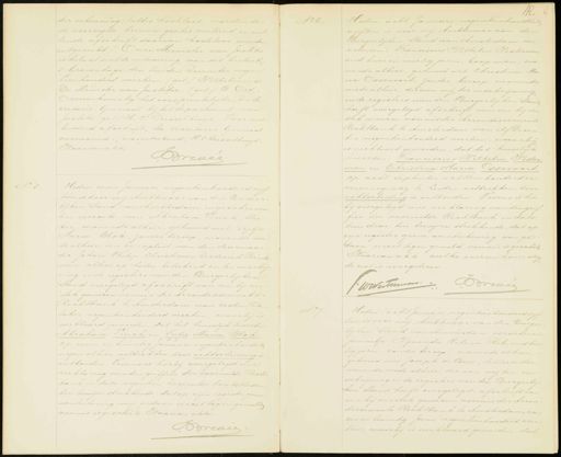 Heden zeven Januari negentienhonderd vijf„ tien is door mij Ambtenaar van den Burger. lijken stand van Amsterdam ingeschreven ten verzoeke van Abraham Vinck, blee ker, wonende alhier, gehuwd met Sijtje Maria Blok, zonder beroep, wonende me„ de alhier, een bij exploit van den deurwaar- der Johan Philip Christiaan Diederich Brink man, alhier op heden beteekend en ter inschrij- ving in de registers van den Burgerlijken stand overgelegd afschrift van een bij ver stek gewezen vonnis der Arrondissements Rechtbank te Amsterdam van zestien Oc tober negentienhonderd veertien, waarbij is verklaard geworden, dat het huwelijk tusschen 10 Abraham inck en Sijtje Maria Blok op zeven en twintig Januari negentienhonderd negen alhier voltrokken, door echtscheiding is ontbonden, Tevens is hierbij overgelegd eene verklaring van den griffier der voormelde Recht„ bank in dato negentien December laatstleden, ten bewijze strekkende, dat op zijn register geene aanteekening van gedaan verzet tegen gemeld vonnis is geschied. Waarvan akte Bredee Heden, acht Januari negentienhonderd vijf tien is voor mij, Ambtenaar van den Burger lijken stand van Amsterdam verschenen 8 Jannetje Wijnanda Helena Rib, oud twin tig jaren, zonder beroep, wonende alhier, gehuwd met Joseph de Bree, letterzetter wonende mede alhier, die aan mij ter in schrijving in de registers van den Burgerlij ken stand heeft overgelegd, afschrift van een bij verstek gewezen vonnis der Arron dissements Rechtbank te Amsterdam van zes en twintig Juni negentienhonderd veer tien, waarbij is verklaard geworden, da