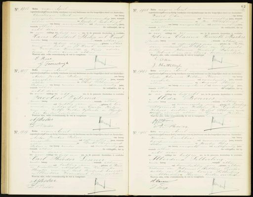 No. 1915 Heden negen April negentienhonderd twee en dertig verschenen voor mij Ambtenaar van den burgerlijken stand van Amsterdam Christiaan Beek van beroep aanspreker oud drieenzeventig Jaren, wonende alhier ep Gysbert Toorenburgh van beroep aanspieker oud tweeenzeventig Jaren wonende alhier die verklaarden, dat op acht dezer des voor middags ten half zes ure, in de gemeente Amsterdam is overleden Hans Meindert Philip in 't Hout, zonder beroep, wonende alhier oud drie dagen, geboren alhier zoon van Dirk in t Hout, onderwijzer en Everdina Henriëtte de Vries, zonder beroep, beiden wonende alhier Waarvan akte, welke overeenkomstig de wet is voorgelezen. C R eck . G. Poorenburgh No. 1921 1 Heden negen April negentienhonderd twee en dertig verschenen voor mij Ambtenaar van den burgerlijken stand van Amsterdam: van beroep Everf Okx. aanspreker oud zevenenvijftig jaren, wonende alhier en Jan Hettelingh van beroep aanspreke oud vierenzeventig Jaren, wonende alhier die verklaarden, dat op acht dezer des voor middags ten zes ure, in de gemeente Amsterdam is overleden Jobina Clasina Henriette Basters zonder beroep, wonende alhier oud vijfenvijftig jaren, geboren te Rotter dam, weduwe van Klaas van Langeveld dochter van Johannes Hendrik Basters en Jobina van der Burg, beiden overleden Waarvan akte, welke overeenkomstig de wet is voorgelezen. C. Okn Jrann J. Vattelingh No. 1917 Heden negen April negentienhonderd twee en dertig verschenen voor mij Ambtenaar van den burgerlijken stand van Amsterdam Anton Jacobus Belser van beroep aanspeeker oud vijfenvijftig jaren, wonende alhier en Dirk Ferdinand Belaer van beroep zonder oud eenentwintig jaren wonende alhier die verklaarden, dat op acht dezer des voor middags ten elf ure, in de gemeente Amsterdam is overleden Jacobus Wijtsma zonder beroep, wonende alhier oud tachtig jaren, geboren te hei munden echtgenoot van Geertje Kolijn zoon van Eeltje Eelkes Wijtsma en Rijntje hos beiden overleden Waarvan akte, welke overeenkomstig de wet is voorgelezen. ABBelsel Vera D. v Belker No 1923 2 Heden negen April negentienhonderd twee en dertig verschenen voor mij Ambtenaar van den burgerlijken stand van Amsterdam: Pieter Johannes Willem Kroon, van beroep aansreke oud vierentwintig Jaren, wonende alhier en August Reiss van beroep aanspreker oud zesenvijftig jaren wonende alhier de verklaarden, dat op zeven dezer des na middags ten halfacht ure, in de gemeente Amsterdam is overleden Alida Bonnes wonende alhier zonder beroep oud zesen veertig jaren, geboren te Doesburg, echtgenoote van Willem Jan Gysbert, Kisjes, dochter van Evert Bonnes zonder beroep, wonende alhier en Gesina Jonker overleden Waarvan akte, welke overeenkomstig de wet is voorgelezen. JJ WBroor Sumanf A: Meeiss. No. 1919 Heden negen April negentienhonderd twee en dertig verschenen voor mij Ambtenaar van den burgerlijken stand van Amsterdam Anton Jacobus Belser van beroep aanspreker oud vijfenvijftig jaren, wonende alhier en Dirk Ferdinand Beleer van beroep zonder oud eenentwintig jaren wonende alhier die verklaarden, dat op