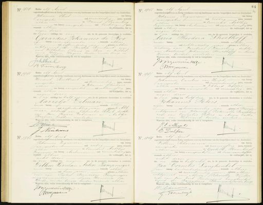 No 1939 Heden elf April negentienhonderd twee en dertig verschenen voor mij Ambtenaar van den burgerlijken stand van Amsterdam Johannes Thiel van beroep aanspreker oud eenenzestig jaren, wonende alhier en Barend Voorenburg van beroep aanspreker oud tachtig jaren wonende alhier negen dezer de erdrden, dat of des voor middags ten een ure, in de gemeente Amsterdam is overleden Gerardus Johannes de Roo van beroep cartinnagewerker, wonende alhier oud vijfen dertig jaren, geboren alhier echtgenoot van Bertha Rombaut zoon van Wilhelm Claus de Roo en Wilhel mina Helena Hogers beiden zonder beroep en wonende alhier.— Waarvan akte, welke overeenkomstigde wet is voorgelezen. Joh Chiel Puma B Taveenburg No 1945 Heden elf April negentienhonderd twee en dertig verschenen voor mij Ambtenaar van den burgerlijken stand van Amsterdam: Johannes Ingwersen van beroep aanspreker oud zestig Jaren, wonende alhier en Coenraad Matthijs Ingeversen van beroep lectricien oud zevenentwintig Jaren, wonende alhier die verklaarden, dat op negen dezer des na middags ten een ure, in de gemeente Amsterdam is overleden Maria Theodora Stroethof. zonder beroep, wonende alhier — oud achtenzestig jaren, geboren alhier weduwe, van Jacobus Kamerling, dochter van Martinus Johannes Stroethoff en Maria Roene, beiden overleden Waarvan akte, welke overeenkomstig de wet is voorgelezen. J: Ingeversenelige Nrzwersen No 1941 Heden elf April negentienhonderd twee en dertig verschenen voor mij Ambtenaar van den burgerlijken stand van Amsterdam, Hendrik Rietbroek van beroep aanspreker oud drieenveertig jaren, wonende alhier en Johannes Henhaus, -van beroep aanspreker oud achtenvijftig jaren wonende alhier die werklaarden, dat op negen dezer des na middags ten half vier ure, in de gemeente Amsterdam is overleden Marretje Oelman zonder beroep, wonende alhier oud vijfentachtig jaren, geboren te Alk maar, weduwe van Cornelis Schol dochter van Jan Reyers Oelman en Aaltje Bremer beiden overleden Waarvan akte, welke overeenkomstig de wet is voorgelezen. Huur Prenenf J Neutraus No. 1947 Heden elf April negentienhonderd twee en dertig verschenen voor mij Ambtenaar van den burgerlijken stand van Amsterdam Johannes Carolus van Herpt van beroep aanspreker oud tweeentwintig Jaren, wonende alhier en Ekhard Dulfer van beroep aanspieker oud eenenzestig Jaren, wonende alhier die verklaarden, dat op negen dezer des na middags ten half drie ure, in de gemeente Amsterdam is overleden — Johannes Peters zonder beroep, wonende alhier oud tweeenzeventig jaren, geboren te Besoyen echtgenoot van Johanna Pieternella Beurskens zoon van Cornelis Peters en Anna Catha rina van Helmond beiden overleden Waarvan akte, welke overeenkomstig de wet is voorgelezen. J.E. v. Herpt. Jemanf E. Dulper No. 194 Heden elf April negentienhonderd twee en dertig verschenen voor mij Ambtenaar van den burgerlijken stand van Amsterdam: Johannes Ingwersen van beroep aanspreker oud zestig jaren, wonende alhier en Coenraad Matthys Ingweisen van beroep elestricien oud zevenentwintig jaren wonende alhier de verklaarden, dat op acht dezer des voor middags ten negen ure, in de gemeente Amsterdam is overleden Willem Herman Anton Kampmeijer zonder beroep wonende alhier oud twee jaren, geboren alhier zoon van Pieter Bernardus Rampneijer mag zijnmeester en Maria termina de Vries, zonder beroep beiden wonende alhier Waarvan akte, welke overeenkomstig de wet is voorgelezen. J: IngeniersenEetze Juang Onmverse No. 1949 Heden elf April negentienhonderd twee en dertig verschenen voor mij Ambtenaar van den burgerlijken stand van Amsterdam Willem Schensema van beroep aanspreker oud zesenvijftig jaren, wonende alhier ep Gijsbert Voorenburgh van beroep aanspreker oud tweeenzeventig Jaren wonende alhier die verklaarden, dat op acht dezer des na middags ten half acht ure, in de gemeente Amsterdam is overleden Jan Cornelis Langhenher van beroep kantoorbediende, wonende alhier oud zesentwintig jaren-, geboren alhier echtgenoot van Alida Petronella Winter zoon van Jan Dirk Terdinand Langhenkel smid en Barendina Blommert zonder beroep Leiden wonende alhier Waarvan akte, welke overeenkomstig de wet is voorgelezen. W. Jchenaar x G. Voorenburgh 4nf