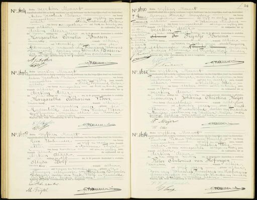 No. 1604 Heden veertien Maart negentienhonderd drie en dertig verschenen voor mij Ambtenaar van den burgerlijken stand van Amsterdam: Anton Jacobus Belser van beroep aanspreker oud zes en vijftig jaren, wonende alhier Dirk Ferdinand Belser van beroep aanspreker oud twee en twintig jaren wonende alhier, die verklaarden, dat op dertien dezer des voor middags ten drie ure, in de gemeente Amsterdam is overleden Margarelha Cornelia Bussen zonder beroep wonende alhier oud zeventig jaren geboren Al Alkmaar, weduwe van Franciscus Johannes Lagerweij, dochter van Cornelis Bussen en Truntje Honig, beiden overleden. Waarvan akte, welke overeenkomstig de wet if vóorgelezen. AJBeker Voumer PPJ Tammes Renvool en de doorhaling van drie /geschreven woorden en twee Vletters goedgekeurd. Gftanger J Venhm Heden vijftien Maart negentienhonderd drie en dertig verschenen voor mij Ambtenaar van den burgerlijken stand van Amsterd George Lavid Sangster van beroep =aanspreker oud vijf en dertig jaren, wonende 3 alhier en Johannes Neuhaus van beroep aanspreker oud negen en vijftig jaren wonende alhier. die verklaarden, dat oveertien dezer des — na middags ten half twee ure, in de gemeente Amsterdam is overleden Anne Co Crijntje Burema zonder beroep, , wonende alhier, oud zeven en zestig jaren, geboren te Hoogeveen echtgenoote van¶ Zindje Buuma, dochter van Andries Burema en Tryntje Hof, beiden Ooverleden van akte, welke overeenkomstig de wet is voorgelezen. GHsanger Brauwer J Nenhant Heden veertien Maart negentienhonderd drie en dertig verschenen voor mij Ambtenaar van den burgerlijken stand van Amsterdam Anton Jacobus Belser van beroep aanspreker oud zes en vijftig jaren, wonende alhier en Dirk Ferdinand Belser van beroep aanspreker oud twee en twintig jaren wonende alhier, die verklaarden, dat of dertien dezer des na middags ten negen- ure, in de gemeente Amsterdam is overleden Margarelha Catharina ViBer zonder beroep,, wonende alhier oud negentien jaren. geboren Medemblik, dochter van Pieter Visser Cafehouder, wonende alhier en Maria Bakker overleden Waarvan akte, welke overeenkomstig de wet is voorgelezen. JJ Beleer — Brouwer G Heden vijftien Maart negentienhonderd drie en dertig verschenen voor mij Ambtenaar van den burgerlijken stand van Amsterdam: Frederikus Meijer, vader van de overledene van beroep werkman oud zes en veertig jaren, wonende alhier, en Huelke Otter van beroep stoker oud vier en twintig jaren wonende alhier, die verklaarden, dat of veertien dezer: des voor middags ten negen ure, in de gemeente Amsterdam is overleden bevonden- Johanna Christina Meijer van beroep dienstbode, wonende alhier oud twintig jaren, geboren te stadt Theine, in Duitschland dochter van Frederikus Meijer, werkman en Jantina Meier, zonder beroep beiden wonende alhier Waarvan Akte, welke overeenkomstig de wet is voorgelezen. F=t Meyer Erouwer H. Otter. No. 1608 Heden vyftien Maart negentienhonderd drie en dertig verschenen voor mij Ambtenaar van den burgerlijken stand van Amsterdam: rion staliaander van beroep bode oud vijf en veertig jaren, wonende alhier en Marianua Tryfel van beroep zonder oud een en veertig jaren wonende alhier, die verklaarden, dat op dertien dezer, des Ma- middags ten elf ure, in de gemeente Amsterdam is overleden Alijsa Zolp ,wonende alhier, zonder beoe oud negen en zeventig pparen, eetoren A Tijmegen echtgenoote- van Abraham Benjamin Legger, dochter van Isak Wolf en Jeannette van Gelder beiden overleden. Waarvan akte, /welke overeenkomstig de wet is voorgelezen. zenstel aan der brianver M Trijtel No. 16142 Heden vijftien Maart negentienhonderd drie en dertig verschenen voor mij Ambtenaar van den burgerlijken stand van Amsterdam: Pulus Petrus Johannes Hulle van beroep aanspreker oud vijf en vijftig jaren, wonende alhier en Jacobus Jang van beroep aanspreker oud negen en zestig jaren wonende alhier, die verklaarden, dat of dertien dezer des na middags ten zeven ure, in de gemeente Amsterdam is overleden Pieler Anlonius van Hofwegen zonder beroep,, wonende alhier oud vijf jaren, geboren alhier zoon van Johannes Franciscus van Hofwegen dameskapper en Sybregt Houtman zonder beroep beiden wonende alhier Waarvan akte, welke overeenkomstig de wet is voorgelezen. J: P: J: Rulle branver I Vang