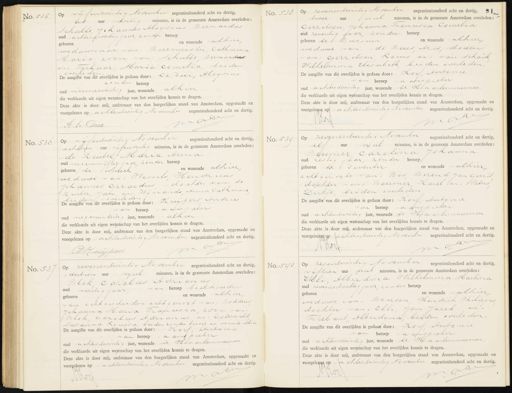 No. 535. Op vijfentwintig November negentienhonderd acht en dertig, zes uur dertig minuten, is in de gemeente Amsterdam overleden: Schulte Jhannes Aoysius Bernardus oud achtenzeintig jaar, zonder beroep geboren en wonende alhier weduwnaar van: Burmerster, Catharing Maria zoon van: Schulte, Bernardus en Terhaar, Maria conilia beiden overleden. De aangifte van dit overlijden is gedaan door: Le Suc, Aloynus zonder beroep oud vierenzeventig jaar, wonende alhier die verklaarde uit eigen wetenschap van het overlijden kennis te dragen. Deze akte is door mij, ambtenaar van den burgerlijken stand van Amsterdam, opgemaakt en voorgelezen op achtentwintig November negentienhonderd acht en dertig. mad A C: Due No. 538. Op zevenentwintig November negentienhonderd acht en dertig, 91. twee uur nul minuten, is in de gemeente Amsterdam overleden: — Gerritsen, Johanna Kancsia Cornelia oud zeventig jaar, zonder beroep geboren te Bussum en wonende alhier weduwe van: - de Beus Aris, - dochter van: Gerritsen Louis en: van Schack Wilhelmina Elisabeth, beiden overleden. De aangifte van dit overlijden is gedaan door: Rors, Antonie van beroep aanbreker oud achtentwintig jaar, wonende te Haarlemmume die verklaarde uit eigen wetenschap van het overlijden kennis te dragen. Deze akte is door mij, ambtenaar van den burgerlijken stand van Amsterdam, opgemaakt en voorgelezen op achtentwintig November negentienhonderd acht en dertig. Mal 108 No. 536 op vyfentwintig November negentienhonderd acht en dertig, achttien uur vijfenveertig minuten, is in de gemeente Amsterdam overleden: de Ruiter Maria Anna oud negenenvijftig jaar, zonder beroep geboren/ te sweek en wonende alhier weduwe van: Wessels, Hendricus Johannes Gerardus dochter van: de Ruster, Jan en. Wijnands Anna Catharina beiden - overleden De aangifte van dit overlijden is gedaan door: Ruysers Andries van beroep aansJuker oud negenendertig jaar, wonende - alhier die verklaarde uit eigen wetenschap van het overlijden kennis te dragen. Deze akte is door mij, ambtenaar van den burgerlijken stand van Amsterdam, opgemaakt en voorgelezen op -achtentwintig Novembnr negentienhonderd acht en dertig. mal A Ruijpers No. 539 op zevenentwintig November negentienhonderd acht en dertig, elf uur Dul minuten, is in de gemeente Amsterdam overleden: Beumer Carolina Johanna oud zestig jaar, zonder beroep geboren te Zeventer en wonende alhier echtgenoote van: Bos Berend Jan Gerrit dochter van: Beumer Karel en: Peturs Dertije beiden overleden De aangifte van dit overlijden is gedaan door: Korf, Antonie an beroep aansprker oud achtentwintig jaar, wonende te Haarlemmumen die verklaarde uit eigen wetenschap van het overlijden kennis te dragen. Deze akte is door mij, ambtenaar van den burgerlijken stand van Amsterdam, opgemaakt er voorgelezen op achtentwintig November negentienhonderd acht en dertig. o J. Koop No. 53 op zevenentwintig November negentienhonderd acht en dertig, -dertien uur ul minuten, is in de gemeente Amsterdam overleden: Blok Carolus Adrianus oud veertig jaar, van beroep boekhouder en wonende alhier geboren