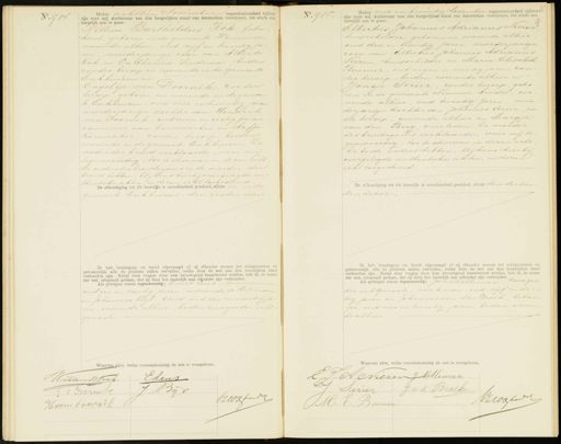 No. 014. Heden achttien ovember negentienhonderd vijfi zijn voor mij Ambtenaar van den burgerlijken stand van Amsterdam verschenen, ten einde een huwelijk aan te gaan: Willem Bartholdus Kok, fabri kant, geboren in de gemeente Wormerveer wonende alhier, oud vijf en twintig ja ren, meerderjarige zoon van Albert Kok en Catharina Suidema, beiden zonder beroep en wonende in de gemeente Enkhuizen en Engeltje van Doornik, zonder beroep, geboren en wonende in de gemeen te Enkhuizen, oud vier entwintig jaren meerderjarige dochter van Hendrik van Doornik, oud zeven en zestig jaren. aannemer van bouwwerken en Aafje Karemaker, zonder beroep, beiden wonende in de gemeente Enkhuizen, De vader der bruid verklaarde, voor mij tegenwoordig, toe te stemmen in dezen echt He ouders des bruidegoms en de moeder der bruid hebben, blijkens hierbij overgelegde au thentieke akten, in dezen echt toegestemd De afkondiging tot dit huwelijk is onverhinderd geschied, alhier en in de gemeente Enkhuizen, den zesden dezer Ik heb bruidegom en bruid afgevraagd of zij elkander nemen tot echtgenooten en getrouwelijk alle de plichten zullen vervullen, welke door de wet aan den huwelijken staat verbonden zijn. Nadat deze vragen door hen bevestigend beantwoord werden, heb ik, in naam der wet, uitspraak gedaan, dat zij door het huwelijk aan elkander zijn verbonden Als getuigen waren tegenwoordig: Evert Lens, timmerman oud een en veertig jaren, wonende te Hilversum en Johannes Bijl, smid, oud een enveertig ja- ren, wonende alhier, beiden zwagerder echt- genoote Waarvan akte, welke overeenkomastig de wet is voorgelezen. No. 915 den vier en twintig tovember negen zijn voor mij Ambtenaar van den burgerlijken stand van Amsterdam verschenen, ten einde huwelijk aan te gaan: Elbertus Johannes Adrianus Niezen huisschilder, geboren en wonende alhier oud drie en twintig jaren, meerderjarige zoon van Elbertus Johannes Adrianus Niezen, huisschilder en Maria Elisabeth Beumer, oud negen en veertig jaren, zon der beroep, beiden wonende alhier en Jansje Serier, zonder beroep, gebo ren in de gemeente Nieuwer -Amstel, wo nende alhier, oud twintig jaren min derjarige dochter van Johannes Serier, zon der beroep, wonende alhier en Margje van den Berg overleden. De moeder des bruidegoms verklaarde, voor mij te genwoordig, toe te stemmen in dezen echt De beide vaders hebben, blijkens hierbij overgelegde authentieke akten, in dezen echt toegestemd. De afkondiging tot dit huwelijk is onverhinderd geschied, alhier den dertien den dezer Ik heb bruidegom en bruid afgevraagd of zij elkander nemen tot echtgenooten en getrouwelijk alle de plichten zullen vervullen, welke door de wet aan den huwelijken staat verbonden zijn. Nadat deze vragen door hen bevestigend beantwoord werden, heb ik, in naam der wet, uitspraak gedaan, dat zij door het huwelijk aan elkander zijn verbonden. Als getuigen waren tegenwoordig: Jan Holleman, zwager der echtgenoote, werkman, oud vijf en der tig jaren en Johannes van den Broek, behan ger, oud vier en twintig jaren, beiden wonen de alhier Waarvan akte, welke overeenkomstig de wet is voorgelezen. Edens Willem BKoh. J. Bijs E v Doornits VZWoberdr Hvam Jaarnis Waarvan akte, welke overeenkomstig de wet is voorgelezen. CJ. A Niezer J Holleman J. Serier J. v.d. Broek VaWogaed M. E Beumers