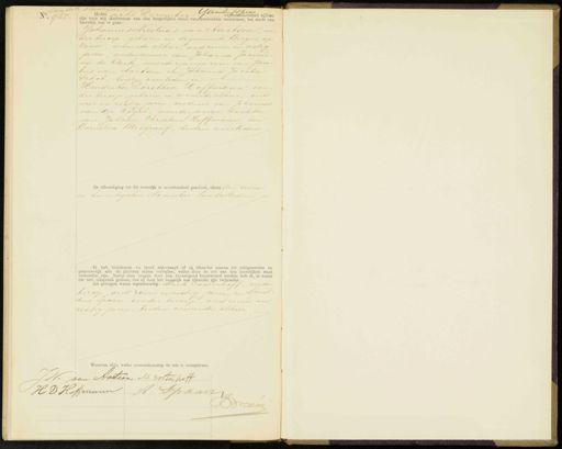 A No. 965. „ Gueniti 10 Heden acht negentienhonderd vijftien zijn voor mij Ambtenaar van den burgerlijken stand van Amsterdam verschenen, ten einde een huwelijk aan te gaan: Johannes Nicolaas van Hartsen, zon der beroep, geboren in de gemeente Bergen op zoom, wonende alhier, oud zeven en zestig jaren, weduwnaar van Johanna Jacomi na de klerk, meerderjarige zoon van Jaco bus van Aartsen en Johanna Jacoba Schot, beiden overleden en Hendrika Dorothea Hoffmann zon der beroep, geboren in wonende alhier, oud vier en zestig jaren, weduwe van Johannes van der Kogel, meerderjarige dochter van Johann Christian Hoffmann en Cornelia Blesgraaf, beiden overleden De afkondiging tot dit huwelijk is onverhinderd geschied, alhier den zeven twintigsten November laatstleden: Ik heb bruidegom en bruid afgevraagd of zij elkander nemen tot echtgenooten en getrouwelijk alle de plichten zullen vervullen, welke door de wet aan den huwelijken staat verbonden zijn. Nadat deze vragen door hen bevestigend beantwoord werden, heb ik, in naam der wet, uitspraak gedaan, dat zij door het huwelijk aan elkander zijn verbonden. Als getuigen waren tegenwoordig: Merk Oosterhoff, zonder beroep, oud zeven enzestig jaren en Arnol: dus Spaan, zonder beroep, oud zeven en zestig jaren, beiden wonende alhier Waarvan akte, welke overeenkomstig de wet is voorgelezen. van Aartsin Manterprj offmeene J Spaar N. Jn Aartsin. M vorte he H D Hoftmann Aethan Dorecel
