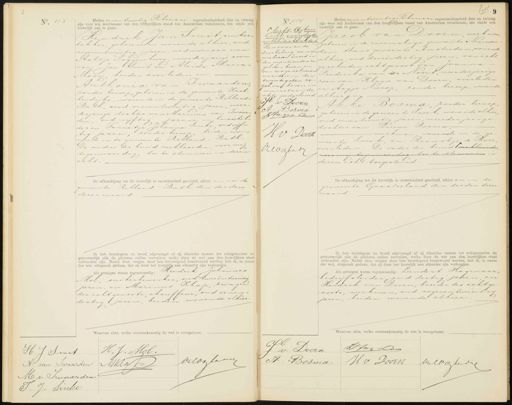 No. 113 Heden eenen twintig Februari negentienhonderd drie en twintig huwelijk aan te gaan: zijn voor mij Ambtenaar van den blirgerlijken stand van Amsterdam verschenen, ten einde een Hendrik Jan Smit suiker. bakker, geboren en wonende alhier, oud negenentwintig Jaren, weduwwaar van Aaltje Soggenburg, meerderjarige zoon van Jan Smit en Aleida Maria Mooij, beiden overleden en Anthonia van Swaarden, zonder beroep, geboren in de gemeente Krab- bendijke, wonende in de gemeente Rilland- Bath, oud vierentwintig Jaren, meer- derjarige dochter van Marinus van Swaar- den, oud vijftig jaren — huisschul- der en Iannetje Johanna Sinke, oud vijf- tig jaren, zonder beroep, beiden wo nende in de gemeente Rilland - Bath. De ouders der bruid verklaarden, voor mij tegenwoordig, toe te stemmen in dezen echt. De afkondiging tot dit huwelijk is onverhinderd geschied, alhier en in de gemeente Rilland - Bath den derden dezer maand Ik heb bruidegom en bruid afgevraagd of zij elkander nemen tot echtgenooten en getrouwelijk alle de plichten zullen vervullen, welke door de wet aan den huwelijken staat verbonden zijn. Nadat deze vragen door hen bevestigend beantwoord werden, heb ik, in naam der wet, uitspraak gedaan, dat zij door het huwelijk aan elkander zijn verbonden. Als getuigen waren tegenwoordig: Hendrik Johannes Mol, suikerbewerker, oud tweeëntwintig jaren, en Marinus Klap, zwager der echtgenoote chauffeur, oud eenen dertig jaren, beiden wonende alhier. Waarvan akte, welke overeenkomstig de wet is voorgelezen. No. 114 ¶heeft, blijkens hierbij overgelegde authentieke akte b Renvooi en de doorhaling van een den negentienden re„ geschreven woord in gel van boven en van zes geschreven woorden in den twintigsten re- gel van boven in nevensstaande akte goedgekeurd. H. v. Doorn A: Bosma. Huge H v Dorer Onwigkerde 9 Heden eenentwintig Februari negentienhonderd drie en twintig zijn voor mij Ambtenaar van den burgerlijken stand van Amsterdam verschenen, ten einde een huwelijk aan te gaan: Jacob van Doorn werkman geboren in de voormalige gemeente Nieuwen indam thans gemeente Amsterdam, wonende „alhier, oud drieëndertig jaren, van echt gescheiden echtgenoot van Joanna Frederika van der Noort, meerderjarige zoon van Klaas van Doorn, overleden en Hagje Nierop, zonder beroep, wonende alhier Akke Bosma, zonder beroep geboren in de gemeente Sneek, wonende alhier, oud eenentwintig Jaren, meerderjarige dochter van Douwe Bosma — werkman wonende in de ge meente Sneek en Reinskje de Boer overleden. De vader der bruid verklaarde voor toe te stemm dezen echt. toegestemd. De afkondiging tot dit huwelijk is onverhinderd geschied, alhier en in de gemeente Gaasterland den derden dezer maand Ik heb bruidegom en bruid afgevraagd of zij elkander nemen tot echtgenooten en getrouwelijk alle de plichten zullen vervullen, welke door de wet aan den huwelijken staat verbonden zijn. Nadat deze vragen door hen bevestigend beantwoord werden, heb ik, in naam der wet, uitspraak gedaan, dat zij door het huwelijk aan elkander zijn verbonden Als getuigen waren tegenwoordig: Leendert Hagenaar bedrijfsleider oud dertig jaren en Hendrik van Doorn, broeder des echtge„ noots, werkman, oud negenentwintig jaren, beiden wonende alhier. Waarvan akte, welke overeenkomstig de wet is voorgelezen. H. J. Mol H J. Smit valoolean A. van Swaarden MKat M v Swaarden J. J Sinke COC Han J v. Doorn A. Bosma. H v Doorn van Wie kerda