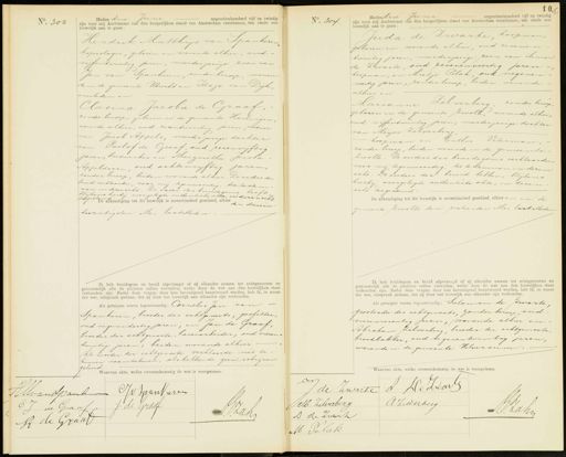 No. 303 Heden drie Juni negentienhonderd vijf en twintig zijn voor mij Ambtenaar van den burgerlijken stand van Amsterdam verschenen, ten einde een huwelijk aan te gaan: Hendrik Matthijs van Spanberen, koperslager, geboren en wonende alhier, oud- vijfentwintig jaren, meerderjarige zoon van Jan van Spankeren, zonder beroep, wonen„ de in de gemeente Utrecht en Idsje van Dijk, overleden en Clasina Jacoba de Graaf, zonder beroep, geboren in de gemeente Harlingen wonende alhier, oud zesentwintig Jaren, weduwe van Jacob Appels, meerderjarige dochter van Roelof de Graaf oud zesenvijftig jaren, bootwerker en Margaretha Jacoba Appeldoorn oud achtenvijftig jaren, zonder beroep, beiden wonende alhier De ouders der bruid verklaarden, voor mij tegenwoordig, toetestem men in dezen echt. De vader des bruidegoms heeft blijkens hierbij overgelegde authenteeke akte, in dezen icht toegestemd De afkondiging tot dit huwelijk is onverhinderd geschied, alhier n de twintigsten Mei laatstleden Ik heb bruidegom en bruid afgevraagd of zij elkander nemen tot echtgenooten en getrouwelijk alle de plichten zullen vervullen, welke door de wet aan den huwelijken staat verbonden zijn. Nadat deze vragen door hen bevestigend beantwoord werden, heb ik, in naam der wet, uitspraak gedaan, dat zij door het huwelijk aan elkander zijn verbonden. Als getuigen waren tegenwoordig: Cornelis Jan van Spankeren, broeder des echtgenoots, gasfitter, oud negenendertig jaren, en Jan de Graaf, broeder der echtgenoote, havenarbeider, oud vieren- twintig jaren, beiden wonende alhier De moeder der echtgenoote verklaarde niet te- kunnen naamteekenen, als hebbende geen schrijven geleerd Waar- ikte, welke overeenkomstig de wet is voorgelezen. No. 304 Heden drie Juni negentienhonderd vijf en twintig zijn voor mij Ambtenaar van den burgerlijken stand van Amsterdam verschenen, ten einde een huwelijk aan te gaan: Juda de Zwarte, koopman geboren en wonende alhier, oud zevenen twintig jaren, meerderjarige zoon van Simor de Zwarte, oud zevenenveertig jaren- koopman, en Mietje Polak oud negenen veertig jaren, zonder beroep, beiden wonende alhier en Marianne Zilverberg zonder beroep geboren in de gemeente zwolle, wonende alhier. oud vijfentwintig jaren, meerderjarige dochter van Meijer Zilverberg koopman en Esther Veterman zonder beroep, beiden wonende in de gemeente Zwolle. De ouders des bruidegoms verklaarden voor mij tegenwoordig, toe testemmen in dezen echt. De ouders der bruid hebben, blijkens hierbij overgelegde authentieke akte, in dezen echt toegestemd De afkondiging tot dit huwelijk is onverhinderd geschied, alhier en en de gemeente zwolle den zestienden Mei laatstlede Ik heb bruidegom en bruid afgevraagd of zij elkander nemen tot echtgenooten en getrouwelijk alle de plichten zullen vervullen, welke door de wet aan den huwelijken staat verbonden zijn. Nadat deze vragen door hen bevestigend beantwoord werden, heb ik, in naam der wet, uitspraak gedaan, dat zij door het huwelijk aan elkander zijn verbonden. Als getuigen waren tegenwoordig: Salomon de Zwarte grootvader des echtgenoots, zonder beroep, oud vierenzeventig jaren, wonende alhier en Abraham Zilverberg broeder der echtgenoote broodbakker, oud negenentwintig jaren, wonende in de gemeente Hilversum. Waarvan akte, welke overeenkomstig de wet is voorgelezen. CJv Spankeren Ptvanspank 07 6 J: de Grade de Graaf