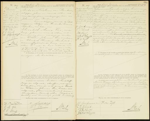 diamantslijper wonende te Ant- werpen in België en Hendrika Susanna Bleeker, overleden en Elisabeth Maria Vos zonder beroep, geboren en wonende alhier, oud twee ën twintig jaren, meerderjarige dochter van Wilhelm Johannes Vos, overleden en Elisabeth Christina Strik, oud zevenenvijftig jaren, zonder beroep, wonende alhier. De moeder der bruid verklaarde, voor mij tegenwoordig, toetestemmen in dezen echt- De vader des bruidegoms heeft, blijkens hierbij overgelegde authentieke akte, in dezen echt toegestemd De afkondiging tot dit huwelijk is onverhinderd geschied, alhier den drieen- twintigsten Mei laatstleden Ik heb bruidegom en bruid afgevraagd of zij elkander nemen tot echtgenooten en getrouwelijk alle de plichten zullen vervullen, welke door de wet aan den huwelijken staat verbonden zijn. Nadat deze vragen door hen bevestigend beantwoord werden, heb ik, in naam der wet, uitspraak gedaan, dat zij door het huwelijk aan elkander zijn verbonden. Als getuigen waren tegenwoordig: Antoon Martelhoff, zwager der echtgenoote, chanffeur, oud negenen- twintig jaren, worende in de gemeente Utrecht en Wilhelmus Johannes Vos broeder der echtgenoote, glazenwasscher, oud zevenen- twintig jaren, wonende alhier, GGoedgekeurd de doorhaling eener abusievelijk gestelde handteekennn No. 308 vader der bruid verklaarde Renvooi en de door haling van drie ge¬ schreven woorden en den zestienden regel van boven in nedens staande akte goedge keurd J: Gentenaar Ia a/ GJ Rluuis J H Kens W v Zgf JBSM Vegger AVZahy Heden drie Juni tienhonderd vijf en twintig zijn voor mij Ambtenaar van den burgerlijken stand van Amsterdam verschenen, ten einde een huwelijk aan te gaan: Johannes Gentenaar, koopman, ge boren en wonende alhier, oud zesen twintig jaren, meerdejarige zoon van loopknecht, wonende alhier, en Arie Gentenaar, Mathilda van den Berg, overleden, en Catharina Johanna Kluit, zonder beroep, geboren en wonende alhier, oud vyfentwintig jaren, meerderjarige dochter van Jan Hermanus Kluit oud zevenenvyftig jaren, loopknecht, wonen de alhier, en Johanna Uittenbosch, overleden. Debeide vaders verklaarden voor mij tegenwoordig, toe te stemmen in dezen echt. De vader desbruide gems heeft, blijkens hierbij overgelegde authen tieke akte, in dezen echttoegestemd De afkondiging tot dit huwelijk is onverhinderd geschied, alhier hen drieer twintigsten Mei laatstleden Ik heb bruidegom en bruid afgevraagd of zij elkander nemen tot echtgenooten en getrouwelijk alle de plichten zullen vervullen, welke door de wet aan den huwelijken staat verbonden zijn. Nadat deze vragen door hen bevestigend beantwoord werden, heb ik, in naam der wet, uitspraak gedaan, dat zij door het huwelijk aan elkander zijn verbonden. Als getuigen waren tegenwoordig Johannes Berthus Ingenatus Maria Kegger, slachter, oud vierenvijftig jaren, en Theodorus van Zijl, huisschilde oud vifenzestig jaren, beiden wonende alhier. Waarvan akte, welke overeenkomstig de wet is voorgelezen. A Martethoff A: N: van Rentun E. M. VOs. J A:V. Zahen C Strif Masselt J van Zijl J: Genfenaar J Kluit PO A. Bzakz D K Kliut JB JM Hlegger
