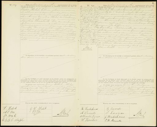 V N. 289 Heden achtentwintig Mei negentienhonderd vijf en twintig zijn voor mij Ambtenaar van den burgerlijken stand van Amsterdam verschenen, ten einde een huwelijk aan te gaan. Pieter Holst, kellner, geboren in wonen de alhier, oud zesentwintig jaren, meer derjarige met erkende natuurlijke zoon van Anna Cornelia Holst, zonder beroep, wonende alhier, en „ Agatha rusabeth Vos, zonder beroep geboren en wonende alhier, oud drie en twintig jaren, meerderjarige dochter van Oomke Vos, oud achtenvijftig jaren. winkelier, en Catharina Susanna Dord thea Elisabeth Wessels, oud drieenvyft jaren, zonder beroep, beiden wonende alhier De ouders der bruid verklaarden, voor mij tegenwoordig, toe te stemmen in dezen Echt. De afkondiging tot dit huwelijk is onverhinderd geschied, alhier den zestien den dezer maand Ik heb bruidegom en bruid afgevraagd of zij elkander nemen tot echtgenooten en getrouwelijk alle de plichten zullen vervullen, welke door de wet aan den huwelijken staat verbonden zijn. Nadat deze vragen door hen bevestigend beantwoord werden, heb ik, in naam der wet, uitspraak gedaan, dat zij door het huwelijk aan elkander zijn verbonden. Als getuigen waren tegenwoordig: George Wilhelm Holst¬ werkman, oud zevenenveertig jaren, en Pieter Oomke Vos, broeder der echtgenogte winkelier, oud zesentwintig jaren, bei den wonende alhier Waarvan akte, welke overeenkomstig de wet is voorgel . 290 . 290 3 vonnis der Arrondissement Rechtbark te Amsterdam van zeven december negentienhonderd eenendertig is uitgesproken de ontbinding door echtscheiding van het in neven- staande akte. vermelde huwelyk Ingeschreven in het register van Huwvelijken en Echtscbeidingen nummmer een folio vier te Amsterda m heden negen Januari negen tienhonderd twee en dertig A.EV.Zahe Heden achtentwintig Mei negentienhonderd vijf en twintig „ (zijn voor mij Ambtenaar van den burgerlijken stand van Amsterdam verschenen, ten einde een APBeijk aan te gaan Roeiof Hendriksma leerling machi„ nmist bij de Nederlandsche Spoorwegen, ge„ boren en wonende alhier, oud zesention „tig jaren, meerderjarige zoon van Antee te Hendriksma, oud vierenvijftig jaren, — kleermaker, en Wietste Roorker oud n drie en vyftig jaren, zonder beroep, beiden 1 & wonende alhier, en ed Martha Berends, zonder beroep, geboren inde gemeente Groningen, wonen de alhier, oud drieentwintig jaren, meerderjarige dochter van Berend Berends, oud zesenveertig jaren, igaren maker, en Jantje Looman, oud achten 2 veertig jaren zonder beroep, beidenwonen de alhier Beider ouders verklaarden; Jvoor mij tegenwoordig, toe te stemmen dezen echt De afkondiging tot dit huwelijk is onverhinderd geschied, alhier den zestig den dezer maand Ik heb bruidegom en bruid afgevraagd of zij elkander nemen tot echtgenooten en getrouwelijk alle de plichten zullen vervullen, welke door de wet aan den huwelijken staat verbonden zijn. Nadat deze vragen door hen bevestigend beantwoord werden, heb ik, in naam der wet, uitspraak gedaan, dat zij door het huwelijk aan elkander zijn verbonden. Als getuigen waren tegenwoordig Gerrit Hendriksma, broeder des echtgenoot, izerwerker, oud vier entwintig jaren, en Casper Hendricus Berends, broeder der echtgenoote chanf feur, oud zesentwintig jaren, beiden We nende alhier Waarvan akte, welke overeenkomstig de wet is voorgelezen. G Holst „ G W. Holst P A E. Vol