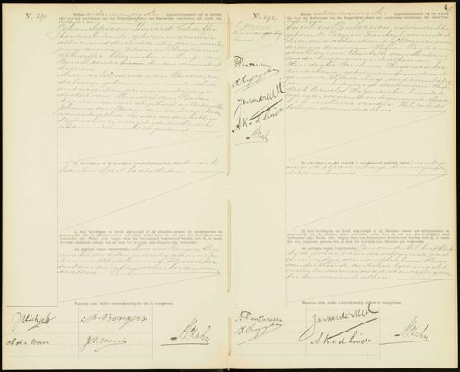 AVdahg Heden achtentwintig Mei negentienhonderd vijf en twintig zijn voor mij Ambtenaar van den burgerlijken stand van Amsterdam verschenen, ten einde¶een huwelijk aan te gaan: turenen Santazesch, rotatiedrukker, geboren te Parijs in Frankrijk, wonende al hier, oud achtentwintig Roemeen, meer derjarige zoon van Storca Tantazescu overleden, en Elisabeth van Meeteren zonder beroep, wonende alhier, en Hendrika Carolina Hagenzieker, zonder beroep, geboren enwonende inde gemeente sGravenhage, oud zesendertig jaren, meerderjarige dochter van Hen drik Cornelis Hagenzieker, handels. reiziger, wonende inde gemeente 'sGraver hage, en Maria vander Wel, zonder beroep, wonende alhier De afkondiging tot dit huwelijk is onverhinderd geschied, alhier nindege meente sGraventrage, den negenden dezer maand Ik heb bruidegom en bruid afgevraagd of zij elkander nemen tot echtgenooten en getrouwelijk alle de plichten zullen vervullen, welke door de wet aan den huwelijken staat verbonden zijn. Nadat deze vragen door hen bevestigend beantwoord werden, heb ik, in naam der wet, uitspraak gedaan, dat zij door het huwelijk aan elkander zijn verbonden. als getuigen waren tegenwoordig: Jan van der Wel, hoofdklerk bij de politie voor der echtgenoote, oud eenenvyftig jaren, en Abraham Klaas van der Linde, controleur bij een nacht verligheidsdienst, oud twee envyftig jaren beiden wonende alhier Waarvan akte, welke overeenkomstig de (wet is voorgelezen. M Bongerz Jalschaek C x at 487