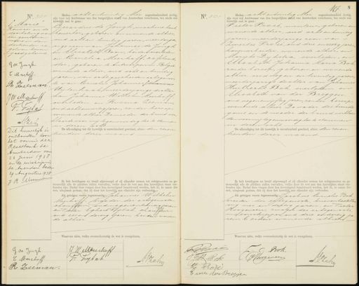 300 1. Marie Renvooi en de doorhaling van een geschreven woord in den dertienden ie„ gelvan boven goedgekeurd. G de Jongh E Meerloff. R Lelman. JW Meehoeff T Vijlel AZahy ontbonden door Dit huwelijk is het vonnis der Rechtbank te Amsterdam van 23 Juni 1938 en de inschrijving te Amterdam bed 29 Augustus 1938 JR Minul Heden achtentwintig Mei negentienhonderd dertig, zijn voor mij Ambtenaar van den burgerlijken stand van Amsterdam verschenen, ten einde een huwelijk aan te gaan: bewerker, geboren en wonende alhier, Gerardus de Jongh, machine-hout„ oud acht en twintig jaren, meerderja„ „rige zoon van Johannes de Jongh en Elisabeth Boon, beiden overleden en Cornelia Meerhoff, cafehoud, ster, geboren te Antwerpen in Belgie wonende alhier, oud acht en twintig jaren, van echtgescheiden echtgenoo„ te van Cornelis Johannes Mtaria lijtenhaak, meerderjarige dochter van Johannes Wilhelm Meerhoff overleden, en Rosina Zeeman¬ oud achtenveertig jaren, zonder beroep. wonende alhier De moeder der bruid ver klaarde voor mij tegenwoordig toe te stemmen m dezen echt De afkondiging tot dit huwelijk is onverhinderd geschied, alhier den zeven knden dezer maand On Ik heb bruidegom en bruid afgevraagd of zij elkander nemen tot echtgenooten en ge- trouwelijk alle de plichten zullen vervullen, welke door de wet aan den huwelijken staat ver- bonden zijn. Nadat deze vragen door hen bevestigend beantwoord werden, heb ik, in naam der wet, uitspraak gedaan, dat zij door het huwelijk aan elkander zijn verbonden Als getuigen waren tegenwoordig Johannes Wilhelm Meerhoff, broeder der echtgenoote chanffem, oud negenentwintig jaren en Pieter Egbert Tijtak, chanffeur. oud zes en dertig jaren, beiden wonen de alhier Waarvan akte, welke overeenkomstig de wet is voorgelezen. No. 301 Mf Heden achtentwintig Mei negentienhonderd dertig zijn voor mij Ambtenaar van den burgerlijken stand van Amsterdam verschenen, ten einde een huwelijk aan te gaan: Pieter Prose, monteur, geboren en wonende alhier, oud acht entwintig jaren, meerderjarige zoon van Zweitse Prose, oud drie enzestig jaren havenarbeider, wonende alhier, en Marijke Dijkstra, overleden, en Elisabeth Johanna Maria Bok zonder beroep, geboren en wonende alhier, oud negen en twintig jaren meerderjarige dochter van Johannes Huibrecht Bok, overleden, en Elisabeth van der Breggen. oud negenenvijftig jaren, zonder beroep wonende alhier. De vader des bunde goms en de moeder der bruid verklaar den voor mij tegenwoordig toe te stemmen m dezen echt De afkondiging tot dit huwelijk is onverhinderd geschied, alhier den zeven- tienden dezer maand Ik heb bruidegom en bruid afgevraagd of zij elkander nemen tot echtgenooten en ge- trouwelijk alle de plichten zullen vervullen, welke door de wet aan den huwelijken staat ver- bonden zijn. Nadat deze vragen door hen bevestigend beantwoord werden, heb ik, in naam der wet, uitspraak gedaan, dat zij door het huwelijk aan elkander zijn verbonden. als getuigen waren tegenwoordig: Jacobus Cornelis Bok broeder der echtgenoote, brievenbestelle oud vier en dertig jaren, en Pieter Hoogeveen, zwager des echtgenoots, motorschipper, oud drie en dertig ja ren, beiden wonende alhieti Waarvan akte, welke overeenkomstig de wet is voorgelezen. G. de Jingh J.W. Meeihoff V Vstoek E Meerhoff. AZake H Zeeman. P Grans J C. Bok. HHoogeveen JA Bol BZahy B de Bose 6 van der Bregyer
