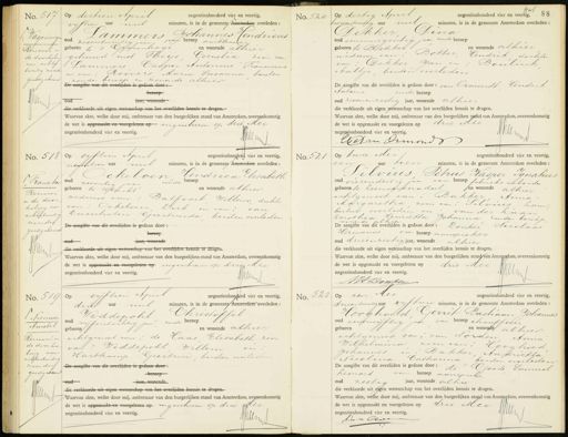 No. 517. „Wagenuigen Renvooi en de doorhaling van achter twintig woorde goedgekeurd W op dertien April negentienhonderd vier en veertig, vijftien uur nul minuten, is in de gemeente Amsterdam overleden: 0 Lammers Johannes endricus 7 oud zesentwintig jaar, aan beroep ambtenaar geboren te 's Gravenhage en wonende alhier gehuwd met Theys, Cornelia zoon van m van: Roovers Maria Susanna beiden Lammers Casper Antonius Franciscus De aangifte van dit overlijden is gedaan door: zonder beroep en wonende alhier beroep — jaar, wonende die verklaarde uit eigen wetenschap van het overlijden kennis te dr Waarvan akte, welke door mij, ambtenaar van den burgerlijken stand van Amsterdam, overeenkomstig de wet is opgemacht en voorgelezen op ingeschreven op drie Mei negentienhonderd vier en veertig. Ilemg No. 520 9p dertig April negentienhonderd vier en veertig, 88 tweeentwintig uur niet minuten, is in de gemeente Amsterdam overleden: Dekker Dina oud eenennegentig jaar zonder beroep geboren te Blokker en wonende alhier weduwe van, Botter, Hendrik dochter van: Dekker Jan en: Boulink Aaltje, beiden overleden De hangtte van dit overlijden is gedaan door: van Ormondt Hendrik Antonie zonder beroep oud zevenenzestig jaar, wonende alhier die verklaarde uit eigen wetenschap van het overlijden kennis te dragen. Waarvan akte, welke door mij, ambtenaar van den burgerlijken stand van Amsterdam, overeenkomstig de wet is opgemaakt en voorgelezen op drie Mli negentienhonderd vier en veertig. JMn Met in Onmond No. 518 Francken Renvooi en de door haling van achtentwintig woorden goedgekeurd Wn