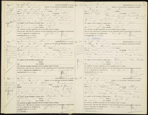 woord Goedgekeurd 11 JMm op ee Maart negentienhonderd zes en veertig, dite uur nut minuten, is in de gemeente Amsterdam overleden: van der Lugt Fannetjen oud achtenzeventig jaar ronder beroep geboren te Hurderwijk en wonende alhier weduwe van: Geele Alphonsus dochter van: van der Lugt Gerrit Antonie, en i Rooseboom Wilhelmina Frederika, beiden overleden- De aangifte van dit overlijden is gedaan door: de Goede Samuel Leonard van beroep aanspieken oud tweeenzestig jaar, wonende alhier die verklaarde uit eigen wetenschap van het overlijden kennis te dragen. Waarvan akte, welke door mij, ambtenaar van den burgerlijken, stand van Amstefdam, overeenkomstig de wet is opgemaakt en voorgelezen op vijf April Jli negentienhonderd zes en veertig. J.C. Owve op vier April negentienhonderd zes en veertig twee uur twintig minuten, is in de gemeente Amsterdam overleden: Jupin Cornelia oud achtenzeventig jaar zonder veroep geboren te zijpe en wonende alhier weduwe van: Stoekenbroek Evert Hendrik dochter van " Jupijn Pieter en, Kinsler Guurtje beiden overleden. De aangifte van dit overlijden is gedaan door: Zubsen Johan van beroep aanspreker oud zevenenvijftig jaar, wonende alhier die verklaarde uit eigen wetenschap van het overlijden kennis te dragen. Waarvan akte, welke door mij, ambtenaar van den burgerlijken stand van Amsterdam, overeenkomstig de wet is opgemaakt en voorgeleren op Zes April Au negentienhonderd zes en veertig. „ No. 32 J. Hilversun Renvooi en van achter. twintig woorden quldgekeurd W Op drieentwintig Maart gegentenhonderd zes en veertig, drie uur dertig minuten, is in de gemeente Amsterdam overleden: Rietbroek Hendrik oud vijfentwintig jaar van beroep winkelbediende geboren en wonende alhier ongehuwd zoon van; Rietbroek- Hendrik en van, Donker Susanna Maria Kelena beiden overleden De aangifte van dit overlijden is gedaan door:— beroep oud jaar, wonende die verklaarde uit eigen wetenschap van het overlijden kennis te dragen. Waarvan akte, welke door mij, ambtenaar van den burgerlijken stand van Amsterdam, overeenkomstig de wet is opgemaakt en voorgelezen op ingeschreven op vijf April negentienhonderd zes en veertig. Wn fo. 35 Goedgekerr de doorbulin van twee woorden Wuln op vijf April negentienhonderd zes en veertig acht uur veertig minuten, is in de gemeente Amsterdam overleden: „ Bos Harmanna oud twee weken zonden beroep geboren alhier en wonende zonder wettige woonplaats dachter van Bos Harmanna zouder beroep, wonende. alhier De aangifte van dit overlijden is gedaan door: Klaasse Bos Willem van beroep aanspreke oud negenentwintig jaar, wonende alhier die verklaarde uit eigen wetenschap van het overlijden kennis te dragen. Waarvan akte, welke door mij, ambtenaar van den burgerlijken, stand van Amsterdam, overeenkomstig de wet is opgemaakt en voorgelezen op zes April. negentienhonderd zes en veertig. Jtu Waleusen No. 33 Goedgekeurd de doorhuleng van zeventien woorden H HGrenke C negentienhonderd zes en veertig, op drie April twee uur nul minuten, is in de gemeente Amsterdam overleden: Nicolet Johanna Geertruida — zonder beroep gebeeen en wonende te Jaar lemmermeer echtgenoote van: de Bel Leendert Cornelis, zonder beroep wonende te Haarlemmermeer bevallen van een kind dat als levenloos is aangegeven De aangite van dit overlijden is gedaan door: Brenker endrik Frederik van beroep ambtenaar oud veertig jaar, wonende alhier die verklaarde uit eigen wetenschap van het overlijden kennis te dragen Waarvan akte, welke door mij, ambtenaar van den burgerlijken stand van Amsterdam, overeenkomstig de wet is opgemaakt en voorgelezen op vijf April Wlng negentienhonderd zes en veertig. W.F. Mrenke No. 36 op vijf April negentienhonderd zes en veertig een uur nul minuten, is in de gemeente Amsterdam overleden: Zwaan Veeltje oud zesenzeventig jaar zonder beroep geboren te Den Helder en wonende alhier weduwe van; Schoorl Hendrik dochter van: Zwaan Antonie en Breet Veeltje beiden overleden De aangifte van dit overlijden is gedaan door: Hildering Dirt van beroep aanspieke oud zestig jaar, wonende alhier die verklaarde uiteigen wetenschap van het overlijden kennis te dragen. Waarvan akte, welke door mij, ambtenaar van den burgerlijken stand van Amsterdam bvereenkomstig de wet is opgemaakt en voorgelezen op — zes April an negentienhonderd zes en veertig oildein
