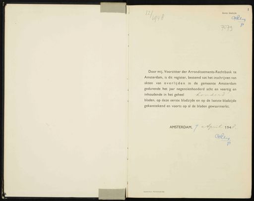 Stadsarchief Amsterdam, archieftoegang 5009, Archief van de Burgerlijke stand, inventarisnummer 7079, Overlijdens, Akten, Registers van overlijdensakten, deel 12