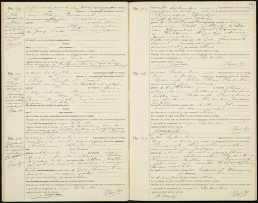 No. 199. ¶ twee ¶ Anschwitz in Polen Twee renvooien en de doorhaling van een endertig woorden goedge beurd Noart Op of omstreeks twee ën twintig October negentienhonderd acht en veertig, mouten, is, in de gemeente Amsterdam overleden: