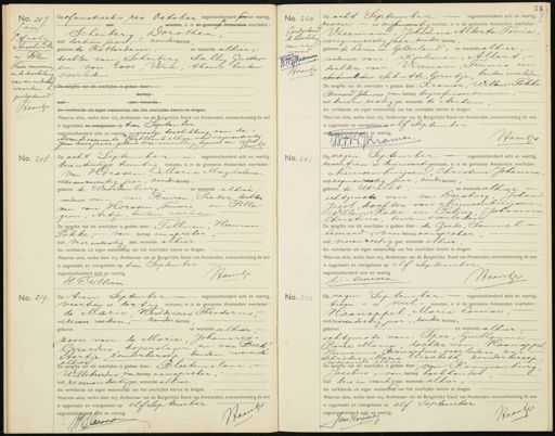 No. 217 /vier T. Jnabis Anschwitz in Polen Twee renvooien en de doorhaling van een endertig woorden L goedgekeurd Haanten op of omstreeks zes October negentienhonderd cht en veertig vurten, 1s in de gemeente Amsterdam overleden: Scheiberg Dorothea oud dertien jaar, zonder beroep geboren te Rotterdam, en wonende alhier. dochter van: Scheiberg Sallig Gustan en: van Esso, Vera, thans beiden overleden. De vongite van dit overlijden is gedaan door: beroep bdoJaar, wonende die verklaarde uit oigen wetenschap van het overlijden konnis te dragen. Waarvan akte, welke door mij, Ambtenaar van de Burgerlijke Stand van Amsterdam, overeenkomstig de wet is opgemaakt en voorgelezen op ten September negentienhonderd acht en veertig, ingevolge beschikking van de Arrondissements Rechtbank alhier, van negenentwintig Juni dezes jaars, geldende deze aanvulling tegenover een der No. 220 Goedgekeurd de doorhaling van een woord Wan Haant op acht September negentienhonderd acht en veertig, zeven uue vijfenveertig windten, is in de gemeente Amsterdam overleden: Vreeman, Johanna Alberta Sonia oud negenenzestig jaar, zonder beroep geboren te Laren in Gelderland, en wonende alhier. weduwe van: Koeleman, Albert, dochter van: Treeman, Teunis en: Schutte Schutte, Gerritje beiden overleden De aangste van dt overlijden is gedaan door: Kramer, Willem Tokke Bernard Johannes van beroep begrafenisondernemer, oud drie en zestig jaar, wonende te Arrhem die verklaarde uit eigen wetenschap van het overlijden kennis te dragen. Waarvan akte, welke door mij, Ambtenaar van de Burgerlijke Stand van Amsterdam, overeenkomstig de wet is opgewaakt en voorgelezen en elf September negentigghonderd acht en veertig. Haanzen HKramer. 31 opacht September negentienhonderd acht en veertig, drie en twintigser twintig winuten, is in de gemeente Amsterdam overleden: van Horssen Maria Magdalena, oud zesenzeventig jaar, zonder geroep, geboren te Waardenburg en wonende alhier weduwe van: van Buuren, Pieter dochter van: van Korssen, Teunis en Pelle- grom, Artje, beiden overleden De zangite van dit overlijden is gedaan door: Pillman, Herman. Tokke, van beroep aanspreker oud vier enzestig jaar, wonende alhier die verklaarde uit eigen wetenschap van het overlijden kennis te dragen. Waarvan akte, welke door mij, Ambtenaar van de Burgerlijke Stand van Amsterdam, overeenkomstig de wet is opgemaakt en voorgelezen op tien September negentienhonderd acht en veertig Haartr H.T. Till oenegen September negentienhonderd acht en veertig zeventien uur drie enveertigninuten, is in de gemeente Amsterdam overleden Nieuwenhuijsen, Christina Johanna oud negenenzestig jaar, zonder beroep, geboren te Utrecht, en wonende alhier echtgenote van: van Doesburg, Jolan Jacob, dochter van: Nieuwenhuysen, Willem Pieter en Paling, Johanna Christina, beiden overleden De aangifte van dit overlijden is gedaan door: de Goede, Sanuel Leonard, van beroep aanspreker oud vierenzestig jaar, wonende alhier die verklaarde uit eigen wetenschap van het overlijden kennis te dragen. Waarvan akte, welke door mij, Ambtenaar van de Burgerlijke Stand van Amsterdam, overeenkomstig de wet is opgemaakt en voorgelezen op elf September negentienhonderd acht en veertig. Haantes A. - twedee No. 219. op tien September negentienhonderd acht en veertig, veertien ur dertig minuten, is in de gemeente Amsterdam overleden: de Marie, Hendricus Theodorus, oud zeven weken, zonder beroep geboren en wonende alhier zoon van: de Marie, Johannes- Gerardus koperslager en: van Beek Aartje, zonder beroep beiden wonende alhier De zangite van dit overliden is gedaan door: Bleekemolen, Willebrordus van beroep aanspreker, oud zevenendertig jaar, wonende alhier die verklaarde uit eigen wetenschap van het overlijden kennis te dragen. Waarvan akte, welke door mij, Ambtenaar van de Burgerlijke Stand van Amsterdam, overeenkomstig de wet is opgemaakt en voorgelezen op elf September Hot negentienhonderd acht en veertig. JGCemn No. 222 op regen September negentienhonderd acht en veertig, tien uur Nul- minuten, is in de gemeente Amsterdam overleden: Haanappel, Maria Louise, oud vierendertig jaar, zonder beroep, geboren en wonende alhier echtgenote van: Spee, Guillaume Pirre Maria, dochter van: Kaanappel Hermanus Bernardus, overleden. schröder, Maria Elisabeth zonder beroep wonende alhier De aangtte van dit overlijden is gedaan door: van Konijnenburg Jacobus, van beroep boekhouder oud drie en veertig Jaar, wonende alhier, die verklaarde uit eigen wetenschap van het overlijden kennis te dragen. Waarvan akte, welke door mij, Ambtenaar van de Burgerlijke Stand van Amsterdam, overeenkomstig de wet is opgemaakt en voorgelezen op elf September Haarfj negentienhonderd acht en veertig. Jan Koupen
