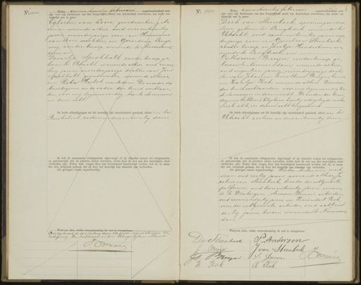 zes en twintig februari negen onderd acht zijn voor mij Ambtenaar van den burgerlijken tand van Amsterdam verschenen, ten einde een hugelijk aan te gaan: Egbertus van Loon, grondwerker, geboren en wonende alhier, oud vier entwintig jaren meerderjarige zoon van Henricus van zoon, overleden, en Gerardina Lange weg, zonder beroep, wonende te Nieuwendam, en Devertje Sprokholt, zonder beroep, geboren te Utrecht, wonende alhier, oud zeventien jaren, minderjarige dochter van Jan Sprokholt, grondwerker, wonende alhier, en Rika Hulst, overleden. De moeder des bruidegoms en de vader der bruid verklaarden, voor mij tegenwoordig, toe te stemmen in dezen echt. De beide afkondigingen tot dit huwelijk zijn onverhinderd geschied, alhier en te Buiksloot zestien en drie en twintig dezer. Ik heb de aanstaande echtgenooten afgevraagd of zij elkander nemen tot echtgenooten en getrouwelijk alle de plichten zullen vervullen, welke door de wet aan den huwelijken staat verbonden zijn. Nadat deze vragen door hen bevestigend beantwoord werden, heb ik, in naam der wet, uitspraak gedaan, dat zij door het huwelijk aan elkander zijn verbonden. Als getuigen waren tegenwoordig: aarvan akte, we Goedgekeurd de doorhaling dezer bladzijde wegens abusieve beEschrijving. De Ambtenaal van den Burgerlijken stand No. 105 Heden zesentwintig februari negentienhonderd acht 1 zijn voor mij Ambtenaar van den burgerlijken stand van Amsterdam verschenen, ten einde een huwelijk aan te gaan: Dirk van Steenbeek, spoorwegcondue teur, geboren te Langbroek wonende te UUtrecht oud zeven en twintig jaren, meer derjarige zoon van Gerrit van Steenbeek, zonder beroep, en Jacobje Hendriksen, wonende te Langbroek, en Catharina Bruijn, zonder beroep, ge boren te Nieuwendam, wonende alhier oud negentien jaren, minderjarige dochter van Johannes Simotheus Bruijn, kruieren Kaatje Kok, wonende alhier. De ouders der bruid verklaarden, voor mij tegenwoordig toe te stemmen in dezen echt. De ouders des bruidegoms hebben, blijkens hierbij overgelegde notarieële akte, in dezen echt toegestemd De beide afkondigingen tot dit huwelijk zijn onverhinderd geschied, alhier en te Utrecht zestien en drie entwintig dezer Ik heb de aanstaande echtgenooten afgevraagd of zij elkander nemen tot echtgenooten en getrouwelijk alle de plichten zullen vervullen, welke door de wet aan den huwelijken staat verbonden zijn. Nadat deze vragen door hen bevestigend beantwoord werden, heb ik, in naam der wet, uitspraak gedaan, dat zij door het huwelijk aan elkander zijn verbonden. Als getuigen waren tegenwoordig: Pieter Andersen, werk, man, oud zestig jaren, wonende alhier, Jacobus van Steenbeek, broeder des echtgenoots, palfrenier, oud twee entwintig jaren, wonende te Driebergen, Simon Deun, arbeider oud zeven endertig jaren, en Kuindert Rok, oom der echtgenoote, arbeider, oud acht en dertig jaren, beiden wonende te Nieuwen, dam. Jschrijving. De Ams raat ir gerlijk BBredée P. Andersen D v Steerbeek C Bruyn J van Steenbeek Drevee J Brien & S: Deune H Kok K. Kok.