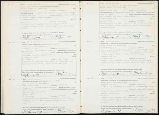 No. 267 negentienhonderd zevenenzestig) Heden dertig ad verscheen voor mij, ambtenaar van de burgerlijke stand van Amsterdam: Meijer, Gerrit Jan, aanspreker, oud zevenenvijftig jaar, wonende te Amsterdam, die verklaarde, dat op negenentwintig augustus negentienhonderd zevenenzestig te twaalf uur, tien minuten, in de gemeente Amsterdam is overleden Binnerts, Dieuwke, zonder beroep, oud geboren zevenentachtig jaar, te Sneek, wonende te Amsterdam, echtgenote van: Harmsen, Willem Hendrik, dochter van: Binnerts, Jochem en van: van der Ploeg, Jitske, beiden over- leden. De aangever verklaarde uit eigen wetenschap van het overlijden kennis te dragen. Waarvan akte, welke overeenkomstig de wet is voorgelezen. 1.0 Smeezen No. 270 Heden dertig augustus negentienhonderd zevenenzestig verscheen voor mij, ambtenaar van de burgerlijke stand van Amsterdam: Meijer, Gerrit Jan, aanspreker, oud zevenenvijftig jaar, wonende te Amsterdam, die verklaarde, dat op negenentwintig augustus negentienhonderd zevenenzestig te acht uur, dertig minuten, in de gemeente Amsterdam is overleden: van Klaveren, Anna Louisa, zonder beroep, oud geboren vijfenzeventig jaar, te Amsterdam, wonende te Amsterdam, gehuwd geweest met: Kuijper, George Hendrikus Abraham, dochter van: van Klaveren, Jan Jacob en van: Schuijt, Anna Louisa, beiden overleden. De aangever verklaarde uit eigen wetenschap van het overlijden kennis te dragen. Waarvan akte, Welke overeenkomstig de wet is voorgelezen. tuug meeseli No. 268 Heden dertig augustus negentienhonderd zevenenzestig verscheen voor mij, ambtenaar van de burgerlijke stand van Amsterdam: Meijer, Gerrit Jan, aanspreker, oud zevenenvijftig jaar, wonende te Amsterdam, die verklaarde, dat op negenentwintig augustus negentienhonderd zevenenzestig te vier uur, nul minuten, in de gemeente Amsterdam is overleden: Boekhoff, Pieter Bernardus, brandwacht, oud vierenvijftig jaar, geboren wonende te Amsterdam, te Amsterdam, echtgenoot van: Schouten, Anna, zoon van: Boekhoff, Pieter Bernardus en van: van Tol, Gonda, beiden overleden. De aangever verklaarde uit eigen wetenschap van het overlijden kennis te dragen. Waarvan akte, welke overeenkomstig de wet is voorgelezen. M Anessen No. 271 Heden dertig augustus negentienhonderd zevenenzestig verscheen voor mij, ambtenaar van de burgerlijke stand van Amsterdam: Meijer, Gerrit Jan, aanspreker, oud zevenenvijftig jaar, wonende te Amsterdam, die verklaarde, dat op negenentwintig augustus negentienhonderd zevenenzestig te dertien uur, vijftien minuten, in de gemeente Amsterdam is overleden: van Meeteren, Johannes Christiaan, zonder beroep, oud negenenzestig jaar, geboren te Amersfoort, wonende te Amsterdam, echtgenoot van: Katgerman, Antje, zoon van: van Meeteren, Johannes en van: Massa, Geertruida Catharina, beiden overle- den. De aangever verklaarde uit eigen wetenschap van het overlijden kennis te dragen. Waarvan akte, welke overeenkomstig de wet is voorgelezen 6u. 8 Jreyjet No. 269 Heden dertig augustus negentienhonderd zevenenzestig verscheen voor mij, ambtenaar van de burgerlijke stand van Amsterdam: Meijer, Gerrit Jan, aanspreker, oud zevenenvijftig jaar, wonende te Amsterdam, die verklaarde, dat op negenentwintig augustus negentienhonderd zevenenzestig te vijftien uur, nul minuten, in de gemeente Amsterdam is overleden; Cup, Floris, zonder beroep, oud geboren tachtig jaar, te Amsterdam, wonende te Amsterdam, gehuwd geweest met: Biginski, Catharina, zoon van: Cup, Godefridus en van: Geel, Geertruida Cornelia, beiden overle- den. De aangever verklaarde uit eigen wetenschap van het overlijden kennis te dragen. Maaden alie, welke oveleenkomerig de wetle voorgeleten. Duu Smreigeces No. 272 Heden dertig augustus negentienhonderd zevenenzestig verscheen voor mij, ambtenaar van de burgerlijke stand van Amsterdam: Meijer, Gerrit Jan, aanspreker, oud zevenenvijftig jaar, wonende te Amsterdam, die verklaarde, dat op negenentwintig augustus negentienhonderd zevenenzestig t elI uur, nul minuten, in de gemeente Amsterdam is overleden Moonen, Cornelius Hubert Joseph, zonder beroep, oud geboren. negenenzeventig jaar, te Duren, wonende te Apeldoorn, echtgenoot van: Herminghausen, Bertha Maria, zoon van: Moonen, Hubert Joseph en van: Vijgen, Maria Margaretha, beiden overleden. De aangever verklaarde uit eigen wetenschap van het overlijden kennis te dragen. Waarvan akte, welke overeenkomstig de wet is voorgelezen. C uu trgie