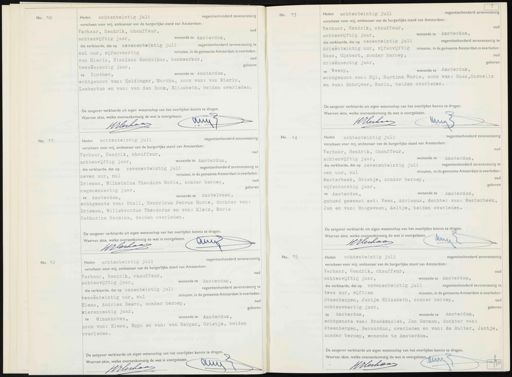 No. 10 Heden achtentwintig juli negentienhonderd zevenenzestig verscheen voor mij, ambtenaar van de burgerlijke stand van Amsterdam: Verhaar, Hendrik, chauffeur, oud achtenvijftig jaar, wonende te Amsterdam, die verklaarde, dat op zevenentwintig juli negentienhonderd zevenenzestig te nul uur, vijfenveertig minuten, in de gemeente Amsterdam is overleden: van Mierlo, Nicolaas Hendrikus, bankwerker, oud geboren tweeënzestig jaar, te Dinther, wonende te Amsterdam, echtgenoot van: Haidinger, Martha, zoon van: van Mierlo, Lambertus en van: van den Boom, Elisabeth, beiden overleden. De aangever verklaarde uit eigen wetenschap van het overlijden kennis te dragen. Waarvan akte, welke overeenkomstig de wet is voorgelezen. aug WHlerhaar No. 93 Heden achtentwintig juli negentienhonderd zevenenzestig verscheen voor mij, ambtenaar van de burgerlijke stand van Amsterdam: Verhaar, Hendrik, chauffeur, achtenvijftig jaar, wonende te Amsterdam, die verklaarde, dat op zesentwintig juli negentienhonderd zevenenzestig te drieëntwintig uur, vijfenvijftig minuten, in de gemeente Amsterdam is overleden: Haas, Gijsbert, zonder beroep, oud geboren drieenzestig jaar, wonende te Amsterdam, te Weesp, echtgenoot van: Pijl, Martina Maria, zoon van: Haas, Cornelis en van: Schrijver, Maria, beiden overleden. De aangever verklaarde uit eigen wetenschap van het overlijden kennis te dragen. Waarvan akte, welke overeenkomstig de wet is voorgelezen. Aug WVerhaan No. 11 Heden achtentwintig juli negentienhonderd zevenenzestig verscheen voor mij, ambtenaar van de burgerlijke stand van Amsterdam: Verhaar, Hendrik, chauffeur, oud achtenvijftig jaar, wonende te Amsterdam, die verklaarde, dat op zevenentwintig juli negentienhonderd zevenenzestig te zeven uur, nul minuten, in de gemeente Amsterdam is overleden: Drieman, Wilhelmina Theodora Maria, zonder beroep, oud negenenzestig jaar, geboren te Amsterdam, wonende te Amstelveen, echtgenote van: Stall, Hendricus Petrus Marie, dochter van: Drieman, Willebrordus Theodorus en van: Klein, Maria Catharina Hermina, beiden overleden. De aangever verklaarde uit eigen wetenschap van het overlijden kennis te dragen. Waarvan akte, welke overeenkomstig de wet is voorgelezen. Aug Wilerhaa No. 14 Heden achtentwintig juli negentienhonderd zevenenzestig verscheen voor mij, ambtenaar van de burgerlijke stand van Amsterdam: Verhaar, Hendrik, chauffeur, 000 achtenvijftig jaar, wonende te Amsterdam, die verklaarde, dat op zevenentwintig juli negentienhonderd zevenenzestig te een uur, nul minuten, in de gemeente Amsterdam is overleden: Westerbeek, Grietje, zonder beroep, oud geboren vijfentachtig jaar, wonende te Amsterdam, te Amsterdam, gehuwd geweest met: Veen, Adrianus, dochter van: Westerbeek, Jan en van: Hoogeveen, Aaltje, beiden overleden. De aangever verklaarde uit eigen wetenschap van het overlijden kennis te dragen. Waarvan akte, welke overeenkomstig de wet is voorgelezen Jui HHerhaa No. 12 Heden achtentwintig juli negentienhonderd zevenenzestig; verscheen voor mij, ambtenaar van de burgerlijke stand van Amsterdam: Verhaar, Hendrik, chauffeur, oud achtenvijftig jaar, wonende te Amsterdam, die verklaarde, dat op zesentwintig juli negentienhonderd zevenenzestig te tweeëntwintig uur, nul minuten, in de gemeente Amsterdam is overleden, Elema, Andries Heero, zonder beroep, oud geboren vierenzestig jaar, te Winschoten, wonende te Amsterdam, zoon van: Elema, Eggo en van: van Bergen, Grietje, beiden overleden. De aangever verklaarde uit eigen wetenschap van het overlijden kennis te dragen. Waarvan akte, welke overeenkomstig de wet is voorgelezen. Uuv WElerhaan No. 15 Heden achtentwintig juli negentienhonderd zevenenzestig verscheen voor mij, ambtenaar van de burgerlijke stand van Amsterdam: Verhaar, Hendrik, chauffeur, oud achtenvijftig jaar, wonende te Amsterdam, die verklaarde, dat op zevenentwintig juli negentienhonderd zevenenzestig te twee uur, vijftien minuten, in de gemeente Amsterdam is overleden: Steenbergen, Jantje Elisabeth, zonder beroep, oud achtenveertig jaar, geboren te Amsterdam, wonende te Amsterdam, echtgenote van: Braakensiek, Jan Herman, dochter van: Steenbergen, Bernardus, overleden en van: de Ruiter, Jantje, zonder beroep, wonende te Amsterdam. De aangever verklaarde uit eigen wetenschap van het overlijden kennis te dragen. Waarvan akte, welke overeenkomstig de wet is voorgelezenA WHerhaan
