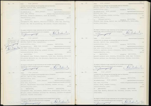 No. 46 Heden Vier januari negentienhonderd zevenenzestig verscheen voor mij, ambtenaar van de burgerlijke stand van Amsterdam: Meijer, Gerrit Jan, aanspreker, oud zesenvijftig jaar, wonende te Amsterdam, die verklaarde, dat op drie Januari negentienhonderd zevenenzestig te acht uur, dertig minuten, in de gemeente Amsterdam is overleden: Meering, Cornelis Hermanus, chef de bureau, oud tweeënzestig jaar, geboren te Vtrecht, wonende te Amsterdam, echtgenoot van: Smeets, Petronella Maria, zoon van: Meering, Florus en: van Kuijlenborg, Willemina, beiden overleden. De aangever verklaarde uit eigen wetenschap van het overlijden kennis te dragen. Waarvan akte, welke overeenkomstig de wet is voorgelezen. A. Zuider Inreyerg No. 49 Heden Vier januari negentienhonderd zevene verscheen voor mij, ambtenaar van de burgerlijke stand van Amsterdam: Ou Meijer, Gerrit Jan, aanspreker, zesenvijftig jaar, wonende te Amsterdam, die verklaarde, dat op drie Januari negentienhonderd zevenenzestig t dertien uur, nul minuten, in de gemeente Amsterdam is overleden Worm, Elisabeth, zonder beroep, 0ud geboren tachtig jaar, te Nieuwer-Amstel, wonende te Amsterdam, dochter van: Worm, Gerrit en: van Zadelhoff, Hendrikka, beiden overleden. De aangever verklaarde uit eigen wetenschap van het overlijden kennis te dragen. Waarvan akte, welke overeenkomstig de wet is voorgelezen. ALuiden /merseee No. Goedgekeurd de doorhaling van een woord:1 C A Luider Heden Vier januari negentienhonderd zevenenzestig verscheen voor mij, ambtenaar van de burgerlijke stand van Amsterdam: Meijer, Gerrit Jan, aanspreker, oud zesenvijftig jaar, wonende te Amsterdam, die verklaarde, dat op dPie twee januari negentienhonderd zevenenzestig te Jelf uur, vijfenveertig minuten, in de gemeente Amsterdam is overleden Deneken, Leonard Wilhelm, zonder beroep, oud zevenenzeventig jaar, geboren te Amsterdam, wonende te Amsterdam, echtgenoot van: Veraar, Jannetje, zoon van: Deneken, Heinrich Friedrich Wilhelm en: van Koesant, Magdalena Anna Martha, beiden overleden. De aangever verklaarde uit eigen wetenschap van het overlijden kennis tedragen. Waarvan akte, welke overeenkomstig de wet is voorgelezen. A. Luiden Creepter No. 50 Heden Vier januari negentienhonderd zevenenzestig verscheen voor mij, ambtenaar van de burgerlijke stand van Amsterdam: Meijer, Gerrit Jan, aanspreker, oud zesenvijftig jaar, wonende te Amsterdam, die verklaarde, dat op drie januari negentienhonderd zevenenzestig t een uur, vijfenveertig minuten, in de gemeente Amsterdam is overleden Vittali, Antonio Pietro Johannes, zonder beroep, oud negenentachtig jaar, geboren te Amsterdam, wonende te Amsterdam, gehuwd geweest met: Stubbe, Elisabeth, zoon van: Vittali, Pieter Antonio en: Weerman, Christina, beiden overleden. De aangever verklaarde uit eigen wetenschap van het overlijden kennis te dragen. Waarvan akte, welke overeenkomstig de wet is voorgelezen. AZuiden Imeysey No. 48 Heden Vier januari negentienhonderd zevenenzestig verscheen voor mij, ambtenaar van de burgerlijke stand van Amsterdam: Meijer, Gerrit Jan, aanspreker, ou zesenvijftig jaar, wonende te Amsterdam, die verklaarde, dat op drie januari negentienhonderd zevenenzestig te drie uur, vijftien minuten, in de gemeente Amsterdam is overleden Meijer, Wilhelmina Christina Johanna, zonder beroep, oud geboren zevenenvijftig jaar, te Amsterdam, wonende te Amsterdam, echtgenote van: Sallehart, Franciscus Hendrikus, dochter van Meijer, Simon Johannes Jacobus en: Webbers, Johanna Elisabeth Jantina, beiden overleden. De aangever verklaarde uit eigen wetenschap van het overlijden kennis te dragen. Waarvan akte, welke overeenkomstig de wet is voorgelezen. A. Zuiden Spueyer No. 51 Heden Vier januari negentienhonderd zevenenzestig verscheen voor mij, ambtenaar van de burgerlijke stand van Amsterdam: Meijer, Gerrit Jan, aanspreker, zesenvijftig jaar, wonende te Amsterdam, die verklaarde, dat op drie Januarl negentienhonderd zevenenzestig t nul uur, vijftien minuten, in de gemeente Amsterdam is overleden Kikke, Dirk, zonder beroep, oud geboren achtenzeventig jaar, te Amsterdam, wonende te Amsterdam, zoon van: Kikke, Hendrik en: Voerman, Louisa, beiden overleden. De aangever verklaarde uit eigen wetenschap van het overlijden kennis te dragen. Waarvan akte, welke overeenkomstig de wet is voorgelezen. A. Zuiden Jegi