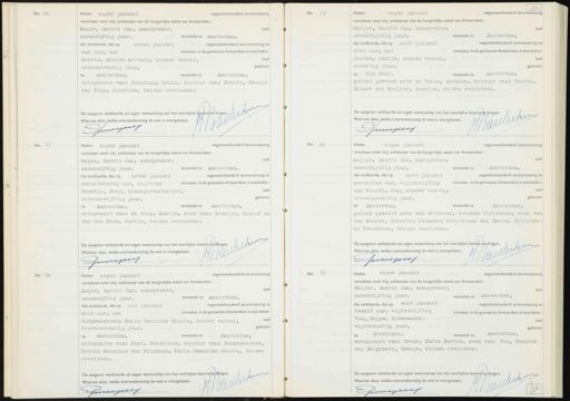 Meijer, Gerrit Jan, aanspreker, zesenvijftig jaar, wonende te Amsterdam, die verklaarde, dat op acht januari negentienhonderd zevenenzestig t vier uur, nul minuten, in de gemeente Amsterdam is overleden 0ud Postma, Jantje, zonder beroep, geboren zeventig jaar, te Ten Boer, wonende te Amsterdam, gehuwd geweest met: de Vries, Abraham, dochter van: Postma, Eibert en: Meelker, Geertje, beiden overleden. De aangever verklaarde uit eigen wetenschap van het overlijden kennig te dragen. Hoameekee Waarvan akte, welke overeenkomstig de wet is voorgelezen. Senje4 No. 77 Heden negen januari negentienhonderd zevenenzestig verscheen voor mij, ambtenaar van de burgerlijke stand van Amsterdam: Meijer, Gerrit Jan, aanspreker, oud zesenvijftig jaar, wonende te Amsterdam, die verklaarde, dat op zeven januari negentienhonderd zevenenzestig te eenentwintig uur, vijftien minuten, in de gemeente Amsterdam is overleden: Boontje, Roel, transportarbeider, oud geboren zevenenvijftig jaar, wonende te Amsterdam, te Amsterdam, echtgenoot van: de Hoop, Auktje, zoon van: Boontje, Roelof en van der Meer, Jantje, beiden overleden. deeko De aangever verklaarde uit eigen wetenschap van het overlijden kenhiste dagen. Waarvan akte, welke overeenkomstig de wet is voorgelezen. Gmmeeseens No. 80 Heden negen januari negentienhonderd zevenenzestig verscheen voor mij, ambtenaar van de burgerlijke stand van Amsterdam: Meijer, Gerrit Jan, aanspreker, oud zesenvijftig jaar, wonende te Amsterdam, die verklaarde, dat op acht januari negentienhonderd zevenenzestig te zeventien uur, vijfenvijftig minuten, in de gemeente Amsterdam is overleden: 0ud van Waardt, Jan, zonder beroep, geboren vierenzeventig jaar, te Amsterdam, wonende te Amsterdam, gehuwd geweest met: van Schouten, Johanna Christina, zoon van van Waardt, Cornelis Johannes Christiaan en: Emous, Wilhelmi- na Frederika, beiden overleden. De aangever verklaarde uit eigen wetenschap van het overlijden kennis te dragen. J deek Waarvan akte, welke overeenkomstig de wet is voorgelezen. Oringies No. 78 Heden negen januari negentienhonderd zevenenzestig verscheen voor mij, ambtenaar van de burgerlijke stand van Amsterdam: Meijer, Gerrit Jan, aanspreker, oud zesenvijftig jaar, wonende te Amsterdam, die verklaarde, dat op zes januari negentienhonderd zevenenzestig te acht uur, een minuten, in de gemeente Amsterdam is overleden: Burgemeester, Maria Hendrika Sophia, zonder beroep, oud geboren. Ir vierenzeventig jaar, te Amsterdam, wonende te Amsterdam, echtgenote van: Post, Hendricus, dochter van: Burgemeester, Petrus Gerardus en: Brinkman, Maria Hendrika Sophia, beiden overleden. De aangever verklaarde uit eigen wetenschap van het overlijden kennisteda Waarvan akte, welke overeenkomstig de wet is voorgelezen. Gmressices No. 81 Heden negen januari negentienhonderd zevenenzestig verscheen voor mij, ambtenaar van de burgerlijke stand van Amsterdam: Meijer, Gerrit Jan, aanspreker, oud zesenvijftig jaar, wonende te Amsterdam, die verklaarde, dat op acht januari negentienhonderd zevenenzestig t twaalf uur, vijfenvijftig minuten, in de gemeente Amsterdam is overleden Vos, Poppe, kleermaker, oud vijfenzestig jaar, geboren te Groningen, wonende te Amsterdam, echtgenoot van: Gross, Maria Martha, zoon van: Vos, Hendrik en: Belgraver, Geesje, beiden overleden. De aangever verklaarde uit eigen wetenschap van het overlijden kennig te dragen. De ech Waarvan akte, welke overeenkomstig de wet is voorgelezen. Gnagi