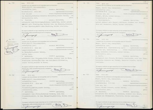 No. 190 Heden drie mei negentienhonderd zevenenzestig verscheen voor mij, ambtenaar van de burgerlijke stand van Amsterdam: 008 Meijer, Gerrit Jan,aanspreker, zesenvijftig jaar, wonende te Amsterdam, die verklaarde, dat op drie mei negentienhonderd zevenenzestig te vier uur,nul minuten, in de gemeente Amsterdam is overleden: van Deursen, Catharina Cornelia Bernardina,zonder beroep, oud vijfenzeventig jaar, geboren wonende te Amsterdam, te Haarlem, echtgenote van? Kerklingh, Hermanus Lambertus, eerder gehuwd geweest: met: Trautig, Jan, dochter van: van Deursen, Johannes, en van: Bijnsdorp,Maria Anna Hendrina, beiden overleden. De aangever verklaarde uit eigen wetenschap van het overlijden kennis te dragen. Waarvan akte, welke overeenkomstig de wet is voorgelezen. M1y Cpreijeej No. 193 Heden acht mei negentienhonderd zevenenzestig verscheen voor mij, ambtenaar van de burgerlijke stand van Amsterdam: 008 Meijer, Gerrit Jan, aanspreker, zesenvijftig jaar, wonende te Amsterdam, die verklaarde, dat op vier mei negentienhonderd zevenenzestig t dertien uur, nul minuten, in de gemeente Amsterdam is overleden Winkel, Antje, zonder beroep, oud vierentachtig jaar, geboren te Barsingerhorn, wonende te Amsterdam, gehuwd geweest met: Keppel, Adrianus, dochter van: Winkel, Arie en: Boonacker, Natje, beiden overleden. De aangever verklaarde uit eigen wetenschap van het overlijden kennis te dragen. Waarvan akte, welke overeenkomstig de wet is voorgelezen. dun Ineyey Vo. 191 No overleden- Renvooi goed- gekeurd. Crrnssies PD negentienhonderd zevenenzestig Heden drie mei verscheen voor mij, ambtenaar van de burgerlijke stand van Amsterdam: 008 Meijer, Gerrit Jan,aanspreker, zesenvijftig jaar, wonende te Amsterdam, die verklaarde, dat op twee mei negentienhonderd zevenenzestig te negentienuur,nul minuten, in de gemeente Amsterdam is overleden: de Warm, Maria,zonder beroep, oud vijftig jaar, geboren te Amsterdam, wonende te Amsterdam, echtgenote van: Steensma,felke Frans, dochter van: de Warm, Franciscus, Jacobus,,en van: van: Gent,Maria Pitronella, zonder beroep,wonende te Baarn. De aangever verklaarde uit eigen wetenschap van het overlijden kennis te dragen. Waaranakte, weke overeenkomsig de welk voorgeleten tuu Irreyee No. 194 Heden acht mei negentienhonderd zevenenz. verscheen voor mij, ambtenaar van de burgerlijke stand van Amsterdam: Meijer, Gerrit Jan, aanspreker, oud zesenvijftig jaar, wonende te Amsterdam, die verklaarde, dat op negenentwintig april negentienhonderd zevenenzestig t zestien uur, vijfenveertig minuten, in de gemeente Amsterdam is overleden Rupp, Leonardus Johannes, zonder beroep, oud vijfentachtig jaar, geboren wonende te Amsterdam, te Delft, echtgenoot van: Troost, Willemina Geertruida, zoon van: Rupp, Leonardus Johannes en: Verweij, Hendrica Johanna, beiden overleden. De aangever verklaarde uit eigen wetenschap van het overlijden kennis te dragen. Waarvan akte, welke overeenkomstig de wet is voorgelezen. duy Gneyie No. 192. negentienhonderd zevenenzestig Heden drie mei verscheen voor mij, ambtenaar van de burgerlijke stand van Amsterdam: oud Meijjer, Gerrit Jan,aanspreker, zesenvijftig jaar, wonende te Amsterdam, die verklaarde, dat op drie mei negentienhonderd zevenenzestig te minuten, in de gemeente Amsterdam is overleden: acht uur, nul Vlaanderen, Andries,zonder beroep, o0d geboren achtenzestig Jaar,, wonende te Ansterdam, te Amsterdam, echtgenoot van: Piels, Catharina Hermina, zoon van: Vlaanderen, Karel, en van: Zwaagstra,Andersien, beiden over- leden. De aangever verklaarde uit eigen wetenschap van het overlijden kennis te dragen. Waarvan akte, welke overeenkomstig de wet is voorgelezen. Uuu Smining No. 195 Heden acht mei negentienhonderd zevene verscheen voor mij, ambtenaar van de burgerlijke stand van Amsterdam: Meijer, Gerrit Jan, aanspreker, oud zesenvijftig jaar, wonende te Amsterdam, die verklaarde, dat op drie mei negentienhonderd zevenenzestig te tien uur, nul minuten, in de gemeente Amsterdam is overleden: Brost, Helena Johanna, zonder beroep, oud vijfentachtig jaar, geboren wonende te Amsterdam, te Duisburg, echtgenote van: de Wolff, Johannes, dochter van: Brost, - Hermann en: Winkemeier, Charlotte, beiden overleden. De aangever verklaarde uit eigen wetenschap van het overlijden kennis te dragen. Waarvan akte, welke overeenkomstig de wet is voorgelezen. G11. Imeepey