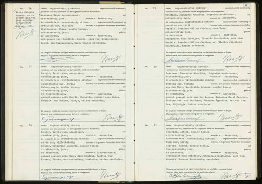 No. 76 Waas, Salomor Renvooi en de doorhaling van twee woorden goedgekeurd. Laaene Baof Heden negenentwintig oktober negentienhonderd tweeënzestig verscheen voor mij, ambtenaar van de burgerlijke stand van Amsterdam: Satomon;-Waas, incasseerder, oud drieenzestig jaar, wonende te Amsterdam, die verklaarde, dat op zesentwintig oktober negentienhonderd tweeënzestig te zeventien uur, vijftien minuten, in de gemeente Amsterdam is overleden Italiaander, Simon, zonder beroep, ou achtenzeventig jaar, geboren te Amsterdam, wonende te Amsterdam, echtgenoot van: Roodfeld, Roosje, zoon van: Italiaander, Jacob, eh: Nassanowicz, Sara, beiden overleden. De aangever verklaarde uit eigen wetenschap van het overlijden kennis te dragen. Waarvan akte, welke overeenkomstig de wet is voorgelezen. Lauuwe Baant No. 79 14 Heden negenentwintig oktober negentienhonderd tweeënzestig verscheen voor mij, ambtenaar van de burgerlijke stand van Amsterdam: Geestman, Bernardus Arnoldus, begrafenisondernemer, oud achtendertig jaar, wonende te Amsterdam, die verklaarde, dat op achtentwintig oktober negentienhonderd tweeënzestig te veertien uur, vijf minuten, in de gemeente Amsterdam is overleden: Wendels, Leendert Willem Jacobus, chauffeur, oud drieënvijftig jaar, geboren te Amsterdam, wonende te Amsterdam, echtgenoot van: Draaijer, Cornelia Geertruida, zoon van: Wendels, Leendert Willem Jacobus, en: Wiertz, Josephine Geertruida, beiden overleden. De aangever verklaarde uit eigen wetenschap van het overlijden kennis te dragen. Waarvan akte, welke overeenkomstig de wet is voorgelezen. Baand en tn No. 77 Heden negenentwintig oktober negentienhonderd tweeënzestig verscheen voor mij, ambtenaar van de burgerlijke stand van Amsterdam: Meijer, Gerrit Jan, aanspreker, oud tweeënvijftig jaar, wonende te Amsterdam, die verklaarde, dat op vijfentwintig oktober negentienhonderd tweeënzestig te eenentwintig uur, dertig minuten, in de gemeente Amsterdam is overleden: Kabos, Aagje, zonder beroep, oud vierentachtig jaar, geboren te Hellevoetsluis, wonende te Amsterdam, gehuwd geweest met: Mourik, Cornelis, dochter van: Kabos, Hendrik, en: Hokken, Dirkje, beiden overleden. De aangever verklaarde uit eigen wetenschap van het overlijden kennis te dragen. Waarvan akte, welke overeenkomstig de wet is voorgelezen. Brantg Gerregisig No. 80 Heden negenentwintig oktober negentienhonderd tweeënzestig verscheen voor mij, ambtenaar van de burgerlijke stand van Amsterdam: Geestman, Bernardus Arnoldus, begrafenisondernemer, oud achtendertig jaar, wonende te Amsterdam, die verklaarde, dat op vijfentwintig oktober negentienhonderd tweeënzestig te twintig uur, twintig minuten, in de gemeente Amsterdam is overleden: van der Meer, Geertruida Johanna, zonder beroep, oud geboren achtenzeventig jaar, te Groningen, wonende te Amsterdam, gehuwd geweest met: van der Wansem, Johannes Carel Jacobus, dochter van: van der Meer, Johannes Ignatius, en: van der Zee, Sijbrigje, beiden overleden. De aangever verklaarde uit eigen wetenschap van het overlijden kennis te dragen. Waarvan akte, welke overeenkomstig de wet is voorgelezen. Baantjs Javes tmns No. 78 Heden negenentwintig oktober negentienhonderd tweeënzestig verscheen voor mij, ambtenaar van de burgerlijke stand van Amsterdam: Meijer, Gerrit Jan, aanspreker, oud tweeënvijftig jaar, wonende te Amsterdam, die verklaarde, dat op zesentwintig oktober negentienhonderd tweeënzestig te zeven uur, vijfentwintig minuten, in de gemeente Amsterdam is overleden: Kramer, Catharina Lamberta, zonder beroep, oud drieëntachtig jaar, geboren wonende te Nieuwer-Amstel, te Amsterdam, gehuwd geweest met: Haar, Rijk Hendrik, dochter van: Kramer, Pieter, en: Achterberg, Lamberta, beiden overleden. De aangever verklaarde uit eigen wetenschap van het overlijden kennis te dragen. Waarvan akte, welke overeenkomstig de wet is voorgelezen. Baante Omogeri No. 81 Heden negenentwintig oktober negentienhonderd tweeënzestig verscheen voor mij, ambtenaar van de burgerlijke stand van Amsterdam: Stolwijk, Antoon, zonder beroep, oud vijfentachtig jaar, wonende te Amsterdam, die verklaarde, dat op zesentwintig oktober negentienhonderd tweeënzestig te tien uur, dertig minuten, in de gemeente Amsterdam is overleden: Schoofs, Barend, zonder beroep, oud tweeënzeventig jaar, geboren te Amsterdam, wonende te Amsterdam, echtgenoot van: Scheffer, Petronella Magdalena, zoon van: Schoofs, Johanna Geertruida, overleden. De aangever verklaarde uit eigen wetenschap van het overlijden kennis te dragen. Waarvan akte, welke overeenkomstig de wet is voorgelezen. Vaartje A Holingk
