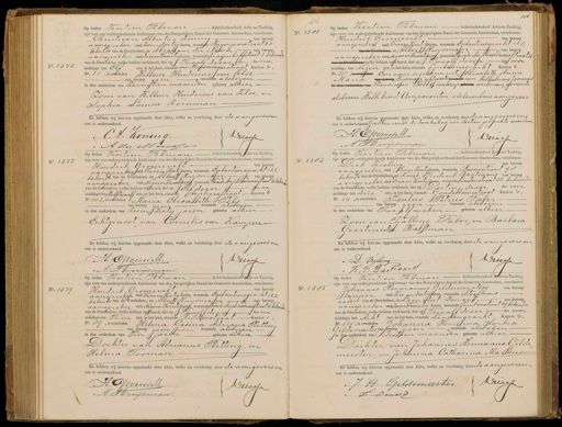 No. 1375 Op heden Veertien Februari Achttienhonderd Acht-en-Tachtig, zijn voor ons ondergeteekende Ambtenaar van den Burgerlijken Stand der Gemeente Amsterdam, verschenen: Christiaan Albertus Koning van beroep aanspreker oud zesen dertig Jaren, wonende Bagenaarstraat 60 bekende van de Overledene, en Abraaam du Mesch van beroep, aanspreker oud drieen Twintig Jaren, wonende Kraijenhoffstraat 1 bekende van de Overledene, welke hebben verklaard, dat op Twaalf dezer des na middags ten Elf ure, in het huis, staande van Rouweningenstraat Kanton 4, No. 21, is overleden Willem Hendricus van Velse -van beroep geen wonende als boven in den ouderdom van Zeventien maanden geboren alhier zoon van Willem Hendricus van Velse, en Sophia Louisa Kornman En hebben wij hiervan opgemaakt deze Akte, welke na voorlezing door de aangeversen ons is onderteekend. C. A. Koning. Driessen A du Mosch No. 1381 116 Op heden Veertien Februari Achttienhonderd Acht-en-Tachtig, zijn voor ons ondergeteekende Ambtenaar van den Burgerlijken Stand der Gemeente Amsterdam, verschenen: Hendrik Groenevelt van beroep aanspreker oud Twee en Veertig Jaren, wonende Egelantiersgracht 122 van de Overledene, en Alber Huysman van beroep aanshreker oud Negen en TwintigJaren, wonendeweede Anjeliers Swarsstraat 16 van de overledeng welke hebben verklaard, dat op Twaalf dezer des voor middags ten Negen ure, in het huis, staande Lijnbaansgracht Kanton 4 No. 38, sevenden Een zoon is geboren uit, Elisabeth Anna Maria van beroep Wysman echtgenoote wonende van Wilhelmus Joannes in den orderm en Fanciscus Bolke van beroep eeeren werkman, wonende als boven Belk kind Comparanten als levenloos aangeven En hebben wij hiervan opgemaakt deze Akte, welke na voorlezing door de aangevers en ons is onderteekend Goedkeurende de doorhaling van zestien gedrukte woorden H. Groenedelt Driecsn A Huijsman No. 1377 Op heden Veertien Februari Achttienhonderd Acht-en-Tachtig, zijn voor ons ondergeteekende Ambtenaar van den Burgerlijken Stand der Gemeente Amsterdam, verschenen: Hendrik Groenevelt van beroep aanspreker oud Twee en Veertig Jaren, wonende Egelantiersgracht 122 bekend van de Overledene, en Aller Huysman van beroep aanspreker oud Negenen Twintig Jaren, wonende Tweede Anjeliusswarsstraat 16 bekend van de Overledene, welke hebben verklaard, dat op Eif dezer es na middags ten Half twaalf ure, in het huis, staande Anjeliersstraat Kanton 4 No. 102, is overleden Maria Elisabeth. van beroep geen wonende alsboven in den ouderdom van zes en zestig jaren geboren alhier Echtsenoot van Cornelis van Kampen En hebben wij hiervan opgemaakt deze Akte, welke na voorlezing door de aangevers en ons is onderteekend. H: Groenwilt Driessen A Huysman No. 1383 Op heden Veertien Februari Achttienhonderd Achten-Tachtig, zijn voor ons ondergeteekende Ambtenaar van den Burgerlijken Stand der Gemeente Amsterdam, verschenen: Dirk Rieling van beroep aanapzeker oud Eenen veertig Jaren, wonende Boomstraat 98 bekende van de Overledene, en Karel Frederik Bastiaans van beroep aanopieker oud Drie en Veertig Jaren, wonende Lindenstraat 32 bekende van de Overledene, welke hebben verklaard, dat op Dertien dezer des voor middags ten drie ure, in het huis, staande Goudsbloemstraat Kanton 4, No. 14, is overleden Paulus Petrus Paber van beroep geen wonende als boven in den ouderdom van Twaalf weken geboren alhier zoon van Fjalling Faber, en Barbard Geertruida Waltman En hebben wij hiervan opgemaakt deze Akte, welke na voorlezing door de aangevers en ons is onderteekend. Driessen D. Vrieling K.F. Bartiaans No. 1379 Op heden Veertien Februari Achttienhonderd Ocht en-Tachtig, zijn voor ons ondergeteekende Ambtenaar van den Burgerlijken Stand der Gemeente Amsterdam, verschenen: Hendrik Groenevelt van beroep aanspreker oud Twee en Veertig Jaren, wonende Egelantiersgracht 122 bekende van de Overledene, en Albert Huysman van beroep aanspraker oud Negen en Twintig Jaren, wonende Tweede Anjeliersswarsstraat 16 bekende van de Overledene, welke hebben verklaard, dat op Twaalf dezer des na middags ten Eiien ure, in het huis, staande Ridderstraat Kanton 1 No. 89, is overleden Helena Gesina Adriana Sletting van beroep geen wonende als boven in den ouderdom van vier jaren geboren alhier Dochter van Adrianus Pletting, en Helena Tooman En hebben wij hiervan opgemaakt deze Akte, welke na voorlezing door de aangeversen ons is onderteekend. H. Groenwelb Driesten A Huysman