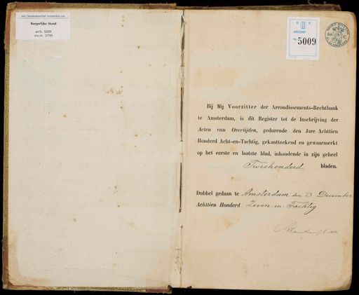 te Amsterdam, is dit Register tot de Inschrijving der: