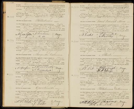 No. 2527 Op heden Drieentwintig Februari Achttienhonderd Een-en-Negentig is voor ons ondergeteekende Ambtenaar van den Burgerlijken Stand der Gemeente Amsterdam, verschenen: Mechier Gijsber van Gelder- van beroep Onderwizer oud eenendertig Jaren, wonende Nassaukade No. 328, welke heeft verklaard dat op Heden des voormiddags ten Een ure, in het huis, staande Als boven is, geboren een Kind van het Vriumlijk geslacht, uit Lamberta Niedenho¬ van beroep geen wonende als boven, zijne Achtghlert welk Kind zal genaamd worden Wilhelmina van welke Verklaring wij deze Akte hebben opgemaakt in tegenwoordigheid van Engbert roieboom van beroep Werkman oud Tweeenviftig Jaren, wonende van Beuningenstraat 30 en vanRink Vis van beroep werkman oud zevenenzestig Jaren, wonende Maagdelievenstraat en is deze Akte door ofs, benevens Ten vadern de Getuigen, na voorlezing onderteekend. MG. van Gelder 2 a Kozeboom Dreessen R V No 2533 t1 Op heden Drieen twintig Februari Achttienhonderd Eer-en-Negentig, is voor ons onergeteekende Ambtenaar van den Burgerlijken Stand der Gemeente Amsterdam verschenen: Petrus Joannes Theodorus Krisiel van beroep MMetzelaar oud zesentwintig Jaren, wonende Nieuwe Lelie straat No. 86, welke heeft verklaard da op Twintig dezer des na middags ten Twee ure, in het huis, staande Wals boven is geboren een Kind van het Mannelijk geslacht, uit Anna Wilhelmina Maria Timmer van beroep gee wonende als boven zijne Echtgenoot welk Kind zal getaamd worden Karel Lodewijk Maria van welke Verklaring wij deze Akte hebben opgemaakt in tegenwoordigheid van Petrus Kristel van beroep Metselaar oud negenen Veertig Jaren wonende als de Ouders 45 en van Kornelis Wedding van beroep werkman oud Tweeendertig Jaren. wonende Oude Looders-traat 96 en is deze Akte door ons, benevens Den Verdirg de Getuigen, aa voorleding onderteekend. 2 TKristel 1 P. Kristel Driessen 3 K Wedelin No. 2529 Op heden Drie entwintig Feebruari Achttienhonderd Een-en-Negentig is voor ons ondergeteekende Ambtenaar van den Burgerlijken Stand der Gemeente Amsterdam, verschenen Petrus Jacobus Goossens van beroep Kantoorbediende oud drieenveertig Jaren, wonende Kerkstraat No. 51, welke heeft verklaard dat op eenentwintig dezer des na middags ten leven ure, in het huis, staande Salsbooen is geboren een kind van het vumlijk geslacht, uit Joanna Geertruij van Gekeres van beroep geen wonende als boven; zijne Echtgenoot welk Kind zal genaamd worden Margaretha Catharina van welke Verklaring wij deze Akte hebben opgemaakt in tegenwoordigheid van Johannes Hendricus van Eekeres van beroep Kruur oud zevenenrestig Jaren, wonendeReizersgracht 1129 en van Antonie Brandenberth van beroep choenmaker oud drieenrestig Jaren wonende Kerelsgracht 427 en is deze Akte door ons, benevens Den Vaderen de Getuigen, na voorlezing onderteekend. „ P Hoossens. 2. J H Voorte Ndr Duec 3 A Bzandenbergh No. 2535 Op heden Drieentwintig Februari Achttienhonderd Eer-en-Negentig is voor ons ondergeteekende Ambtenaar van den Burgerlijken Stand der Gemeente Amsterdam, verschenen Benjamin Se van beroep Scheenstemmaman oud Eenenveertig Jaren, wonende Langebleekerspad No. 62, welke heeft verklaard dat op Tweeëntwintig dezer des voormiddags ten Veer ure, in het huis, staandePalfborm ins geboren een Kind van het Vrouwelijk geslacht, uit Hendrika Chrisina Loouewyk van beroep geen wonende als boven zijne Echtgenoot welk Kind zal genaamd worden Alberta van welke Verklaring wij deze Akte hebben opgemaakt in tegenwoordigheid van Douwe Hendricus Lodewijk van beroep Behanger oud Eenen Veertig Jaren, wonende Lindergracht 100 en van Hendricus Anton Eikmeijer van beroep Tapper oud Tachtig Jaren wonende Langebleekerspad 139 en is deze Akte door ons, benevens Den Vyedren de Getuigen na voorlezing onderteekend. I2. Oet. 2 D HLoodewyk Driessen H A Eikmeyer No 2531 Op heden Drieentwintig Februari Achttienhonderd Eevbn-Negentig is voor ons ondergeteekende Ambtenaar van den Burgerlijken Stand der Gemeente Amsterdam, verschenen: Abraham Bernardus Solak van beroep Strkadur oud zevenentin tiaren, wonende Loviersgracht No 15, welke heeft verklaard dat op Twintig dezer des voormiddags ten Een ure, in het huis, staande valpboven is geboren een Kind van het vruwelijk geslacht, uit Aatje Dina Nieuwenhoff. van beroep geen wonende als boven zijne Echtgenoot welk Kind zal genaamd worden Geertruida van welke Verklaring wij deze Akte hebben opgemaakt in tegenwoordigheid van Abraham Bernardus Bvlak van beroep Handelaar oud negenenVyftig Jaren wonende Ge Rorenstraat 86 en van Jacobus Velden van beroep Smid oud vierentwintig Jaren, wonende Lunstraat 18 en is deze Akte door ons, benevens Senvader en de Getuigen, na voorlezing onderteekend. H.P. Volak2 A D. Pgk Driessen 3 J Velder No 2537. Op heden Drie en twintig Februari Achttienhonderd Een-en-Negentig is voor ons ondergeteekende Ambtenaar van den Burgerlijken Stand der Gemeente Amsterdam verschenen van beroep Bediende oud drie endertig Jaren, wonende Aariaan Henricus Maria Engberink Eerste Bilderdijkstraat No. 85, welke heeft verklaard dat op Drie en twintig dezer des vinmiddags ten halfvijf ure, in het huis, staande als boven— is geboren een Kind van het vrumlijkgeslacht, uit Hagze Ren van beroep geen wonende als boven: zijne Echtgenoot welk Kind zal genaamd worden Wilhelmina Catharina van welke Verklaring wij deze Akte hebben opgemaakt in tegenwoordigheid van Johanne Heerders van beroep schoenmaker oud negenen dertig Jaren, wonende Lint Nicolaasstraat 46 en van Wesak Mol, van beroep schoermaker oun achten dertig Jaren, wonende Langeleidschedwarsstraat 129 en is deze Akte door ons, benevens Zen vaderen de Getuigen, na voorlezing onderteekend. A Hall Ender Jberderns Driessen 3 M. Abol