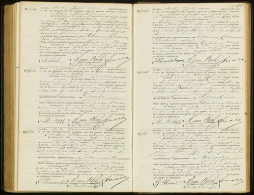 No. 9080 Op heden dertig Juli negentienhonderd een is voor ons Ambtenaar van den burgerlijken stand der gemeente Amsterdam, verschenen: Arie Mul van beroep segeant hofmeester oud vieren dertig jaren, wonende achtir, die ons heeft verklaard dat op negenen twintig dezer des voormiddags te zeven ure, in het huis derde Wettenburgendoarsstraat 44 in deze gemeente is geboren een kind van het vrouwelijk geslaaht, uit zijne echtgenoote Jacoba, Petronella Lammertsma zonder beroep wonende alhier aan welk kind word en gegeven de voornamen van Adriana Emerentia Christina— Welke verklaring is geschied in tegenwoordigheid van Hendrik van Beek van beroep ambtnaar oud Eeendertig jaren, wonende te onderamtel en van Pieterdam Dongen van beroep ambtraar oud veertig jaren, wonende alhier En is hiervan opgemaakt deze akte, die door ons, den aangedr en de getuigen, na voorlezing is onderteekend. 2 H. van Beek &male 1 A Mul 3 J. van Donge No 9086 158 1. Op heden dertig Juli negentienhonderd een is voor ons Ambtenaar van den burgerlijken stand der gemeente Amsterdam, verschenen Jan Fredrik Ernst van Galingen van beroep sinberbakher oud negenentwintg Jaren, wonende achier, die ons heeft verklaard dat op heden des voor middags ten negen ure, in het huis Tinnstraat 141 in deze gemeente is geboren een kind van het tranwelijkgeslacht, ut zijne echtgenoote Regina Elisabech Capelle zonder berrep wonende alhier aan welk kind worden gegeven de voornamen van Johanna Catharina Elisabeth Welke verklaring is geschied in tegenwoordigheid van HendirtonBeek van beroep ambtman oud Eenendertig jaren, wonende tiande amstel en van PiituanDonjer van beroep ambtnaar oud veertig jaren, wonende alhier En is hiervan opgemaakt deze akte, die door ons, den aangever en de getuigen, na voorlezing is onderteekend. W E van Talingen H. van Beek Jnce No 9082 Op heden Drtig Juli negentienhonderd een, is voor ons Ambtenaar van den burgerlijken stand der Gemeente Amsterdam, verschenen: Pieter Vff van beroep plactter oud vierendertig jaren, wonende alhur, die ons heeft verklaard dat op achtentwintig Juli laatstleden des voormiddags zeelve ure, in het huis Simterstraat 18 in deze gemeente is geboren een kind van het mannelijk geslacht, uit zijne echt enoote Sara Markis zonder beroep wonende alhier aan welk kindwordt gegeven de voornaam van Gouke Welke verklaring is geschied in tegenwoordigheid van Jendrik van Beek. van beroep ambtenaar oud Eesendertig jaren, wonende te auden amtil en van Pieteran Dongens van beroep cembtman oud veatig jaren, wonende alhier En is hiervan opgemaakt deze akte, die door ons, den aangever en de getuigen, na voorlezing is onderteekend. P: Uff 2 H van Beekmere 3 S Man Do No 9088 Op heden dertig Juli negentienhonderd een, is voor ons Ambtenaar van den burgerlijken stand der gemeente Amsterdam, verschenen: Marinus Oostsyk. van beroep werkman oud zevenentwintig jaren, wonende actiier, die ons heeft verklaard dat op heden des voor middags tertien ure, in het huis Blankenstraat j1 in deze gemeente is geboren een kind van het mannel& geslacht, uit zijn Sechtgenoote Satke Alberda zonder beroep koonende achier aan wekk kindword gegeven de voordam van Sjoerd Welke verklaring is geschied in tegenwoordigheid van Hendrik van Beek van beroep ambtaaar oud Eenendertig jaren, wonende te anderamstel en van Pieter aan Donger van beroep ambtaaar odd veertig jaren, wonende achier En is hiervan opgemaakt deze akte, die door onsden vangenis en de getuigen, na voorlezing is onderteekend. Ab. Oostdijk H van Beek muale J van Dorseen No 9084 Op heden dertig Juli negetienhonderd een, is voor ons Ambtenaar van den burgerlijken stand der gemeente Amsterdam, verschenen: Cornelis Ravensteijn. van beroep venter oud drieendertig jaren, wonende alhier, die ons heeft verklaard dat op achtentwintig dezer des nu middags ten Een ure, in het huis Bilderdijkkade 88 in deze gemeente is geboren een kind van het hannier geslacht, uit zijne echtenoote Arma Elisabeth van Soomeren zonder beroep wonende alhier aan welk kind worden gegeven de voornamen van Johannes Marinus Welke verklaring is geschied in tegenwoordigheid van Hendrik vanBeet van beroep ambtvaar oud eenendertig jaren, wonende te Onder amtel en van Siehdomd orjen van beroep anklmans oud veertig jaren, wonende alhier En is hiervan opgemaakt deze akte, de door ons, den aangener en de getuigen, na voorlezing is onderteekend. H. van Beek mil Havensseijn 3 P van Dingen No 9090 Op heden dertig Juli negentienhonderd een is voor ons Ambtenaar van den burgerlijken stand der gemeente Amsterdam, verschenen: Gysbertus Proom. van beroep sinberbukker oud vierendertig jaren, wonende advier, die ons heeft verklaard dat op negenentwintig dezer des na middags ten zeven ure, in het huis tweede Spaard ommerstraat jr deze gemeente is geboren een kind van het vrouwelijk geslacht, uit zijne echtenoote Hendrika Johanna Fanni zonder beroep wonende alhier aan welk kindwordt gegeven de voornaam van Annigtje Welke verklaring is geschied in tegenwoordigheid van Hendrik van Beek van beroep ombtman oud Eenendertig jaren, wonende teanderamstel en van Pictiram Dongen van beroep Ambtwaar oud veertig jaren, wonende actiien En is hiervan opgemaakt deze akte, die door ons den aangever en de getuigen, na voorlezing is onderteekend. H var Beek Jusce G Koom 3 vanInv