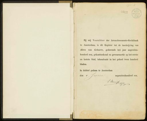 Stadsarchief Amsterdam, archieftoegang 5009, Archief van de Burgerlijke stand, inventarisnummer 4693, Geboorten, Akten, Registers van geboorteakten, 1901, deel 08