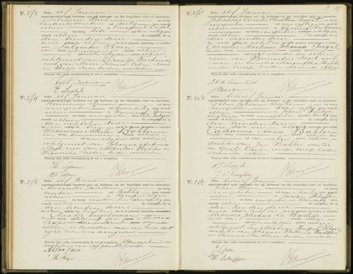 No. 272 Heden elf Januari, negentienhonderd negen verschenen voor mij Ambtenaar van den burgerlijken stand van Amsterdam Salomon Beekman, van beroe, kantoorbediende oud dertig jaren, wonende alhier en Emanuel Luder van beroep bode oud een enzestig jaren wonende alhier die verklaarden, dat op den tienden dezer des na middags ten elf ure in de gemeente Amsterdam is overleden Salomon Koen van beroep rifigslooper, wonende alhier oud acht en zestig jaren geboren alhier echtgenoot van Zwaantje Turksma, zoon van Moses Salomon Cohen Koen en Betje Kaas, beiden overleden. Waarvan akte, welke overeenkomstig de wet is voorgelezen. Dacht Deekman Ademijn E Lechl No. 278 Heden elf Januari negentienhonderd tegen verschenen voor mij Ambtenaar van den burgerlijken stand van Amsterdam, Johannes Cornelis Christiaan Reeouer, van beroep Taanspreker, oud zes en viftig jaren, wonende en Johannes Beekman, alhier, van beroep aansreker, oud negenendertig jaren wonende alhier, die verklaarden, dat op den negenden dezer, des na mindags ten acht ure in de gemeente Amsterdam is overleden Cornelis Martinus Johannes Siege zonder beroep,, wonende alhier — oud acht maanden, geboren alhier, zoon van Bernardus Siegel, werk„ „man en Cornelia Margaretha Hessels zonder beroep, beiden wonende alhier Waarvan akte, welke overeenkomstig de wet is voorgelezen. Jdomegve JVl beiers. JBeekman No. 274 Heden elf Januari negentienhonderd negen verschenen voor mij Ambtenaar van den burgerlijken stand van Amsterdam Hermanus Spaan, van beroep aanspieker, oud tweeendertig jaren, wonende alhier en Franciscus Spaan van beroep aanspreker, oud acht en dertig Jaren wonende alhier, de verklarnden, dat op den achtsten dezer; des voor middags ten ttien ure in de gemeente Amsterdam is overleden Feranciscus Albertus Bakker van beroep Stimmerman wonende alhier oud zeven en zestig jaren, geboren alhier echtgenoot van Johanna Antonia Strijk zoon van Albertus Bakker en Franziska Rieder, beiden overleden. Waarvan akte, welke overeenkomstig de wet is voorgelezen. H. Spaan. Adomyje F Spaa No. 280 Heden waalf Januari negentienhonderd negen verschenen voor mij Ambtenaar van den burgerlijken stand van Amsterdam Petrus Johannes Luiten, van beroep aanspreker, oud zeven en vijftig Jaren, wonende alhier, en Johan Saulus zugten.- van beroep aanspreker, oud vieren twintig jaren wonende alhier, die verklaarden, dat op den tienden dezer: desna middags ten vier ure in de gemeene Amsterdam is overleden Catharina Anna Bakker,- ,wonende alhier- zonder beroep oud vier weken, geboren alhier dochter van Jan Bakker venter en Grietje Visser, zonder beroep, beiden wonende alhier. Waarvan akte, welke overeenkomstig de wet is voorgelezen. PJ. Luyten Jdemr J. P Luylen No. 276 Heden elf Januari negentienhonderd egen verschenen voor mij Ambtenaar van den burgerlijken stand van Amsterdam Alexander Savidson, van beroep zonder oud tachtig jaren, wonende alhier, en Hyman wijn van beroep zonder, oud Een en zeventig jaren wonende alhier, die verklaarden, dat op den tienden dezer, des voor middags ten half tien ure in de gemeente Amsterdam is overleden Naatje ingelsman, zander beroep echtgenoote van, wonende Mores Kops ou diamantbewerker, geboren wonende alhier is bevallen van een kind dat zij als levenloog aangeven Waarvan akte, welke overeenkomstig de wet is voorgelezen. Goedgekeurd de doorhaling van vijf gedrukte woorden. ALart dur Adon go H. Wijn No. 282 Heden twaalf Januari negentienhonderd negen verschenen voor mij Ambtenaar van den burgerlijken stand van Amsterdam: Johan Groen, van beroep aanspreker, oud negen en twintig jaren, wonande alhier, en willem Scheffer van beroep aanspreker, oud eenen dertig Jaren wonende alhier, die verklaarden, dat op den tienden dezer des na middags ten half zes ure in de gemeente Amsterdam is overleden Eleonora Johanna La Bastide zonder beroep, wonende alhier oud vijfen veertig jaren, geboren alhier echtgenoote van Abraham Hendrik Pilger dochter van Johannes Pieter La Bastade, en Eleonora Matthieu, beiden overleden Waarvan akte, welke overeenkomstig de wet is voorgelezen. J. Groen. Adimje W: Scheffer