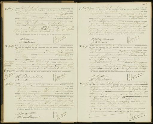 Heden zes September negentienhonderd vijf zijn voor ons Ambtenaar van den burgerlijken stand der gemeente Amsterdam, verschenen: Hartog Bronkhorst, van beroep slager, oud drie en veertig jaren, wonende alhier en David Costima, van beroep geen, oud zesen vijftig jaren den vyfden dezer de on hedden Aadefd, det of wonende alhier des na middags ten vier ure in de gemeente Amsterdam is overleden Oozes Willing. , wonende alhier, zonder deroep oud acht en zestig jaren, geboren alhier, echt. genoot van Catharina Oppenheijm) zoon van Isaac Mozes Willing en Anna Alexander de Haas, beiden D. overleden. En is hiervan opgemaakt deze akte, die na voorlezing door de aangevers en ons is onderteekend. L H. Broukhout. D. Eosteme No. 6075 Heden zeven September negentienhonderd vijf zijn voor ons Ambtenaar van den burgerlijken stand der gemeente Amsterdam, verschenen: Hendrik Hastman, van beroep vanstreker, oud een en vyftig jaren, wonende alhier en Willem Hastman, van beroep aanspreker, oud negenen veertig Jaren die ons hebben verklaard, dat op wonende alhier den vijfden, dezer des voor middags ten tien ure in de gemeente Amsterdam is overleden Johannes Rinsen zonder beroep wonende alhier, oud drie maanden, geboren alhier, zoon van Hendrik Jan Hermanus Johannes Prinsenbodsen Luktje de Raaf, zonder beroep. beiden wonende alhier. En is hiervan opgemaakt deze akte, die na voorlezing door de aangevers en ons is onderteekend. — H. Hastman W: Hastman No. 6071 Heden zes September negentienhonderd wijf zijn voor ons Ambtenaarvan den burgerlijken stand der gemeente Amsterdam, verschenen: Pauligg de Jries, van beroep opzichter oud twee en dertig jaren, wonende alhier en Anthonij Willem van Himen van beroep opzichter, oud eenen dertig jaren wonende alhier die ons hebben verklaard, dat op den vijfden dezer des namiddags ten zeven ure in de gemeente Amsterdam is overleden Hendrikus Franciscus Brummert, van beroep werkman, wonende alhier oud negen en vijftig jaren, geboren alhier, echt genoot van Margaretha Catharina Helmking, zoon van Johann Hinrich Brummert en Johanna Adri„ ana van Oort, beiden overleden. En is hiervan opgemaakt deze akte, die na voorlezing door de aangevers en ons is onderteekend. Poen W0 AWd vaninnen No. 6077 Heden zeven September negentienhonderd wij is door zijn voor ons Ambtenaar van den burgerlijken stand der gemeente Amsterdam, verschenen ingeschreven een uittrekeel uit het register van van beroep overlijden der gemeente oud ss Gravenhage jaren, wonende in dato vier dezer, en waaruit blijkt, dat te s Gravenhage van beroep oud jaren die ons hebben verklaard, dat op wonende den dertigsten Augustus laatstleden des voor middags ten zeven ure in de gemeente Amsterdam is overleden illem Ernst Kisses van beroep boekbinder, wonende alhier oud zeven en dertig Jaren, geboren alhier, zoon van Lucas Kisjes en Reinera van den Oever, beiden overleden En is hiervan opgemaakt deze akte, die na voorleging door de aangevers en ons is onderteekend tevens goedkeurende de bovenstelling van twee geschreven woorden en de doorhaling van acht en twintig gedrakte woorden.