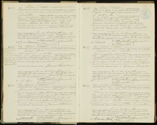 No 10819 Heden Zeven October negentienhonderd twaalf, verscheen voor mij Ambtenaar van den burgerlijken stand van Amsterdam: Jan Gijsbert van Maanen, letterhetter, oud negen en twintig jaren, wonende alhier, die verklaarde dat op zesdezer des voormiddags ten twee ure, in deze gemeente Bilderdijkstraat 58 is geboren een kind van het vrouwelijk geslacht, uit zijne echtgenoote Septje AElzes de Vos, zonder beroep, wonende alhier, aan welkkind worden gegeven de voornamen van Alida Elisabeth Gedaan in tegenwoordigheid van Jan van Loest ambtenaar oud acht entwintig Jaren, wonende alhier en van Jan Rudsef Annoeke, ambtenaar oud vier entwintig jaren, wonende alhier. Waarvan akte, welke overeenkomstig de wet is voorgelezen. Aansoert. Menagécaalla 1 J.G. van NZaanen 3 Muis 1 No 11825 pZ3 Heden Zeven October negentenhonderd twaal, ti verscheen voor mij Ambtenaar van den burgerlijken stand van Amsterdam: i Sipke Kramps, papiersnijder, O0 oud dlstig jaren, wonende alhier, die verklaarde, dat F; F op zes dezer, des voor middags ten vier ure, tie uuet, in deze gemeente Overtoorn 1 37 is geboren een kind van het vrouwelijk geslacht, uit zijne echtgenoote Johanna Carolina Elusbeth Oosterwijk zonder beroep, wonende alhier. aan welk kind worden gegeven de voornamen van Eelkje Elisabeth Johanna Gedaan in tegenwoordigheid van Jan van Loest, Ambtenaar oud acht entwintig Jaren, wonende alhier en van Jan Rudolf Manneke ambtenaar oud vierentwintig jaren, wonende alhier. Waarvan akte, welke overeenkomstig de wet is voorgelezen. Van wert. Menagéchalla 1 B: Krawps No 1821 Dit kind is door Karel Cornelis Taficanie en Rinske Bood bij huwelijk alhier op 20 November 1912 voltrokken, erkend. Amsterdam 22 November 1912. Menagestalla Heden Zeven Cctober negentienhonderd twaalf, verscheen voor mij Ambtenaar van den burgerlijken stand van Amsterdam: Jansje Spier vroedvroun, oud veertig jaren, wonende alhier, die verklaarde, hier dat op vier dezer, des voor middags ten Elf ure, 12 in deze gemeente Karthuizerstraat 6 in haar bijzijn d. is geboren een kind van het mannelijk geslacht, uit Rinske Bood, 2 zonder beroep, wonende alhier, aan welk kind worden gegeven de voornaam Johannes Frederikus. Gedaan in tegenwoordigheid van Jan aan Loest, ambtenaars oud achtentwintig Jaren, wonende alhier en van Jan Rudslutannebe ambtenaar, oud vierentwintig jaren, wonende alhier Waarvan akte, welke overeenkomstig de wet is voorgelezen. Jansoeit Menagécballa J: Spier 3 Venneke No 1827 Heden Zeven etober negentienhonderd twaalf, verscheen voor mij Ambtenaar van den burgerlijken stand van Amsterdam: Johannes van Lanten. Tagent van politie, oud achtentwintig jaren, wonende alhier, die verklaarde dat op vijf dezerdana middags ten zoven ure, in deze gemeente Westerstraat 69 is geboren een kind van het vrouwelijk geslacht, uit zijne echtgenoote Anna Maria Catharina Elisabeth Hoppen zonder beroep, wonende alhier, aan welk kind worden gegeven de voornamen van Hermina Hendrika Gedaan in tegenwoordigheid van Jan van Loest, ambtenaar, oud achtentwintig jaren, wonende alhier en van Jan Rudalf Munneder ambtenars oud vierentwintig jaren, wonende alhier. Waarvan alste, welke overeenkomstig de wet is voorgelezen. Av Canten van wert. enagéchalla 3 Munbe No 4823. Heden Zeven Cetober negentienhonderd twaalf, verscheen voor mij Ambtenaar van den burgerlijken stand van Amsterdam: Johannes Wilhelmus Wendt, winkeltediende, oud zevenentwintig jaren, wonende alhier, die verklaarde dat op vijf dezer, den middags ten acht ure, in deze gemeente Eerdinand Bolstraat 38 is geboren een kind van het mannelijk geslacht, uit zijne echtgenoote Waria Catharina Antonia Keller, zouder beroep, wnende alhier aan welk kind worden gegeven de voornamen van Johannes Wilhelmus. Gedaan in tegenwoordigheid van Jan van Soest ambtenaar, oud acht entwintig jaren, wonende alhier en van Jan Rudrlf Manneker Ambtenaar oud vierentwintig jaren, wonende alhier. Waarvan akte, welke overeenkomstig de wet is voorgelezen. Jansoert. IMmendt PMermer echelld No 19828 Heden Zeven October negentienhonderd twaalf, verscheen voor mij Ambtenaar van den burgerlijken stand van Amsterdam, trie vander Vliet, Cimmerman, oud negenentwintig jaren, wonende alhier, die verklaarde, dat op zesdezer des voor muiddags ten zeven ure, in deze gemeente Groote Woltenburgerstraat 142 is geboren een kind van het mannelijk gslacht, uit zijne echtgenoote Jinnele van zanten, zonder beroep, wonende alhier aan welk kind worden gegeven de voornamen van Willem Gijsbertus Gedaan in tegenwoordigheid van Jan van Soest Ambten oud achtentwintig jaren, wonende alhier en van Jan Rudolf Munneke, armbtenaar oud vierentwintig jaren, wonende alien Waarvan akte, welke overeenkomstig de wet is voorgelezen. Aan soert Menngéchalla 1 A. van der Vliet 3 Ammelir