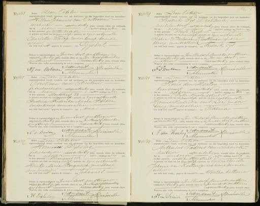 No.0813 Heden Zeven October negentienhonderd twaalf, verscheen voor mij Ambtenaar van den burgerlijken stand van Amsterdam: Willem Johannes van Oostvoorn, werkman oud achtendertig jaren, wonende alhier, die verklaarde , des voormiddags ten twee ure, dat op heden in deze gemeente de Wittenkade gr is geboren een kind van het mannelijk geslacht, uit zijne echtgenoote Charlotta Walop, zonder beroep, wonende alhier aan welk kind word gegeven de voornatin van Gijsbert. Gedaan in tegenwoordigheid van Jan van Soest, ambtenaar oud acht entwintig jaren, wonende alhier en van Jan Rudslf Manneker ambtenaar oud vierentwintig jaren, wonende alhier Waarvan akte, welke overeenkomstig de wet is voorgelezen. van wert. Unagéchalla WJ van Oostvoorn 3 M No 10819 KES Heden Zeven October negentienhonderd twaalf, verscheen voor mij Ambtenaar van den burgerlijken stand van Amsterdam Frederik Pys Derksema, menbelmaker, oud negenenzestig jaren, wonende alhier, die verklaarde dat op hheden, des voor middags ten zaen ure, in deze gemeente Hoogte Kadijk 115 is geboren een kind van het mannelijk geslacht, uit zijne echtgenoote Jopher Wilhelmina Kloosterman, znder beroep, wonende alhier aan welk kind worden gegeven de voornamen van Frederik Fijs. Gedaan in tegenwoordigheid van Jan Rudsef Munneke ambtenaar, oud vierentwintig jaren, wonende alhier en van Jan van Soeit ambtenaar oud vierentwintig jaren, wonende alhier. Waarvan akte, welke overeenkomstig de wet is voorgelezen. F I Derkena vansoert. Henaiécaalla 3 „ No 1845 Heden Zeven October negentienhonderd twaalf, verscheen voor mij Ambtenaar van den burgerlijken stand van Amsterdam: Corstiaan van Bentem fabrieksarbeider, oud negenentwintig jaren, wonende alhier, die verklaarde, dat op heden, des voormiddags ten tien ure, in deze gemeente Slootstraat 23.- is geboren een kind van het vrouwelijk geslacht, uit zijne echtgenoote Bertina Frederika Maria Belder, zonder beroep, wonende alhier. aan welk kind wordt gegeven de voornaam van Auna Gedaan in tegenwoordigheid van Jan van Loest, ambtenaar oud achtentwintig Jaren, wonende alhier en van Jan Rudolf Mannete ambtenaas oud vierentwintig jaren, wonende alhier, Waarvan akte, welke overeenkomstig de wet is voorgelezen. van dert Lenagéechalla C v Beulen 3 Memmenter No 0850 Heden Zeven October negentienhonderd twaalf, verscheen voor mij Ambtenaar van den burgerlijken stand van Amsterdam: Ploris den Hartog. brandnacht, oud vierentwintig jaren, wonende alhier, die verklaarde dat op vijfdezer, des na middags ten twee ure, in deze gemeente 1 Pieter Nieuwlandstraat N8 is geboren een kind van het vrouwlijk geslacht, uit zijne echtgenoote Hermina Hendrika vanLierf, zonder beroep, wonende alhier. aan welk kind wordt gegeven de voornaam van Clazina Gedaan in tegenwoordigheid van Jan Rudolf Munneke ambtenaar oud vierentwintig jaren, wonende alhier en van Jan van Soest, amttenaar oudvierentwintig jaren, wonende alhier. Waarvan akte, welke overeenkomstig de wet is voorgelezen. Hanvoer Hennischalla F den Hartog 3 Munnekel No 10817 Heden Zeven titober negentienhonderd twaalf, verscheen voor mij Ambtenaar van den burgerlijken stand van Amsterdam: Hermannes Dijkslag, fabrieksarbeider, oud achtentwintig jaren, wonende alhier, die verklaarde dat op vijfdezer desn middags ten zes ure, in deze gemeente Friniengracht 562 is geboren een kind van het nannelijk geslacht, uit zijne echtgenoote Heintje Maria Borgmeier, zonder beroep, wonende alhier aan welk kind wordt gegeven de voornaam van Johannes. Gedaan in tegenwoordigheid van Jan van Loest, ambtenaar oud achtentwintig jaren, wonende alhier en van Jan RudslsManneker ambtenaar, oud vierentwintig jaren, wonende alhier. Waarvan akte, welke overeenkomstig de wet is voorgelezen. anvoert. Mumer Lunischella 1 H Dijklag No 10853 Heden Zeven October negentienhonderd twaalf, verscheen voor mij Ambtenaar van den burgerlijken stand van Amsterdam Anthonius Tadenus van Schaick, Koetsier, oud enendertig jaren, wonende alhier, die verklaarde dat op vierdezer des namiddags ten elf ure in deze gemeente eerste JanSteenstraat 18 is geboren een kind van het vrouwelijk geslacht, uit zijne echtgenoote Johanna van Kooten, zonder beroep, wonende alhier. aan welk kind worden gegeven de voornamen van Albertha Anthonia. Gedaan in tegenwoordigheid van Jan Rudolf Mannekejambtenaar oud vierentwintig jaren, wonende alhier en van Jan van Loest, ambtenaar oud vierentwintig jaren, wonende alhier Waarvan akte, welke overeenkomstig de wet is voorgelezen JA J van Schak Jansoert Manschella 3 mmielie