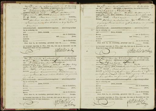 Den Dertiende September Ao. 1800 twintig, ten Eenurema den middag, is ingeschreven, het AFSTERVEN van Johannes Josephus Jager Overleden den Elfden dezer ten vijf ure, des morgens oud twee maanden Jaren, wonende binnen amstel No. 9. Kanton- e alde overleden, Geboren alhier onder onbekend. Jngenye Proces verboel en dito 12 dezer ve ’t Aalm. Weerhuis de Overledene heeft onroerende Goederen nagelaten achterlating van Kind Op de verklaring van „ Jaren, wonende oud van de Overledene, Beroep oud Jaren, en van wonende van de Overledene Beroep Deze Acte is, na voorlezing, geteekend door de Getuige, en bevestigd ingevolge de Wet, door mij, Lid van de Kommissie tot den Burgerlijken Stand der Stad Amsterdam Backer de Toen D Den Dertiende September Ao. 1800 twintig, ten Een ureni den middag, is ingeschreven, het AFSTERVEN, van Aaltje Roelvink Overleden den tienden dezer ten drie ure, des morgens oud vijf zeventig Jaren, wonende onderouwerhuis Camstel, No. Kanton, en aldaar overleden, Geboren alhier, weduwe van Jan Roelvink „ ingevolge Proces verbaal in dcto 12 dezer vagemelde gesticht de Overledene heeft onroerende Goederen nagelaten achterlating van Kind Op de verklaring van G 1 oud Jaren, wonende van de Overledene, Beroep oud en van Jaren, wonende N van de Overledene.