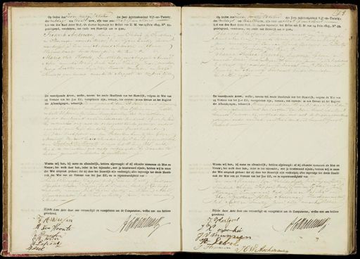 Op heden den Zesentwintig October des Jaars Achttienhonderd Vijf-en-Twintig, des middags ten twaalf uren, zijn voor ons Mr A.G. van Meurs Lid van den Raad dezer Stad, als duurtoe ingevolge het Besluit van Z. M. van 14 Febr. 1823, No. 59. gedelegeerd, verschenen, ten einde een Huwelijk aan te gaan, Fredrik Andersen, Zeeman, van Thiomé by Jansberg in Voorwegen worende alhier, aud Vijf en Dertig Jaren meerderjarige zoon van Andreas Andersen en Anna Halvers, dochter beide overledene ter Eene; En Maria Ten Hoonte, Dienstbode, van Meppel Arrond: Assen wonende alhier, aud zes en Twintig Jaren, meerder Jarige Dochter van Dirk ten Hoorte overleden en Jentje Roelofs geen bevoep wonende te Meppel ter andere zijde De voorafgaande Acten, welke, nevens het zesde Hoofdstuk van het Huwelijk, volgens de Wet van 25 Ventose van het Jaar El, voorgelezen zijn, bestaan, ten eersten: in een Extract uit het Register der Afkondigingen, behoorlijk Alhiergeschied den 23 dezer ig met dispende tie der 2.e Afkond verleent door den Heer Officier van Justitie in dato 22 dezeren ten zden doopcedeellen der verloofden die des brundigoms mede inhoudende den dood zyner onder hij verklaard ons met de ondergeteekende getuigen onder aan bod van Eede den dood / zyner groot Ouders. ten Iden doodsedeel van den Vader den bruid ten 4den Notarieel konrent harer Moeder ten sden de GeboorteCedul van Fredrik ten Hoonte alhier Geb: 18 Iuny 1825, welk kind de verloofden ons mede verklaarden bij ilkander te hebben verwekt in hetzelve by deretechten. Waarna wij hun, bij name en afzonderlijk, hebben afgevraagd: of zij elkander aannamen als Man en Vrouw; het welk door hun, ieder in het bijzonder, met ja beantwoord zijnde, hebben wij in naar der Wet uitspraak gedaan: dat zij door het Huwelijk zijn verëenigd; alles ingevolge het derde Hoofdstuk der Wet van 20 Ventose van het jaar Elf, en in tegenwoordigheid van Roelof Thomassen, Tapper oud Twee en Dertig Christiaan Hendrik Sonder, Tapper, Oud Drie en Dertig Kartwer Lafrentz, zeiman, oud Vyfen Dertig en Barend Abel. Groentewinkelier, oud Twee en Veertig Jaren, alle wonende Altier. Zijnde deze Acte door. ons vervaardigd en voorgelezen aan de Comparanten, welke met ons hebben geteekend. P C Andersen HCVanen A Ten Hoonte R. Thomassen. C.H: Sonder H Latrentz BAeel Ch Op heden den Zesentwintig October des Jarrg Achttienhonderd Vijf-en-Twintig, des middags ten twaalf uren, zijn voor ons Mr A. F van Meurs Lid van den Raad dezer Stad, als daartoe ingevolge het Besluit van Z. M. van 14 Febr. 1823, No. 59. gedelegeerd, verschenen, ten einde een Huwelijk aan te gaan, Johannes Hartgers, Tuinmanskrecht van Harderwijk Arrond: Arnhem wonende achier, oud Drie en Dertig Jaren, meerderjarige zoon van Gerrit Hartgers en Beeltje Jans beide overleden ter Eege, En Johanna Heelena Opperhy, Dienstoode, Geboren en wonende Alhier, oud Negen en Twintig Jaren (ged:t Noordyken 6 Maart 1796 meerderjarige Dochter van Henderick Opperhy en Angenietje Dortmont beide overleden ten andere zijde. De voorafgaande Acten, welke, nevens het zesde Hoofdstuk van het Huwelijk, volgens de Wet voor 25 Ventose van het Jaar El, voorgelezen zijn, bestaan, ten eersten: in een Exwact uit het Register der Afkondigingen, behoorlijk alhier geschiedden 8en 23 dezer Zendden de Doopsedullen der verloofden ten 3den Doodcedullend hunner ouders zy verklaarden ons met de ondergeteekende getuigen onder aan bod van Eede den dood hunner GrootOuders. Waarna wij hun, bij name en afzonderlijk, hebben afgevraagd: of zij elkander aannamen als Man en Vrouw; het welk door hun, ieder in het bijzonder, met ja beantwoord zijnde, hebben wij in naar der Wet uitspraak gedaan: dat zij door het Huwelijk zijn verëenigd; alles ingevolge het derde Hoofdstuk der Wet van 20 Ventose van het Jaar Elf, en in tegenwoordigheid van Jan van Munnen, Oom Schildersbaad, Oud Zes en Zestig Hendrik Sebil, Tapper, oud Twee en Vyftig, Jan Hopman Timmerman, oud Drie en Veertig en Johan Christiaan Willem Ascherman, Horologeemaker OuAEcht en Twintig Jaren, alle wonende Alhier Zijnde deze Acte door ons vervaardigd en voorgelezen aan de Comparanten, welke met ons hebben geteekend. J: Hartgers A C dartun J K oppenhe JV Munsien H Lebrar J Stopman