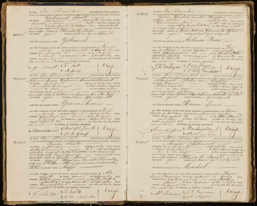No 12008 Op heden Een December Achttienhonderd Zeven-en-Tachtig, is voor ons ondergeteekende Ambtenaar van den Burgerlijken Stand der Gemeente Amsterdam, verschenen: Ysbrand Smit. van beroep therkman oud achtentwintig Jaren, wonende ValMenierstraat No 25, welke heeft verklaard dat op dertig November laatstleden des middags ten twaalf ure, in het huis, staande als boven is geboren een Kind van het mannelik geslacht, uit Elisabeth Lubevan beroep geen wonende als boven zijne echtgenoote welk kind zal genaamd worden Ysbrand. van welke Verklaring wij deze Akte hebben opgemaakt in tegenwoordigheid van Franciscus Suit van beroep schoenmaker oud drieentwintig Jaren, wonende Kiomelleboogsteeg C 5 en van Andries Smit van beroep schrenmaker oud vierentwintig Jaren, wonende alsde ouders Z5 en is deze Akte door ons, benevens den vader en de Getuigen, na voorlezing onderteekend. J Smit & F& Smit Driessen 3 A Smit No 12014 Op heden Twee December Achttienhonderd Zeven-en-tachtig, is voor ongondergeteekende Ambtenaar van den Burgerlijken Stand der Gemeente Amsterdam, verschenen Johan Hendrik van der Heijdenvan beroep schilder. oud vierentwintig Jaren, wonende Utrechtschednarsstraat No. 138, welke heeft verklaard dat op negen en twintig November laatstleden des voor middags ten acht ure, in het huis, staande als boven is geboren een Kind van het vrouwelijk geslacht, uit Rosa Rebecca Johanna de Haas. van beroep geen wonende als boven: zijne echtgenoote welk Kind zal genaamd worden Antonia Rosa. van welke Verklaring wij deze Akte hebben opgemaakt in tegenwoordigheid van Jan van der Heijden van beroep schilder oud twee en vijftig Jaren, wonende Utrechtschestraat 125 en van Frederik Willem Gerhard Tesebeld van beroep koopman oud twee enveertig Jaren wonende te Deventen en is deze Akte door ons, benevens den vader en de Getuigen, na voorlezing onderteekend. J.H. Vd Heyden 2 J. v.d. Heyden 3 t WG Lesebeld Kriecse No 12018 Op heden Een December Achttienhonderd Zeven-en-Tachtig is voor ons ondergeteekende Ambtenaar van den Burgerlijken Stand der Gemeente Amsterdam, verschenen: Antonius Maria Arbanus Maarschalkerweert. van beroep fabrikant oud negen entwintig Jaren, wonende Nieuwe zijde Voorburgval No. 195, welke heeft verklaard dat op heden des voormiddags ten twee ure, in het huis, staande als boven is geboren een Kind van het vrouwelik geslacht, uit Catharina Susanna Jannette Rijss van beroep geen wonende als boven: zine echtgenoote welk Kind zal genaamd worden Gesina Maria van welke Verklaring wij deze Akte hebben opgemaakt in tegenwoordigheid van Cornelis de Greef van beroep koopman oud eenendertig Jaren, wonende Kukerstraat 43 en van Jacobus de Greef, van beroep dimantnerker oud zesentwintig Jaren, wonende als boven 43. en is deze Akte door Ons, benevens den vader en de Getuigen, na voorlezing onderteekend. AeMrarschalkenveerd 2 m: M Greet Driecsen 3 J. de Greef No 12016 — Op heden Twee December Achttienhonderd Zeven-en-Tachtig is voor ons ondergeteekende Ambtenaar van den Burgerlijken Stand der Gemeente Amsterdam, verschenen: Samull Pieuer van Eeghen. van beroep koopman oud vierendertig Jaren, wonende Heerengrocht No. 462, welke heeft verklaard dat op Een dezer des voormiddags ten twee ure, in het huis, staande als boven, is geboren een Kind van het mannelijk geslacht, uit Jonkvrouw Olga Catharina Antoinetta van Zoon van beroep geen wonende als boven: zine echtgenoote welk Kind zal genaamd worden Henri Louis. van welke Verklaring wij deze Akte hebben opgemaakt in tegenwoordigheid van Adriaan Deodates de Marez Oijens van beroep commissionair oud veertig Jaren wonende Keizersgracht 389. en van Willem Hendrik van Loon van beroep als boven oud twee en dertig Jaren, wonende als boven 672 en is deze Akte door ons, benevens den vader en de Getuigen, na voorlezing onderteekend. HC van legten 2 AdeKaret Ogens Dreessen 3 W.H. van Looe No. 12012 Op heden Een December Achttienhonderd Zeven-en-Tachtig is voor ons ondergeteekende Ambtenaar van den Burgerlijken Stand der Gemeente Amsterdam, verschenen: van beroep vroedvrouw oud zevenendertig Jaren, wonende Grietje Smits. Kottenburgergracht No. 3, welke heeft verklaard dat in haar bijzijn op negen entwintig November laatstleden des na middags ten elf ure, in Het huis, staande Couradstraat 100. is geboren een Kind van het vrouwelijk geslacht, uit Geertje Bruin. dan beroep geen worende als boven: Courrdstraat 109 echtgen noote van Willem Plens, zeeman, oenderlide moeder, afwezend. wwelk Kind zal genaamd worden Aafje. van welke Verklaring wij deze Akte hebben opgemaakt in tegenwoordigheid van Ale Smits van beroep zeeman oud vijfenveertig Jaren, wonende Kottenburrgergracht3 en van Jan Hendrik scholten van beroep hetenmaker oud vijfenvijftig Jaren, wonende Prinsenhofsteeg en is deze Akte door ons, benevens de aangeefste en de Getuigen, na voorlezing onderteekend. Driecler 2 A Smits G Smits Z H Schulten No. 12018. Op heden Twee December Achttienhonderd Zeven-en-Tachtig is voor ons ondergeteekende Ambtenaar van den Burgerlijken Stand der Gemeente Amsterdam, verschenen: Meijer Salomons. dan deroen dianutnerker oud drieentwintig Jaren, wonend Rapenburgerstraat No. 165, welke heeft verklaard dat op een dezer des na middags ten halftnaalf ure, in het huis, staande als boven is geboren een Kind van het mannelijk geslacht, uit Bloeme de Saauwvan beroep geen wonende als boven: zijne echtgenoote welk Kind zal genaamd worden Machiel. van welke Verklaring wij deze Akte hebben opgemaakt in tegenwoordigheid van Johaan Herman Beusimann van beroep verkman oud veertig Jaren, wonende Oude zijde Voorbiugwal 172 en van Mattheus Meijer van beroep verkman oud twee en vijftig Jaren, wonende Lindengracht 210. en is deze Akte door ons, benevens den vader en de Getuigen, na voorlezing onderteekend. Driecsen M. Saleming J H Beusmann M Meyer